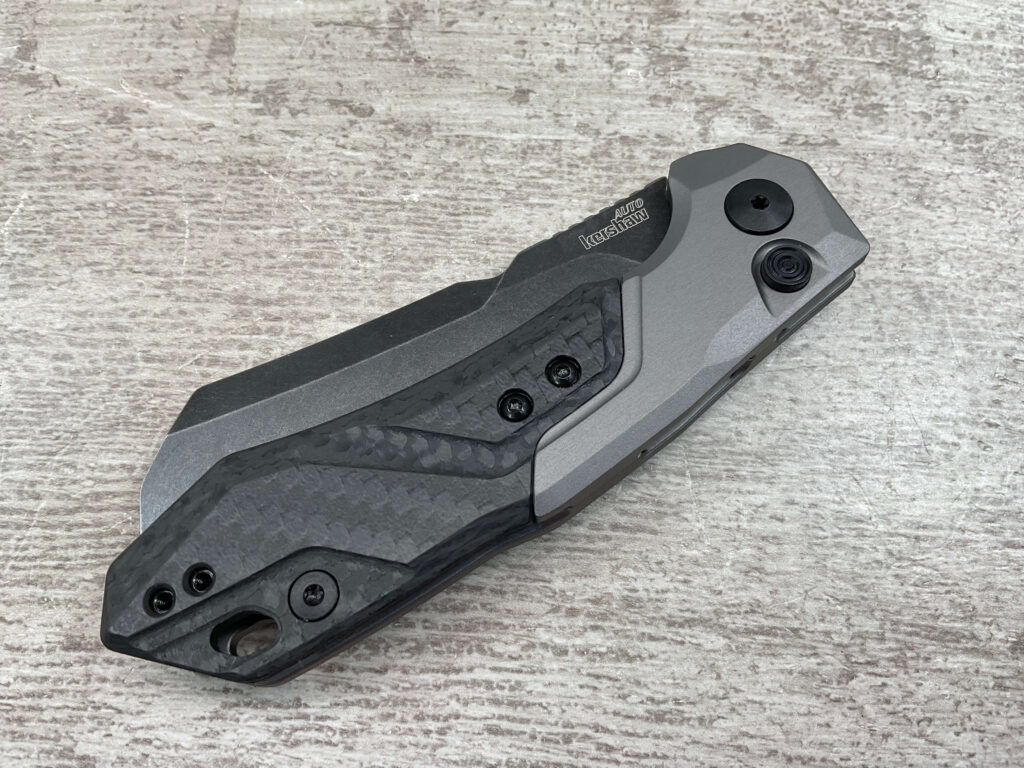 - Features: Carbon Fiber Handle Insert, Low Profile Push Button, Integrated Lanyard Hole, EDC