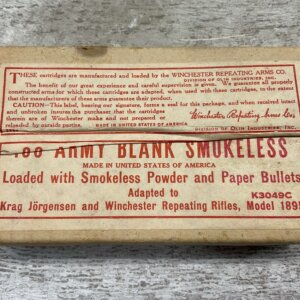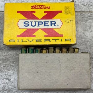 WESTERN SUPER X SILVERTIP 30-40 KRAG, 220 GR. EXPANDING BULLET, VINTAGE AMMO, #30404, 3 EMPTY SHELLS, 17 FULL. BOX IS IN GOOD CONDITION WITH SOME PEN WRITING ON FRONT “397” AND SMALL AMOUNTS OF RIPS EXPECTED FOR AGE.