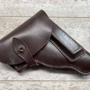 CHINESE BOLO LEATHER HOLSTER, EXC QUALITY, EXC STITCHING, GERMAN PATTERN, MARKED “P01-9BOLO” ON BACK
