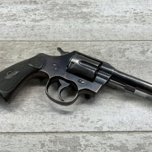 COLT ARMY SPECIAL .32-20 WIN VINTAGE REVOLVER, 1919 MFR #435015, 4″ BBL, 6 ROUND FLUTED CYLINDER, 80% BLUE TURNING GREY PATINA, SOME LIGHT WEAR, SMOOTH ACTION / CAN USE TIMING ADJUSTMENT, FAIR BORE W/ GOOD RIFLING & FROSTING IN THE GROOVES, GOOD GRIPS W/ LEFT MISSING SMALL PIECE (SEE PICS), OVERALL GREAT GUN FOR THE MONEY