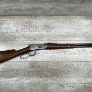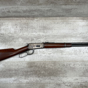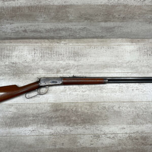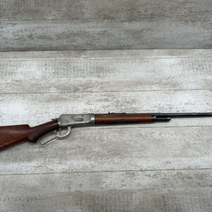 WINCHESTER MODEL 1894 LEVER ACTION RIFLE 1903 MFR #291167 .32WS, 25″ OCTAGON BARREL, 9 ROUND TUBE MAG, EXC WALNUT FOREARM AND BUTT STOCK W/SOME NICKS AND INDENTATIONS, SMOOTH BUTTPLATE, LYMAN’S 21 ADJUSTABLE SIGHT W/”DA” STAMPED ON BACK (BELIEVED TO BE ORIGINAL FROM WINCHESTER), 95% BLUE REMAINING, SOME HANDLING MARKS, LEVER HAS TURNED GREY/BROWN PATINA, BRIGHT BORE WITH EXC RIFLING, STRONG ACTION, 95% OVERALL