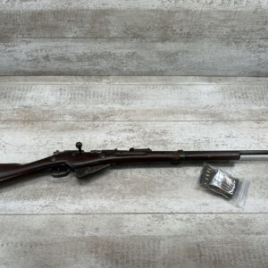 FRENCH/TURKISH M1907/15 8MM LEBEL BOLT ACTION RIFLE #35028 “ST. ETIENNE MLE-1907-15†MARKED ON THE LEFT SIDE OF THE RECEIVER, ALL SERIAL NUMBER MATCH EXCEPT FOR THE REAR SIGHT, NO VISIBLE IMPORT MARK, DARK BORE & FAIR RIFLING, SPORTERIZED STOCK W/NICKS & DINGS, EXC MECHANICALLY, 3 CLIPS W/AMMO INCLUDED, GREY PETINA FINISH W/DEEP PITTING ON BARREL, GOOD OVERALL
