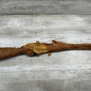 MUMMY WRAPPED MOSIN NAGANT 1944 M44 7.62X54R BOLT ACTION RIFLE #KN2963, TOP OF RECEIVER MARKED “HAMMER & SICKLE / 1947 r / KN2963 / IZHEVSK FACTORY ARROW IN TRIANGLE”, EXC BLUE, CAI VT IMPORT ON LEFT SIDE OF RECEIVER (AREA OPEN FROM WRAP), BELIEVED TO BE ORIGINAL WRAP, WAS UNWRAPPED NEAR RECEIVER TO PLACE IMPORT MARK ONLY, RARE