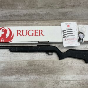 The Ruger American Rifle® Standard is a bolt-action rifle built with innovative designs and modern materials to provide shooters with a practical and cost-effective firearm, meant for serious hunting. Ruger uses a 3-lug bolt design on the American Rifle with a 70° bolt lift, providing plenty of clearance to keep fingers and gloves from getting between the bolt handle and the riflescope. A 2-position tang safety is easily accessible and quick to operate by both right- and left-handed shooters; the bolt can be cycled for loading and unloading the rifle with the safety engaged. A cocking indicator at the end of the bolt can be seen and felt. Ruger designed the Marksman Adjustableâ„¢ trigger for the American Rifle to be user adjustable for weight-of-pull. The Marksman trigger is light and crisp, allowing for precision shooting in the field. The Ruger American utilizes a detachable, ultra-reliable rotary magazine that fits flush with the bottom of the stock, adding to the rifle’s ease of handling. The stock is constructed from rugged composite with grooves and texturizing on the pistol grip and fore-end, providing a solid, non-slip grip in any hunting environment. The stock features molded-in, Power Bedding® recoil/bedding blocks to rigidly attach the barreled action to the stock and free-float the barrel. A soft rubber recoil pad absorbs recoil considerably. The American Bolt-Action Rifle comes with a drilled and tapped receiver, and scope bases. The Ruger American Rifle is a lightweight, fast-handling, and superbly accurate rifle meant for rugged use in the outdoors.
