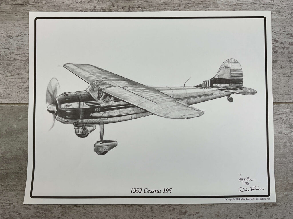 1952 CESSNA 195 11X14 PRINT, UNFRAMED BUT IN PLASTIC SLEEVE
