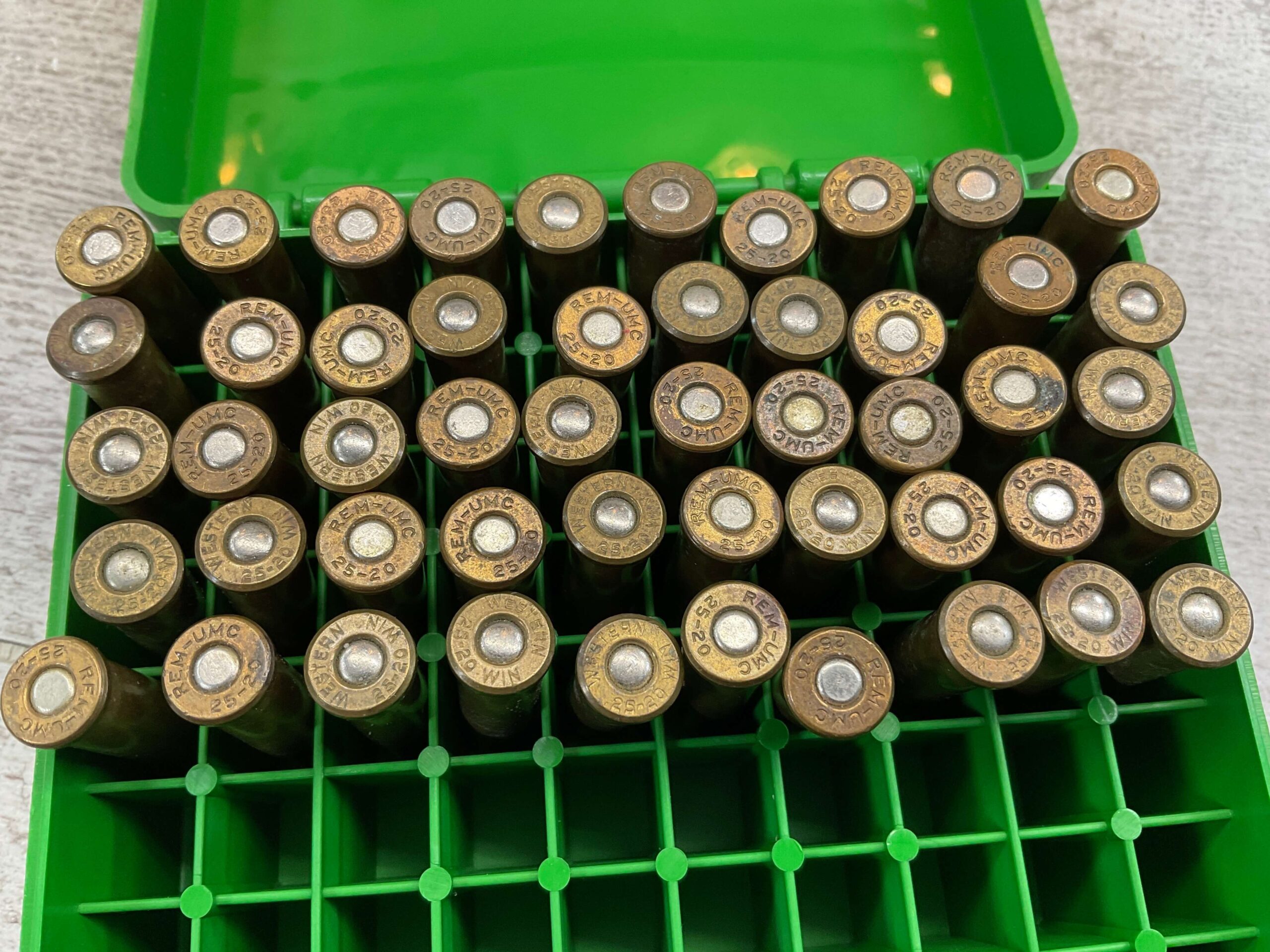 25-20 WCF ANTIQUE AMMUNITION IN VARIOUS HEADSTAMPS, QTY 50 #4-03153-MT