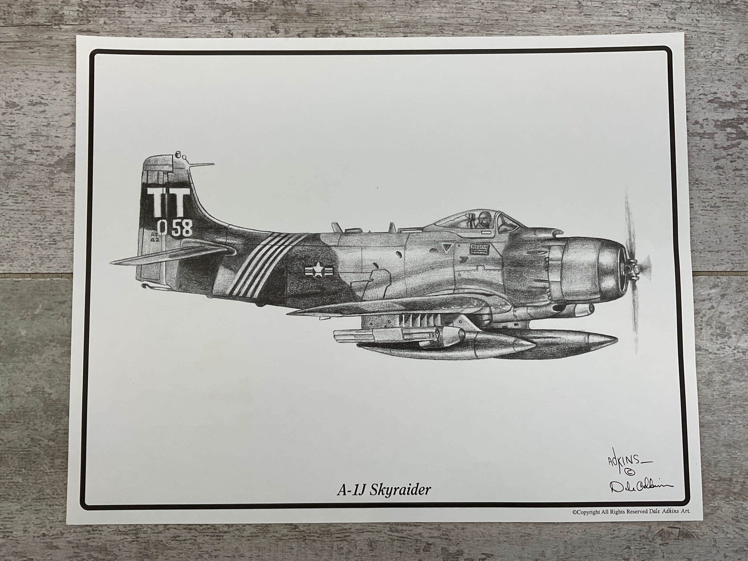 A-1J SKYRAIDER 11X14 PRINT, UNFRAMED BUT IN PLASTIC SLEEVE