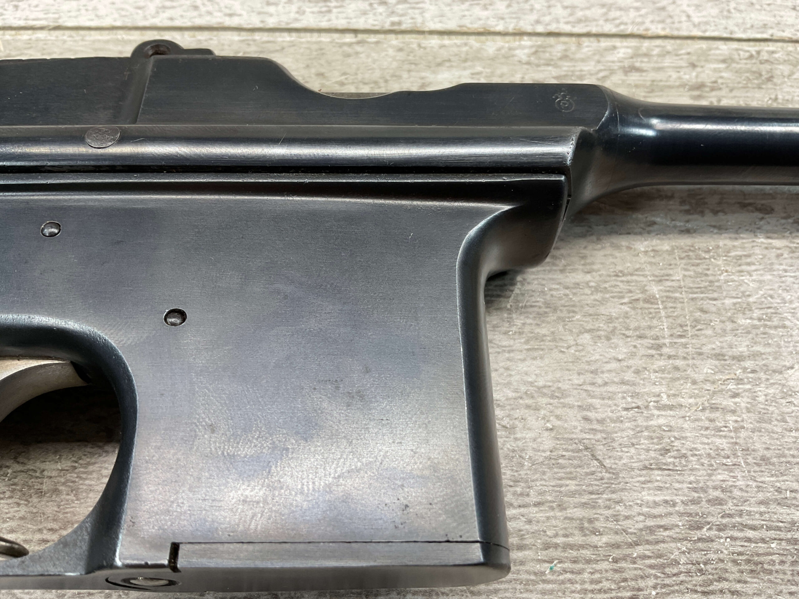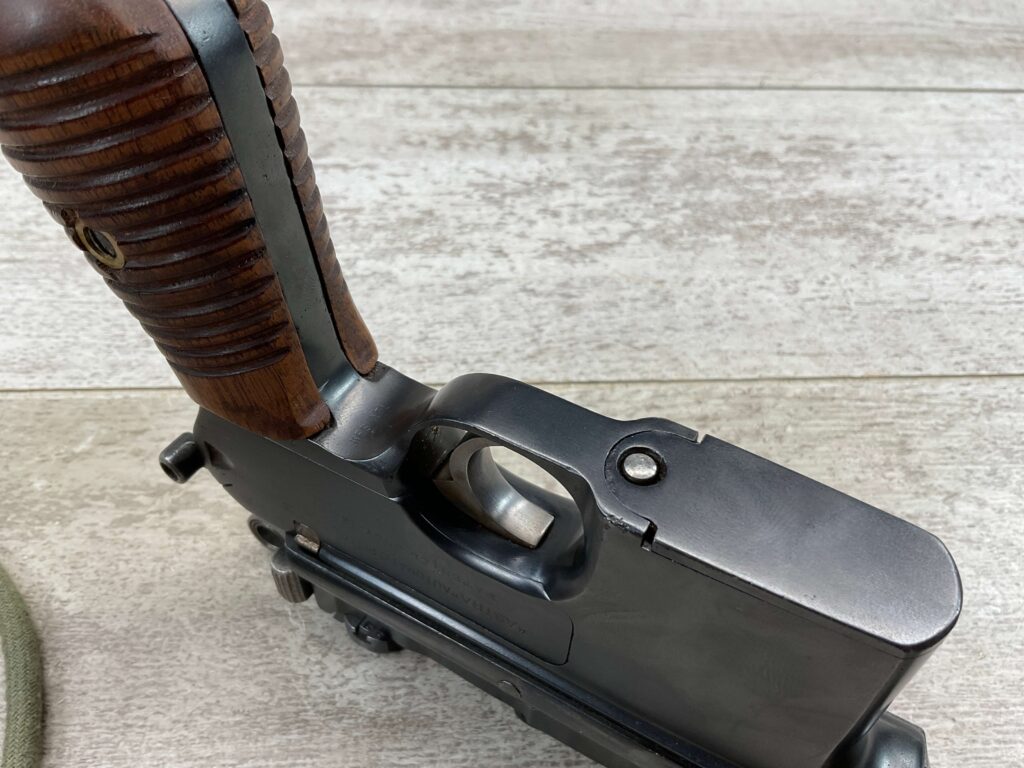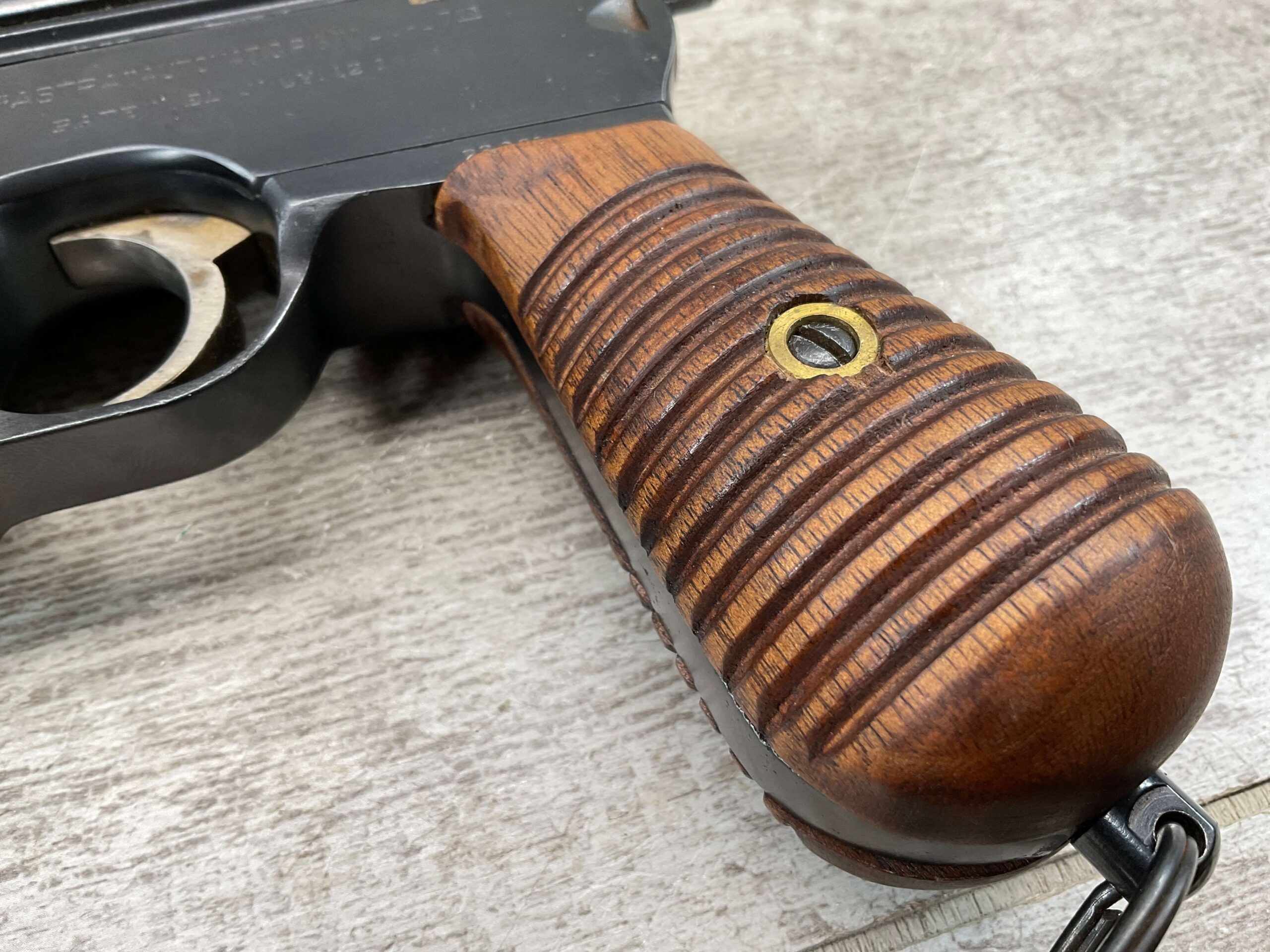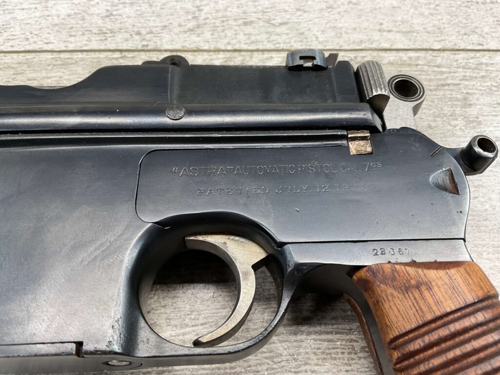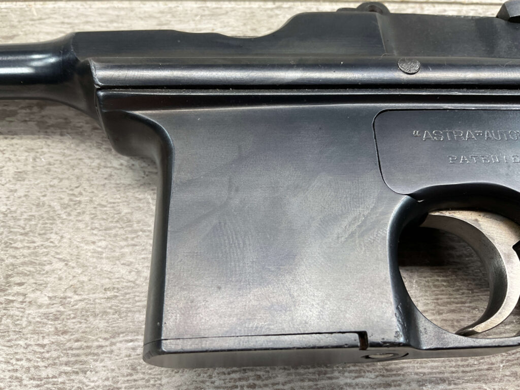 ASTRA 900 FLATSIDE BROOMHANDLE 9MM RESTORED PISTOL #23667, 9MMMM, NON MATCHING, 98% REBLUE, EXC BORE & RIFLING, EXC REPLACEMENT GRIPS, 5.5″ BBL, “ASTRA AUTOMATIC PISTOL CAL 7.63” LEFT SIDE PANEL OF FRAME, STANDARD PROOFS, LANYARD RING & LANYARD, LIGHT IMPORT BETWEEN GRIP & TRIGGER GUARD, 98%+ OVERALL, CONDITION AS SHOWN IN PICTURES.
