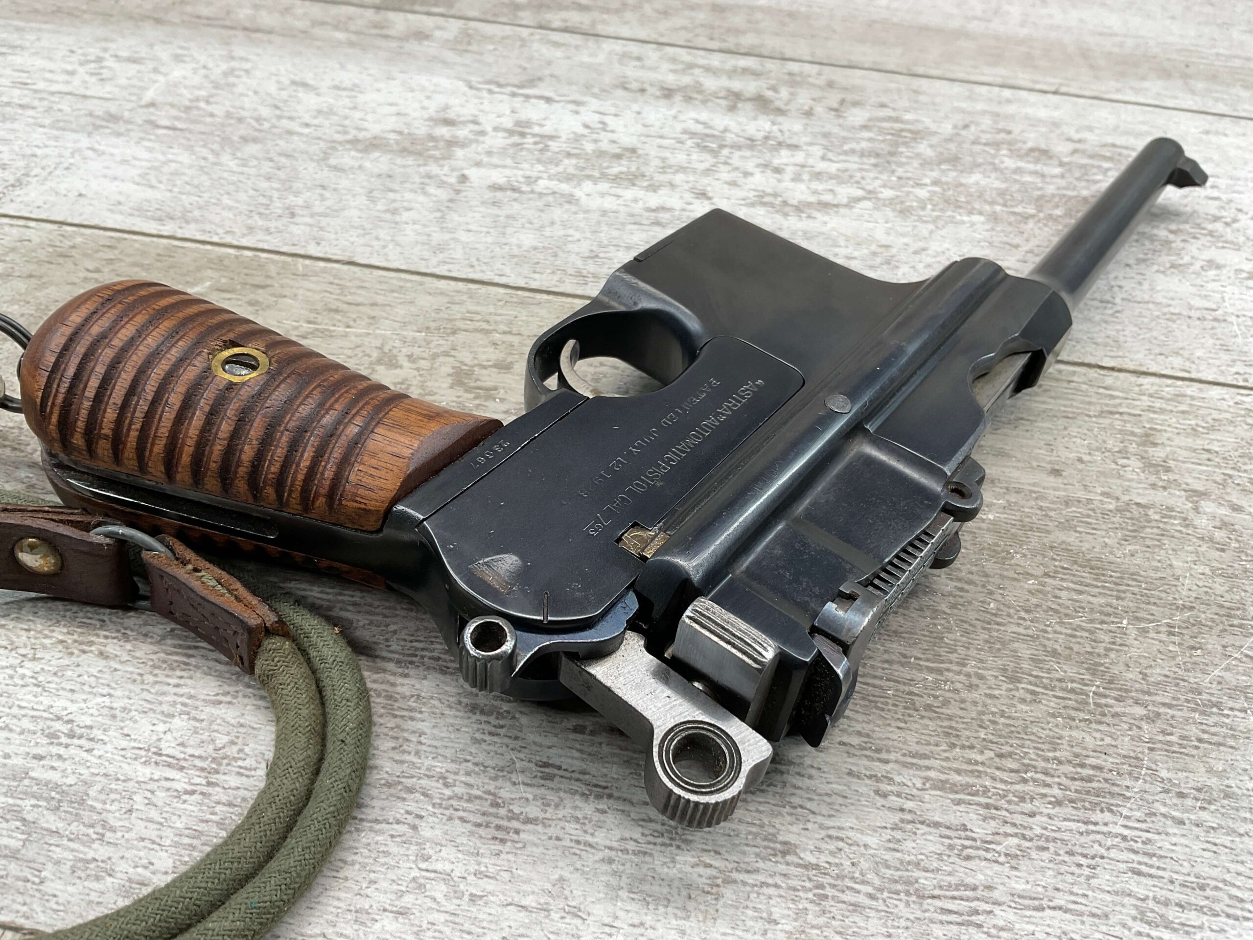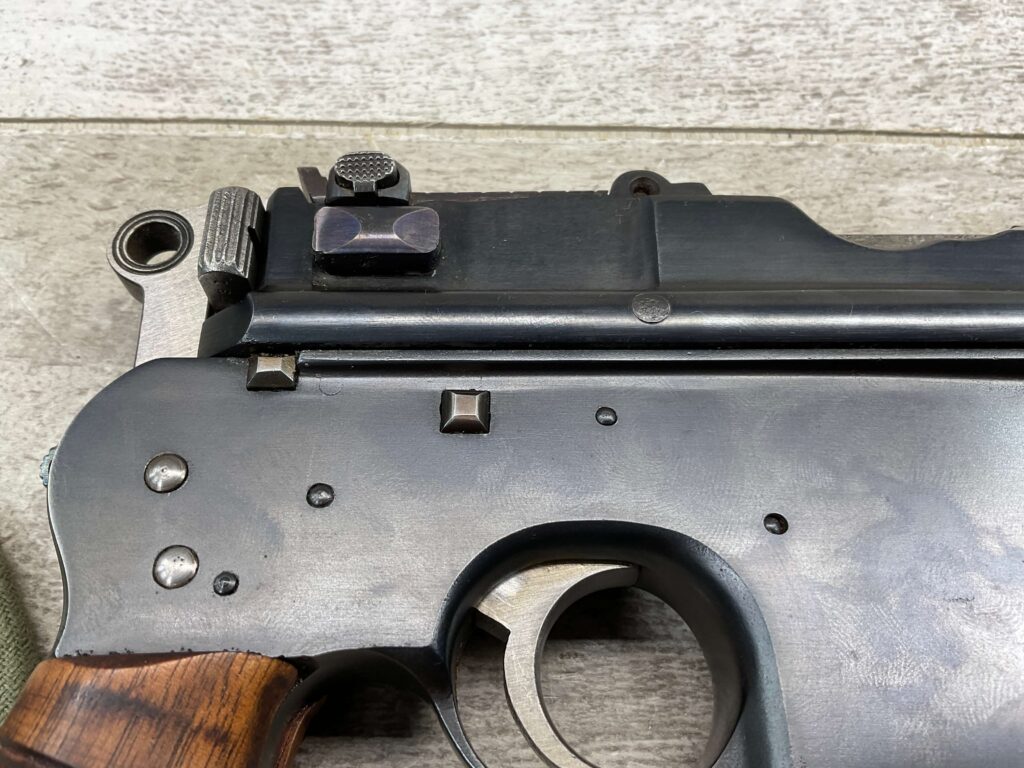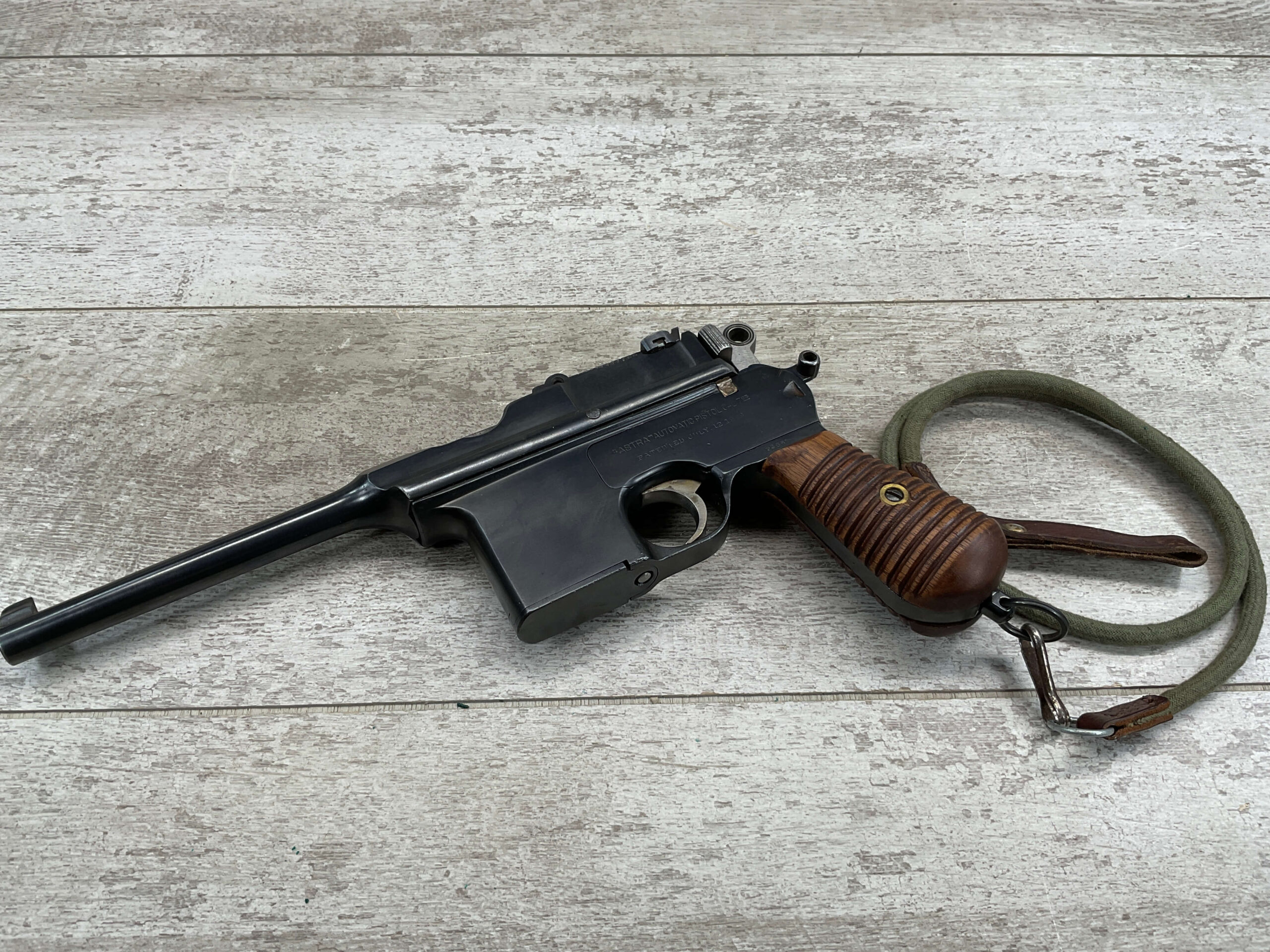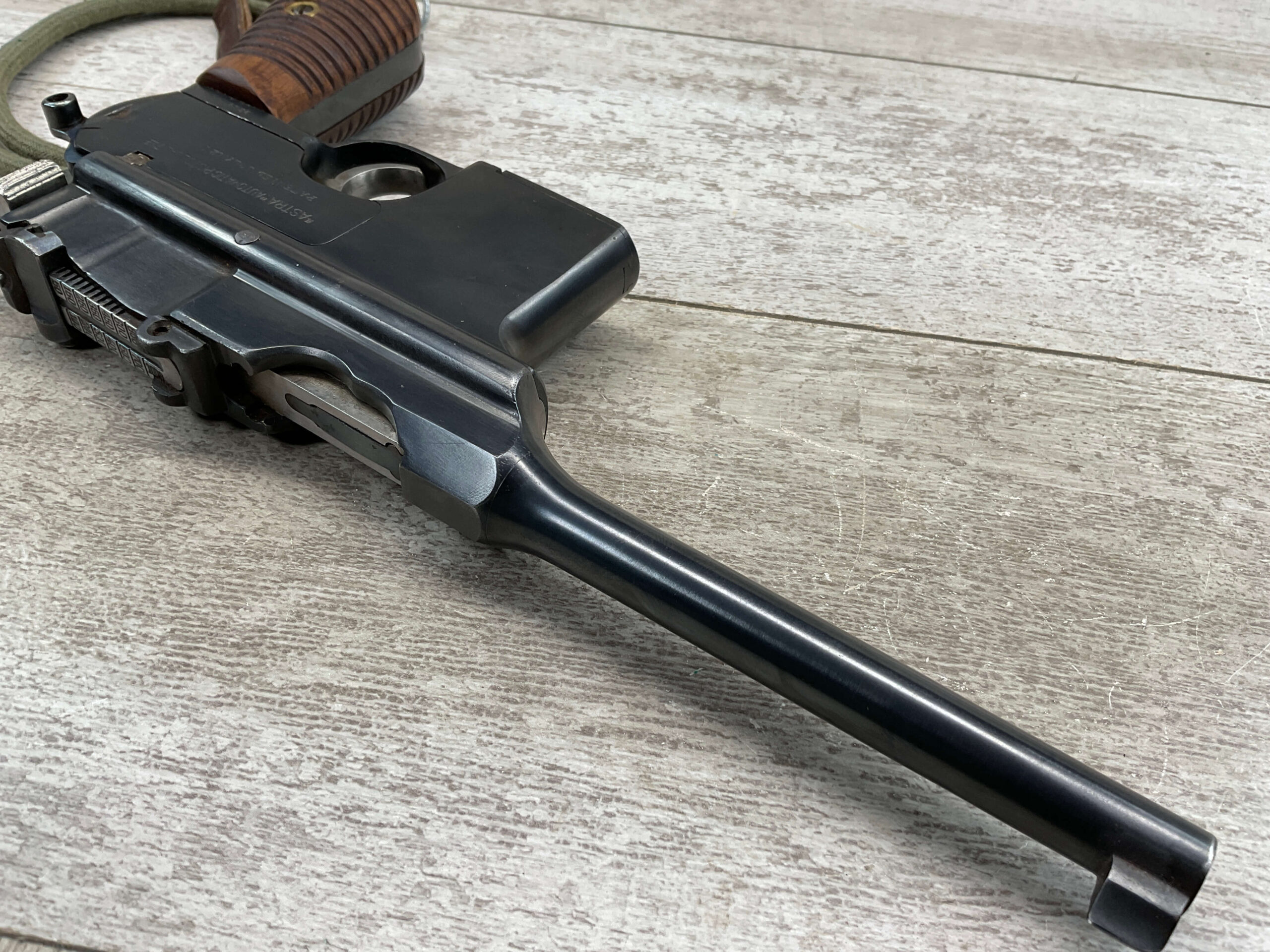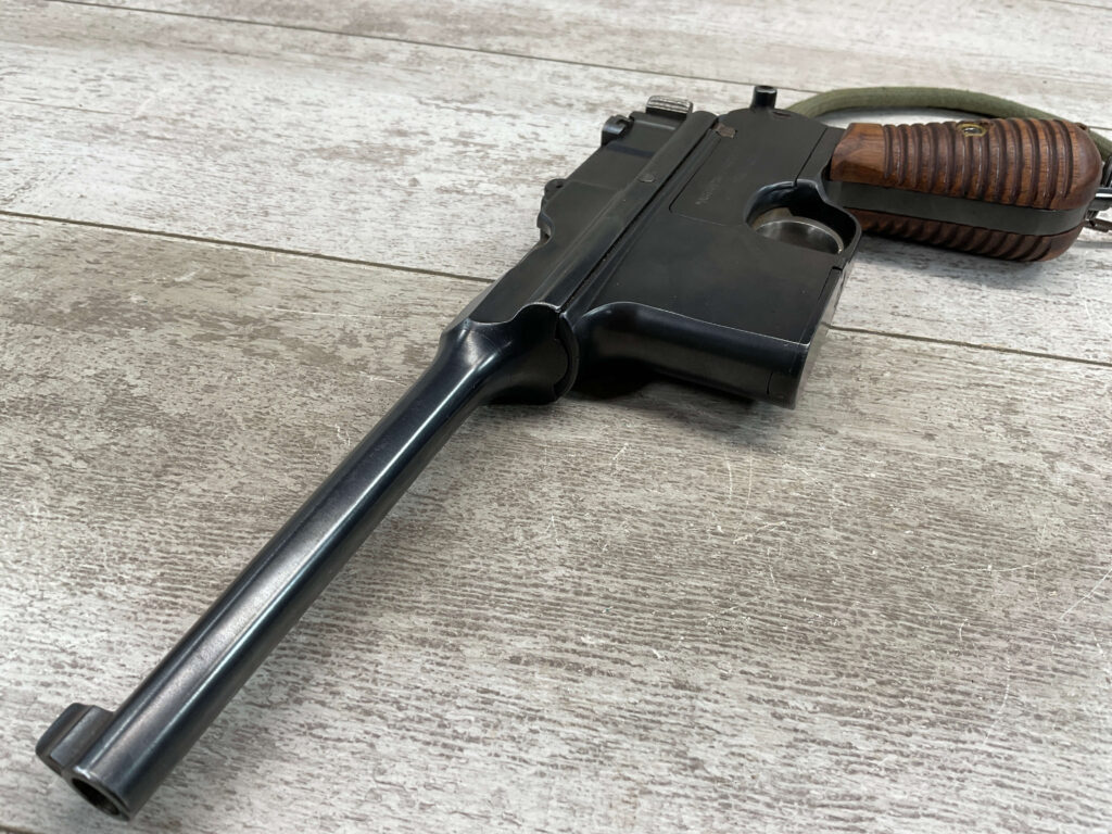 ASTRA 900 FLATSIDE BROOMHANDLE 9MM RESTORED PISTOL #23667, 9MMMM, NON MATCHING, 98% REBLUE, EXC BORE & RIFLING, EXC REPLACEMENT GRIPS, 5.5″ BBL, “ASTRA AUTOMATIC PISTOL CAL 7.63” LEFT SIDE PANEL OF FRAME, STANDARD PROOFS, LANYARD RING & LANYARD, LIGHT IMPORT BETWEEN GRIP & TRIGGER GUARD, 98%+ OVERALL, CONDITION AS SHOWN IN PICTURES.