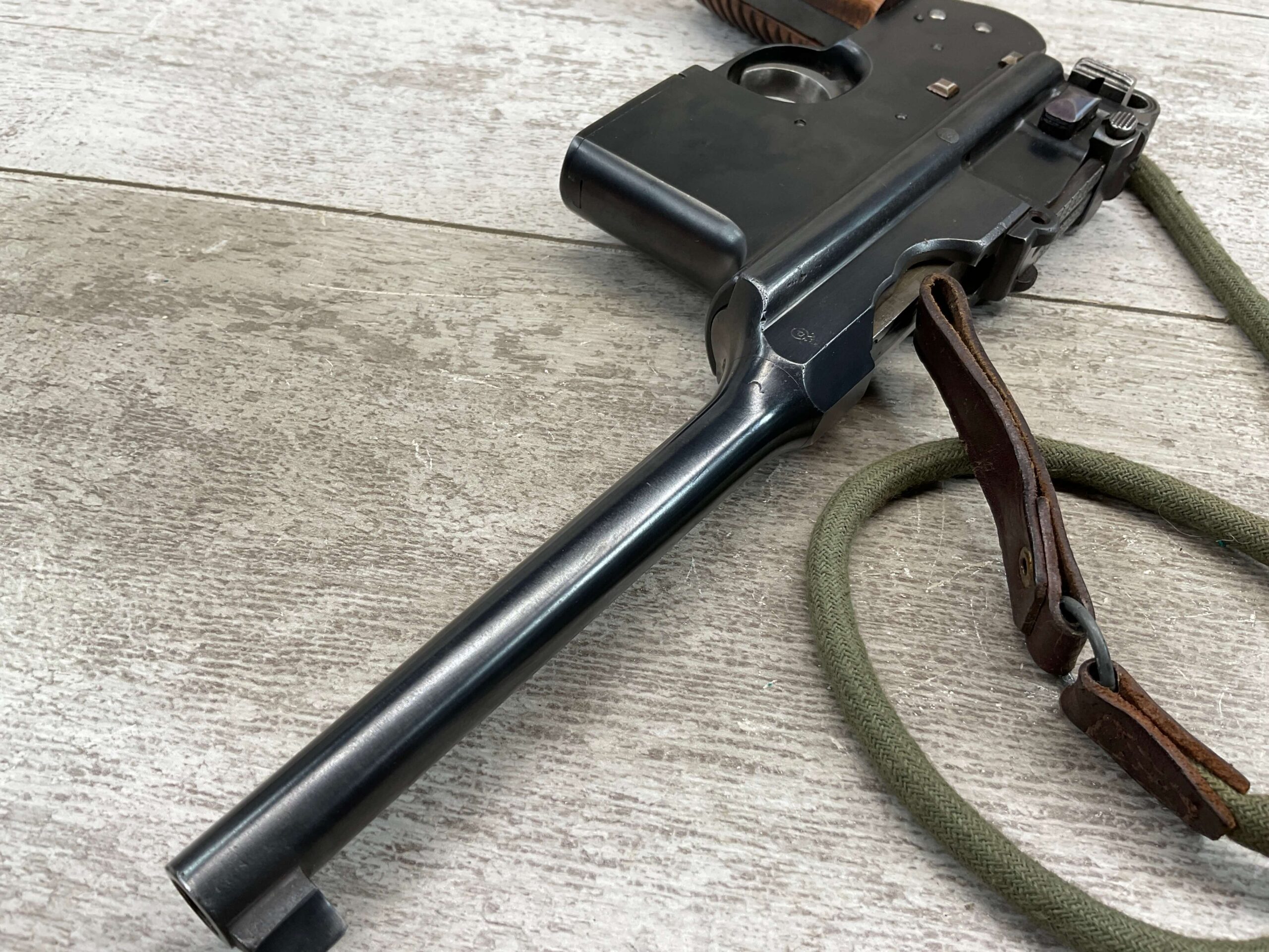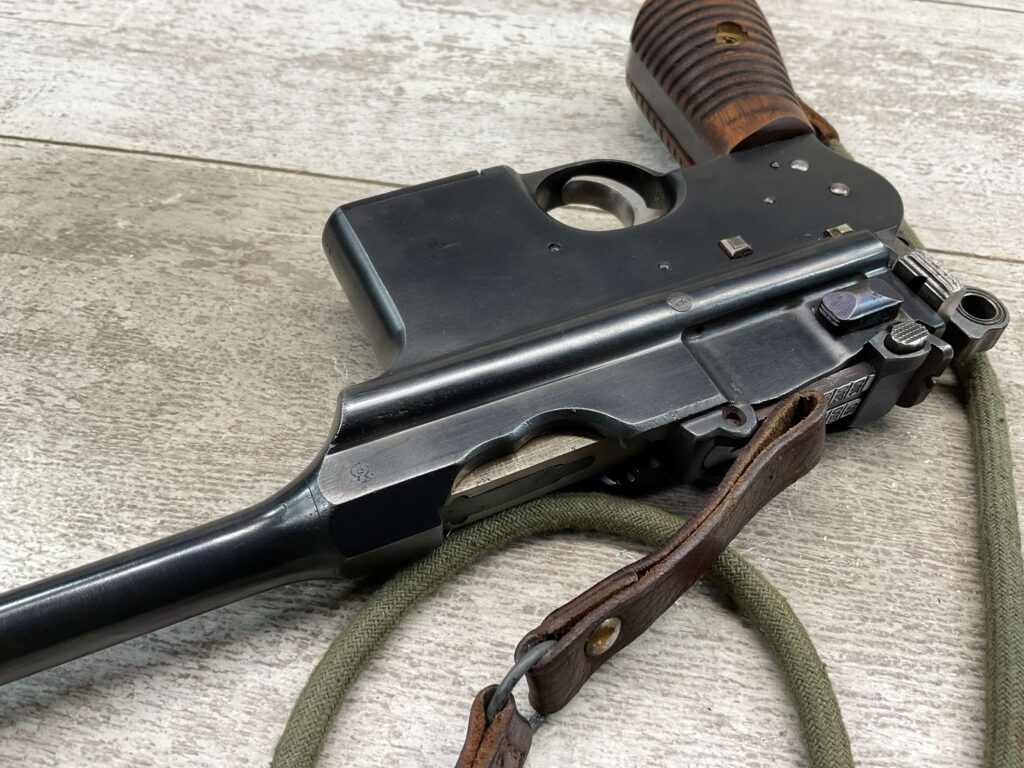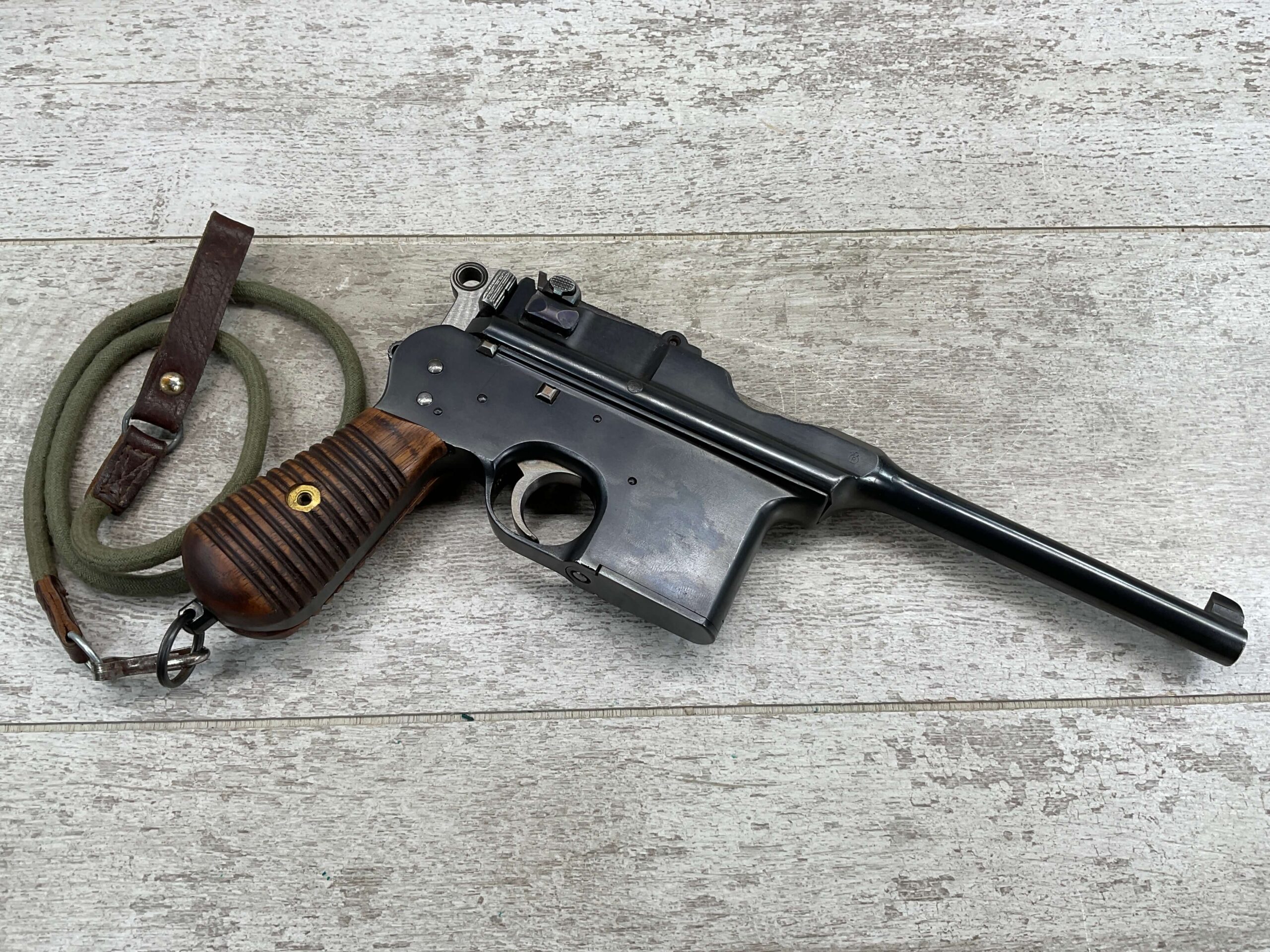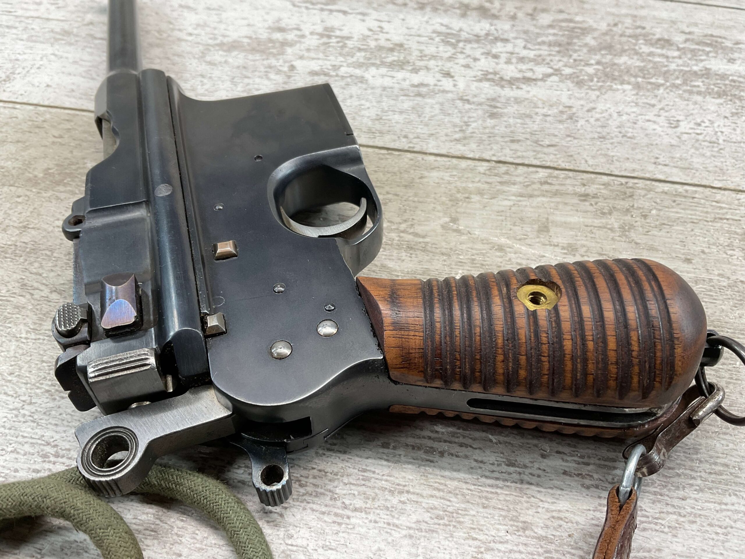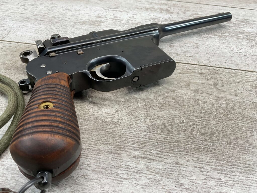 ASTRA 900 FLATSIDE BROOMHANDLE 9MM RESTORED PISTOL #23667, 9MMMM, NON MATCHING, 98% REBLUE, EXC BORE & RIFLING, EXC REPLACEMENT GRIPS, 5.5″ BBL, “ASTRA AUTOMATIC PISTOL CAL 7.63” LEFT SIDE PANEL OF FRAME, STANDARD PROOFS, LANYARD RING & LANYARD, LIGHT IMPORT BETWEEN GRIP & TRIGGER GUARD, 98%+ OVERALL, CONDITION AS SHOWN IN PICTURES.