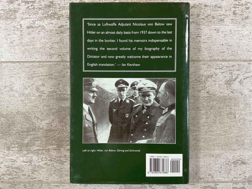 AT HITLER’S SIDE: THE MEMOIRS OF HITLER’S LUFTWAFFE ADJUTANT 1937-1945 by NICOLAUS VON BELOW, HARDCOVER, DUST COVER HAS MINOR DAMAGE, ISBN: 1-85367-468-0