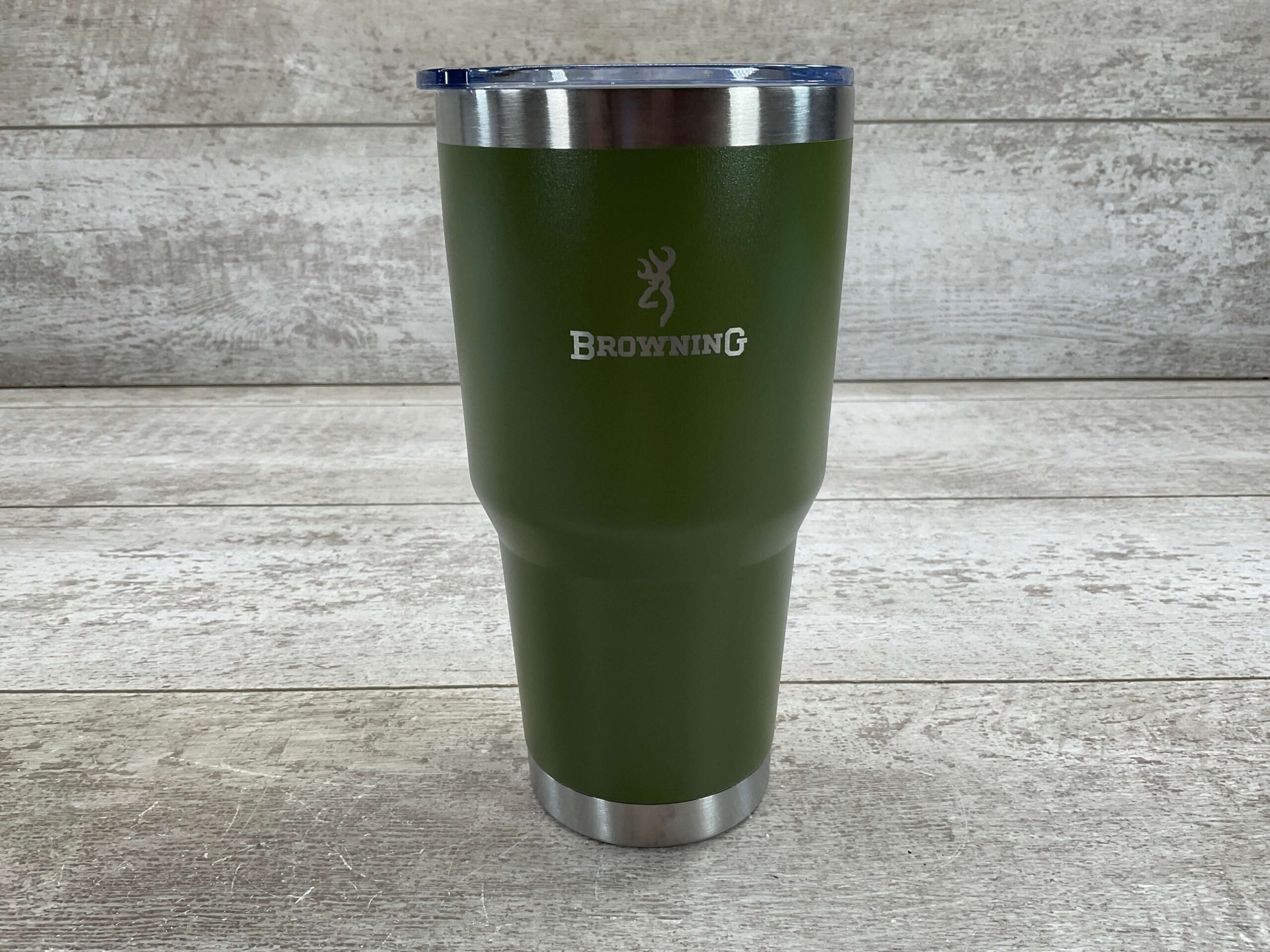 BROWNING FIREARMS GREEN TUMBLER, PERFECT FOR YOUR ICE WATER OR COFFEE!