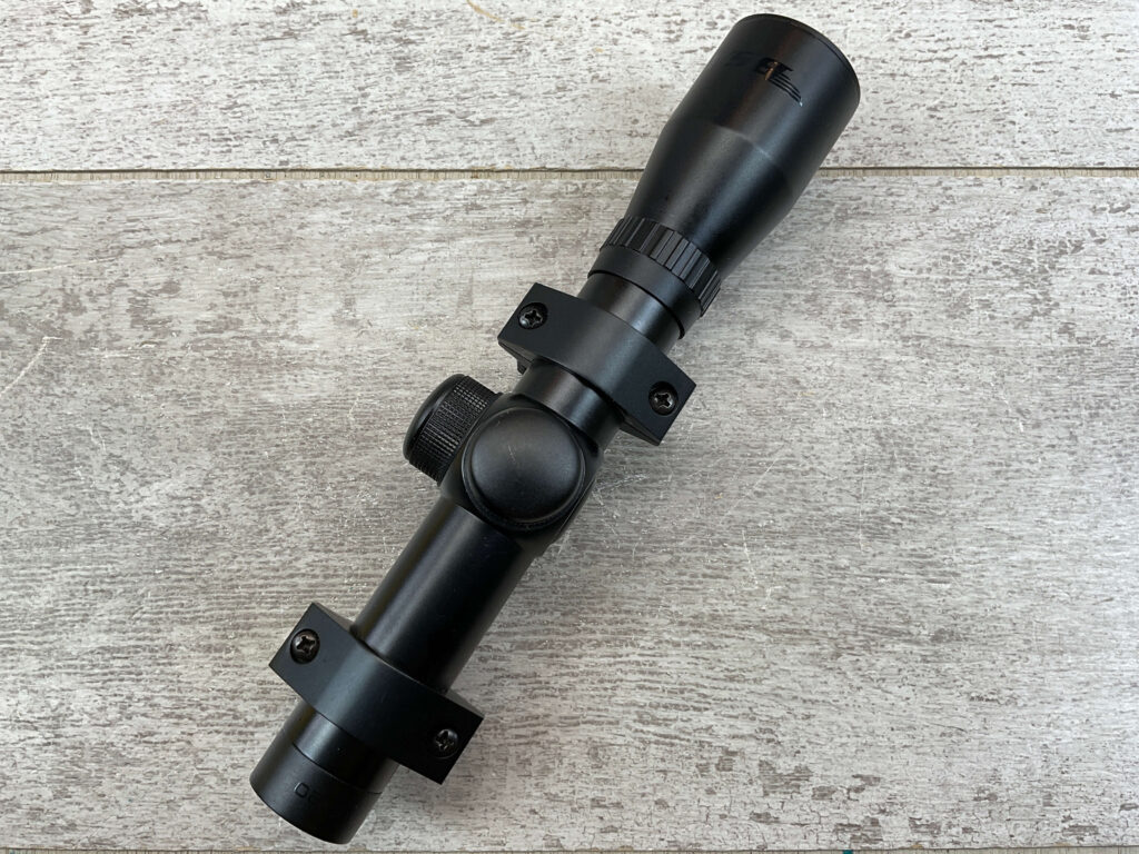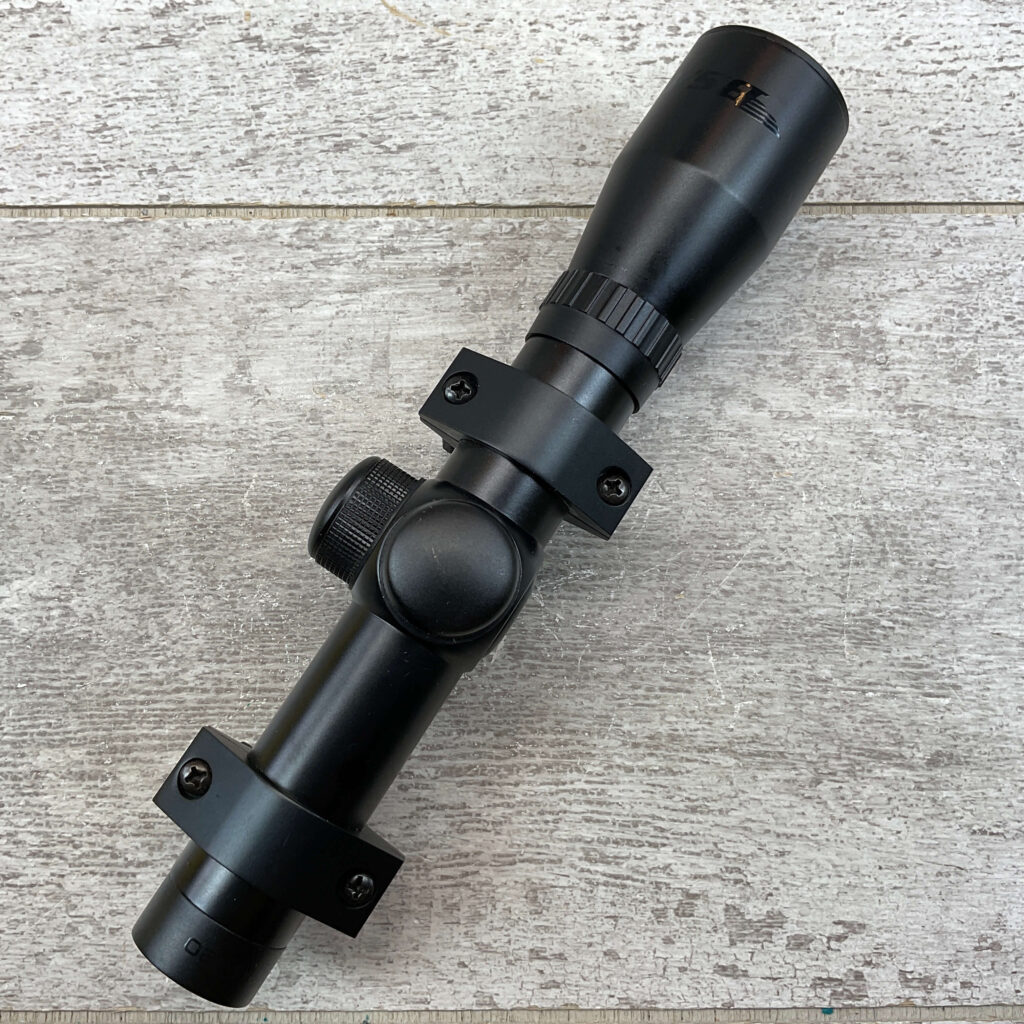 BSA .22 SPECIAL 2.5X20 CROSSHAIR PISTOL SCOPE W/MOUNTS, MADE IN CHINA, MINTY/LIKE NEW, LENGTH: 8″