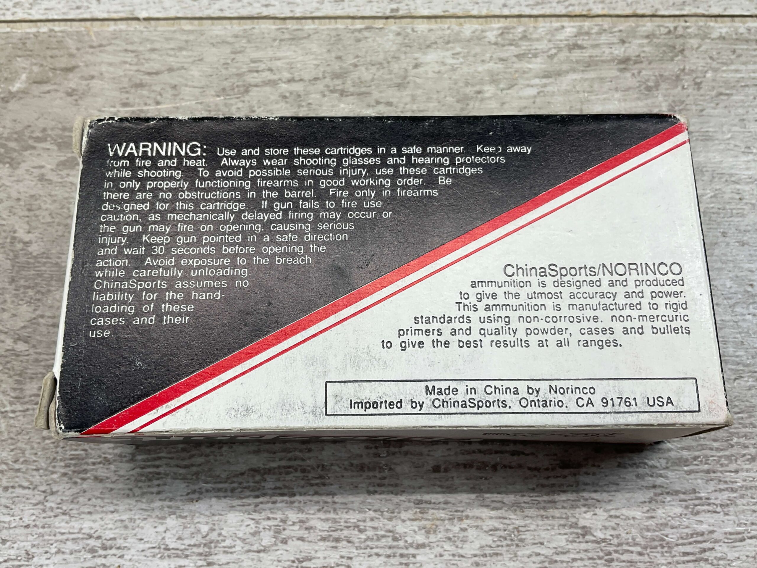 CHINA SPORTS 7.62X25MM, 85 GR. FMJ AMMO, FULL BOX, BOX IS A BIT WORN ON EDGES BUT FUNCTIONS, ORIGINAL PRICE STICKER ON FRONT OF BOX.