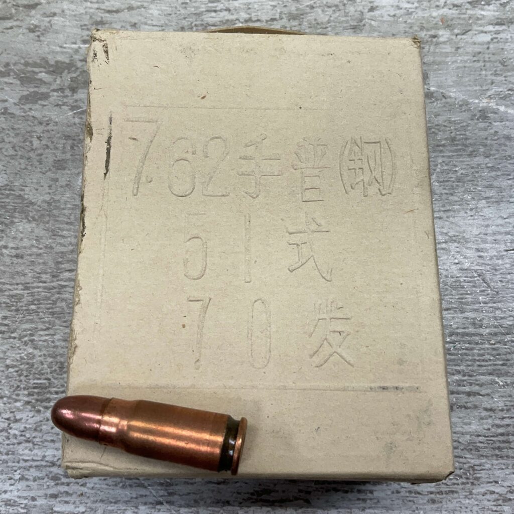 CHINESE (TAIWAN) 7.62MM STEEL TOKAREV AMMO, FULL BOX, VINTAGE, FULL BOX (70 ROUNDS), LABEL TRANSLATES TO “7.62 HANDGUN (STEEL) / TYPE 51 / 70 ROUNDS”, BOX IS IN EXC CONDITION.