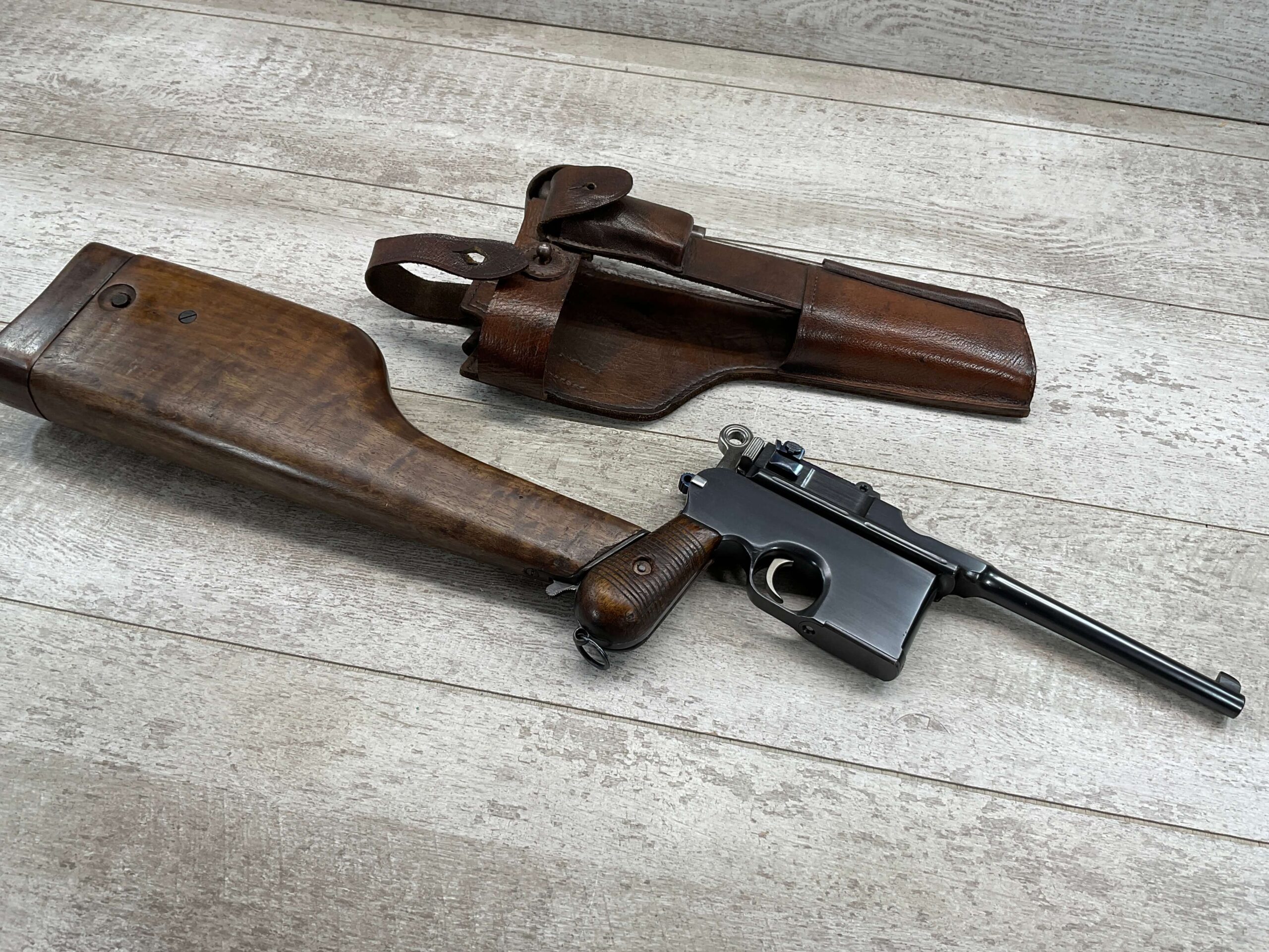 CHINESE TAKU NAVAL DOCKYARD C96 BROOMHANDLE FLATSIDE PISTOL RIG, MATCHING & RARE #4-09100-BA