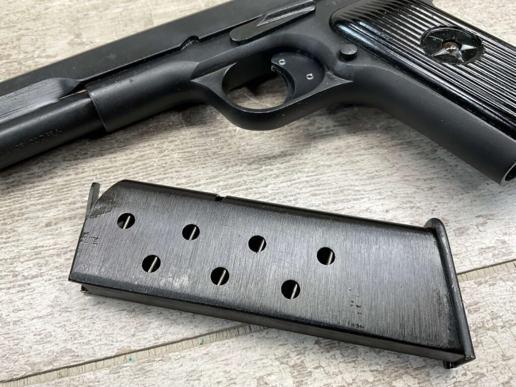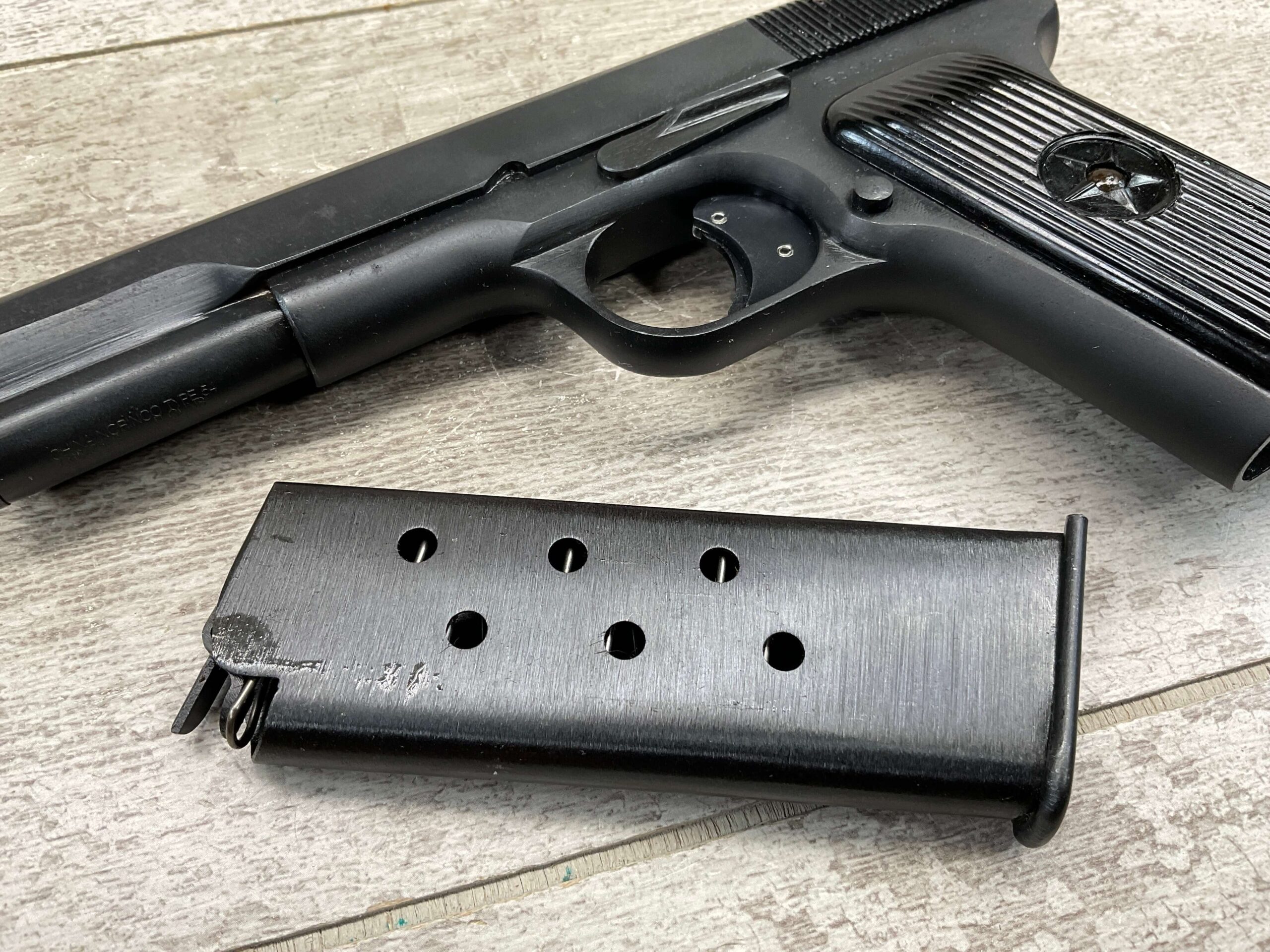CHINESE TOKAREV TYPE 54 7.62X25 SEMI AUTO PISTOL, VIETNAM ERA (1968-69)VG- EXCELLENT CONDITION, 1 MAGAZINE, MANUFACTURED BY NORTH CHINA INDUSTRIES (NORINCO) STAMPED ON TOP OF SLIDE, LIGHT RGUNS IMPORT ON UNDERSIDE OF BARREL FRAME, C&R ELIGIBLE, MANY AVAILABLE