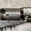 The Model 1849 Pocket, the replacement for the Baby Dragoon, was the most widely produced of any Colt percussion pistol. Nearly 340,000 were manufactured during its 23-year production run that ended in 1873. Over 280,000 of these were produced by Colt’s factory at Hartford by the end of the Civil War in 1865. These were very popular and saw a lot of use on the battlefield, on the home front and in the West. These were some of the smallest, handiest pocket revolvers of the time.