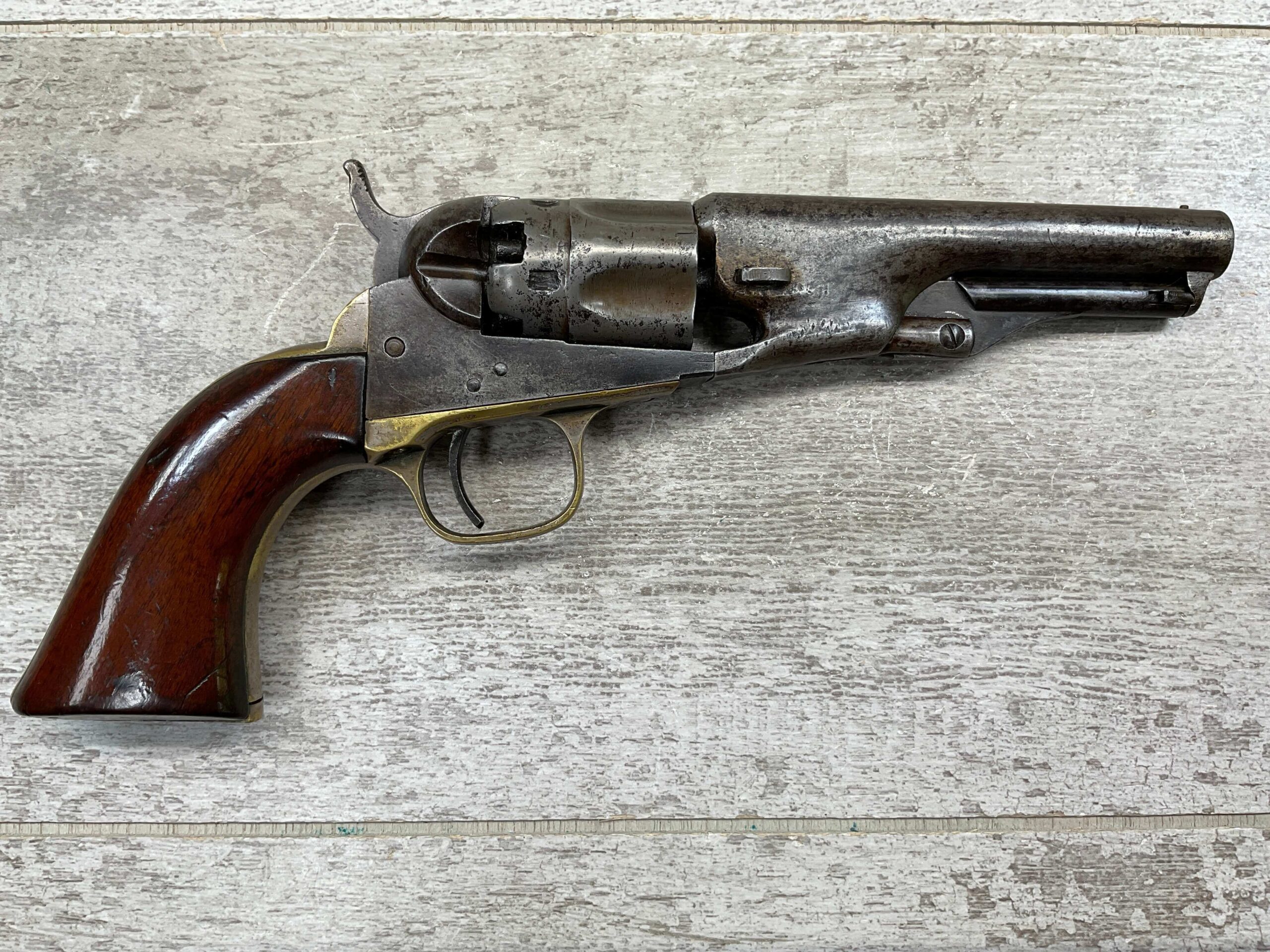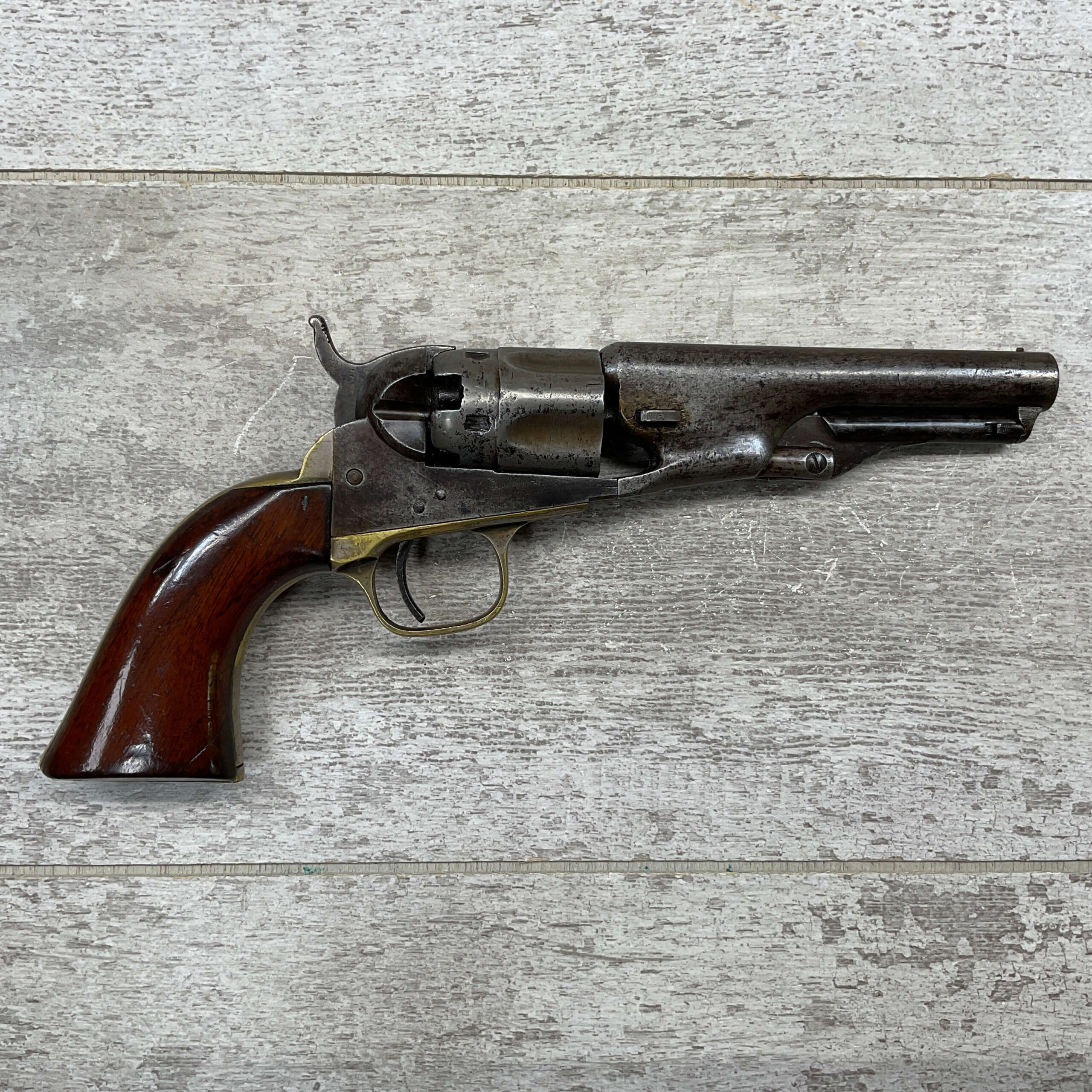 “Police Pocket Model of 1862 of Navy Caliber (.36)”, this 5 shot .36 caliber percussion revolver was often purchased by serving Officers as a reserve handgun carried on the inside of their tunics.