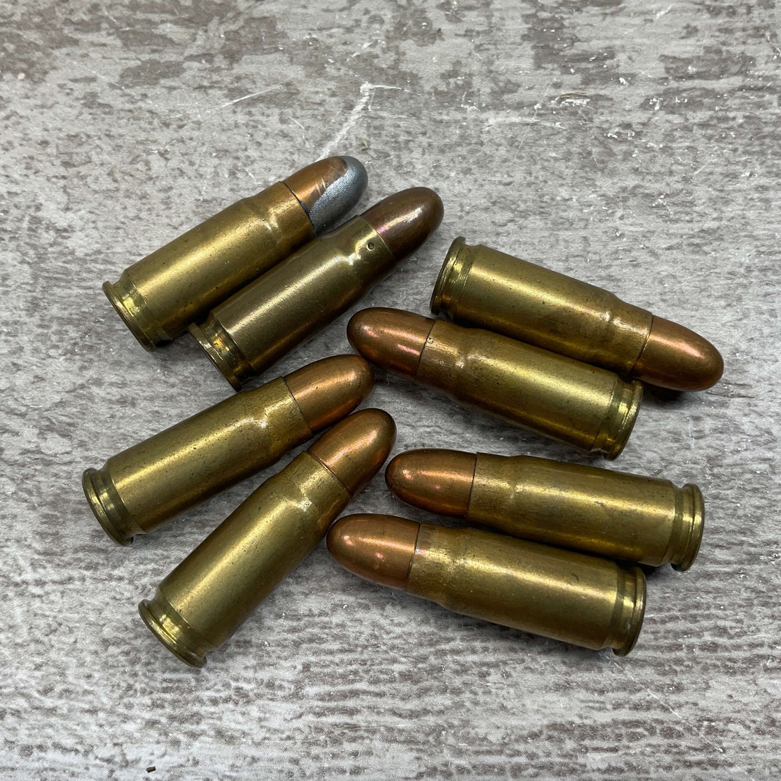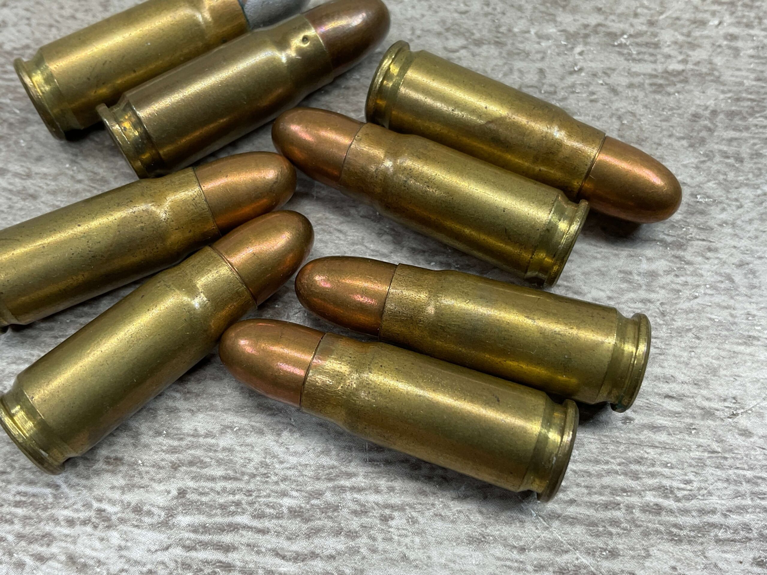 CZECHOSLOVAKIAN 1953 7.62MM TOKAREV AMMO, QTY 8, VINTAGE, CONTAINS 7 CZECHOSLOVAKIAN ROUNDS AND 1 1948 USSR (RUSSIAN) ROUND IN PLASTIC BAG.