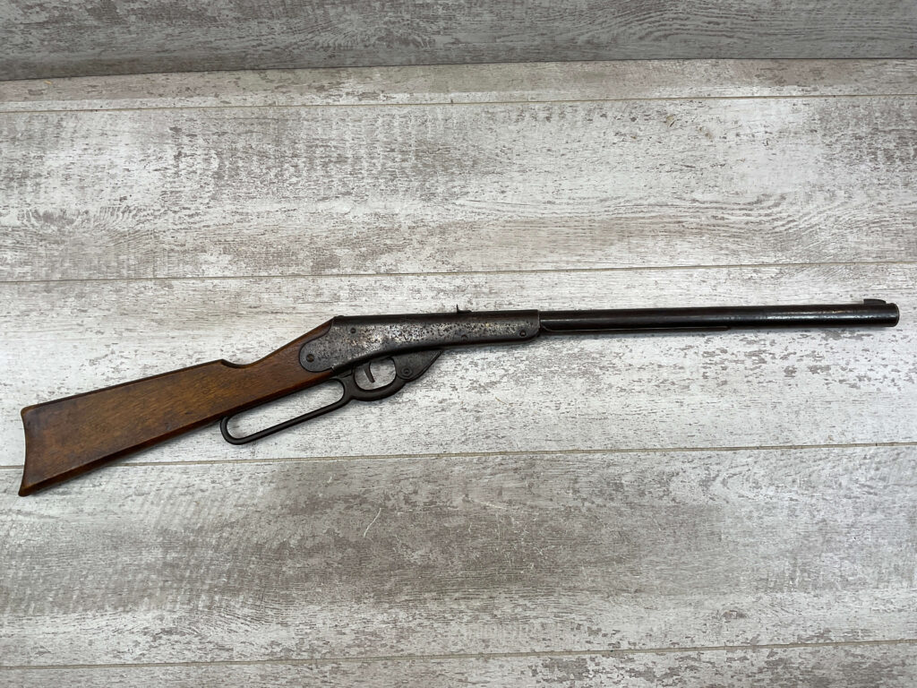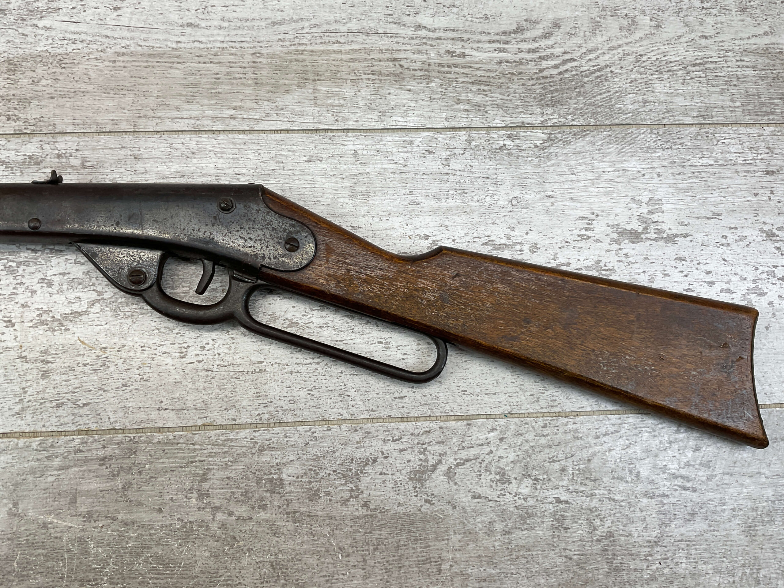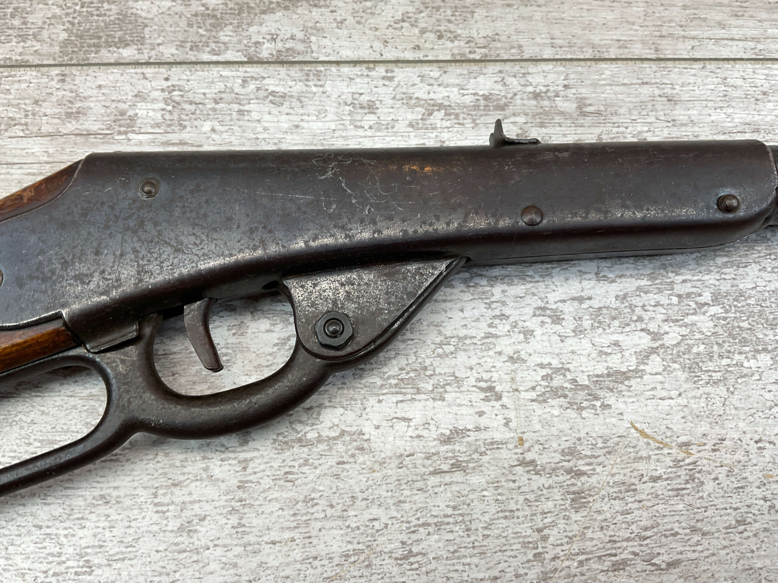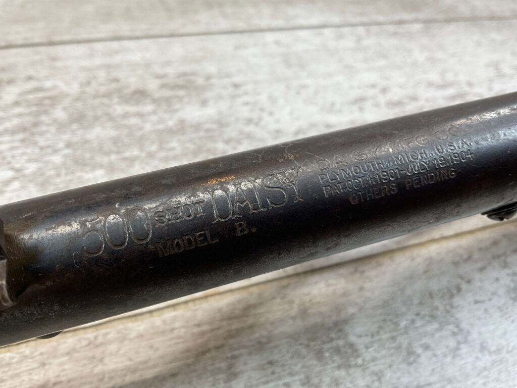 DAISY MODEL B 500 SHOT AIR RIFLE, VINTAGE, MARKED “PAT.OCT.1.1901-JULY 19.1904”, STOCK IS IN VG CONDITION, BARREL IS IN GOOD CONDITION WITH WEAR, OVERALL 90%