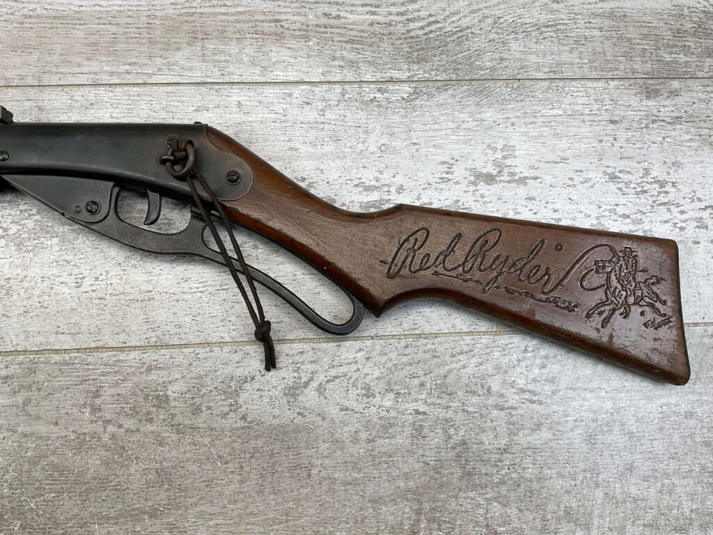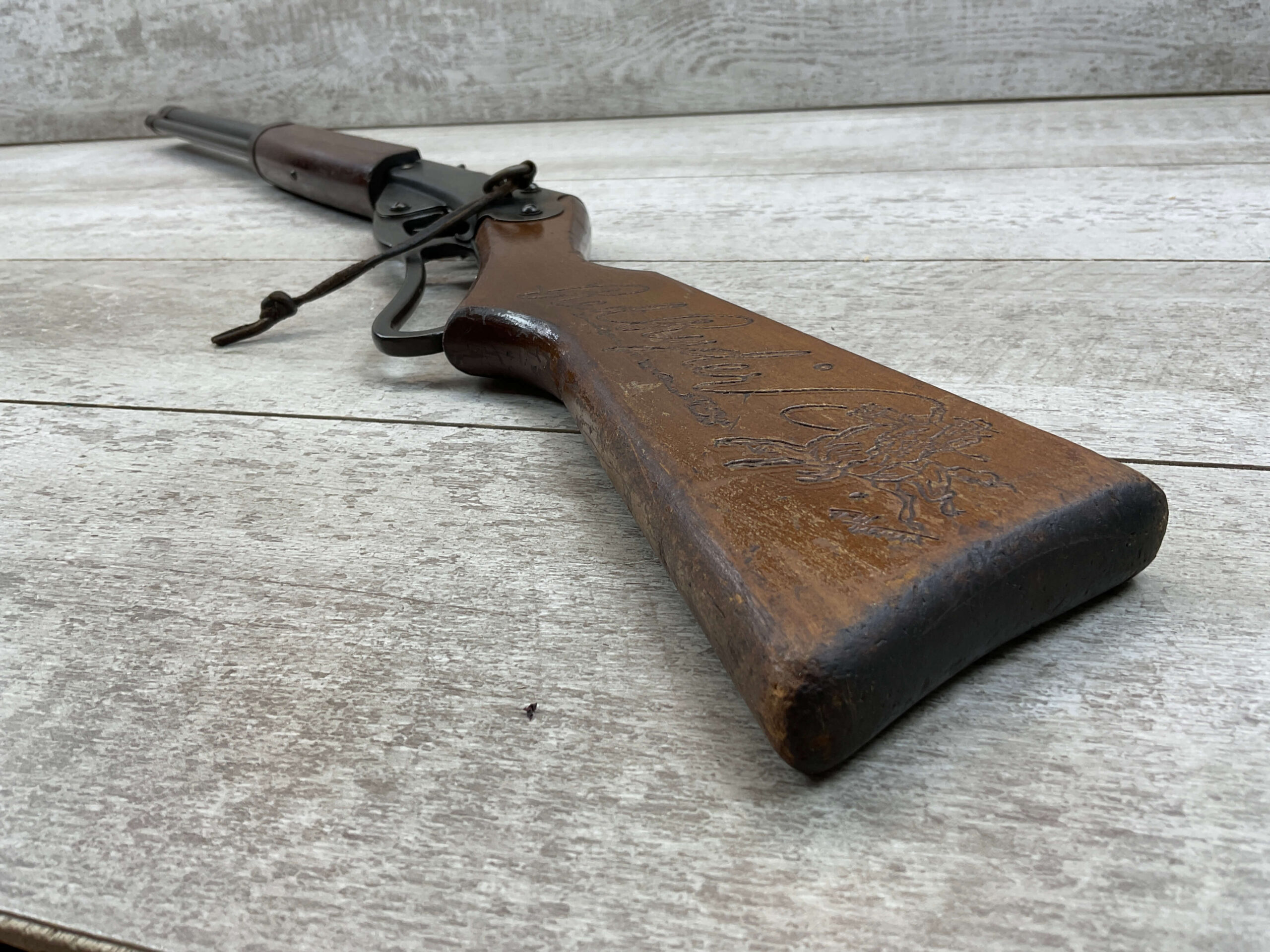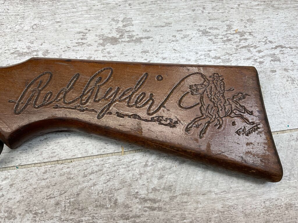 DAISY NO. 111 MODEL 40 RED RYDER AIR RIFLE, VINTAGE, RARE, ENGRAVED STOCK WITH RED RYDER DESIGN, IN VG CONDITION, OVERALL 90%