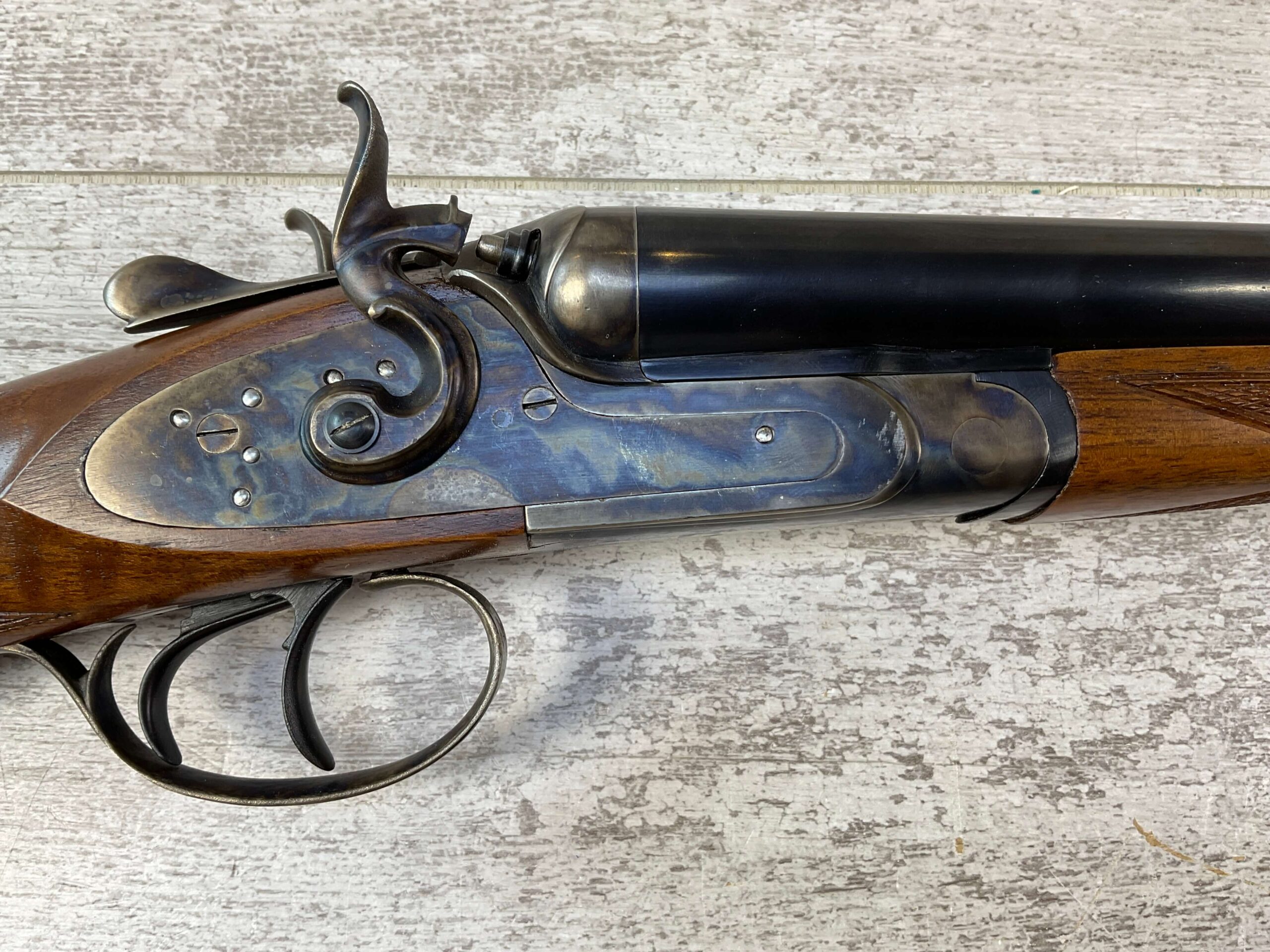DIXIE GUN WORKS 45-70 SXS DOUBLE BARREL RIFLE, JAMES EARL JONES COLLECTION #MK1102, 24″ TAPPERED ROUND BARREL, LIKE NEW, EXC BORE & RIFLING, BEAD FRONT SIGHT, REAR SIGHT HAS 3 FLIP UP BLADES (ONE FOR 100, 200 & 300 YDS), SLING SWIVELS, DOUBLE TRIGGERS, BEAUTIFUL CHECKERED AMERICAN WALNUT BUTTSTOCK & FOREARM, CONDITION AS SHOWN IN PICTURES, FROM THE JAMES EARL JONES “FAVORITES” COLLECTION W/ CERTIFICATE OF AUTHENTICITY.