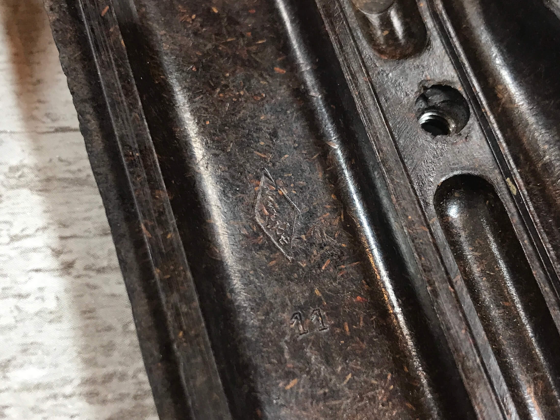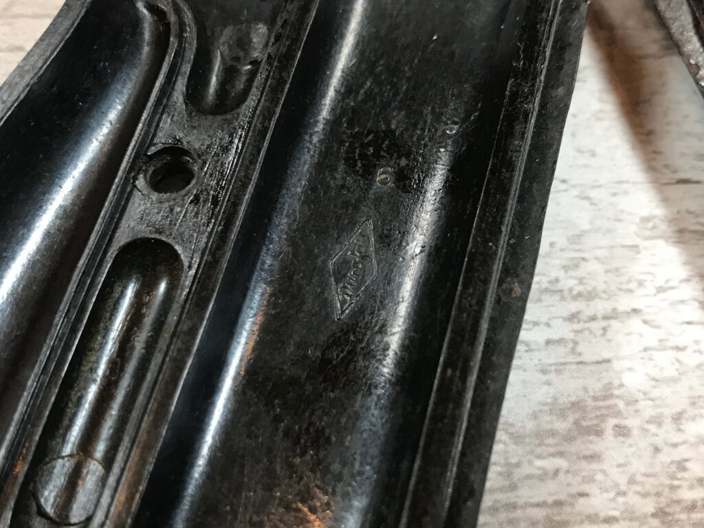 SKU#7903 DUROFOL LATE WAR P38 GRIPS-RARE, PARTLY MARBLEIZED APPEARANCE, VERTICAL DIAMOND WITH DROFOL IN SCRIPT, NO SCREW, EXCELLENT CONDITION