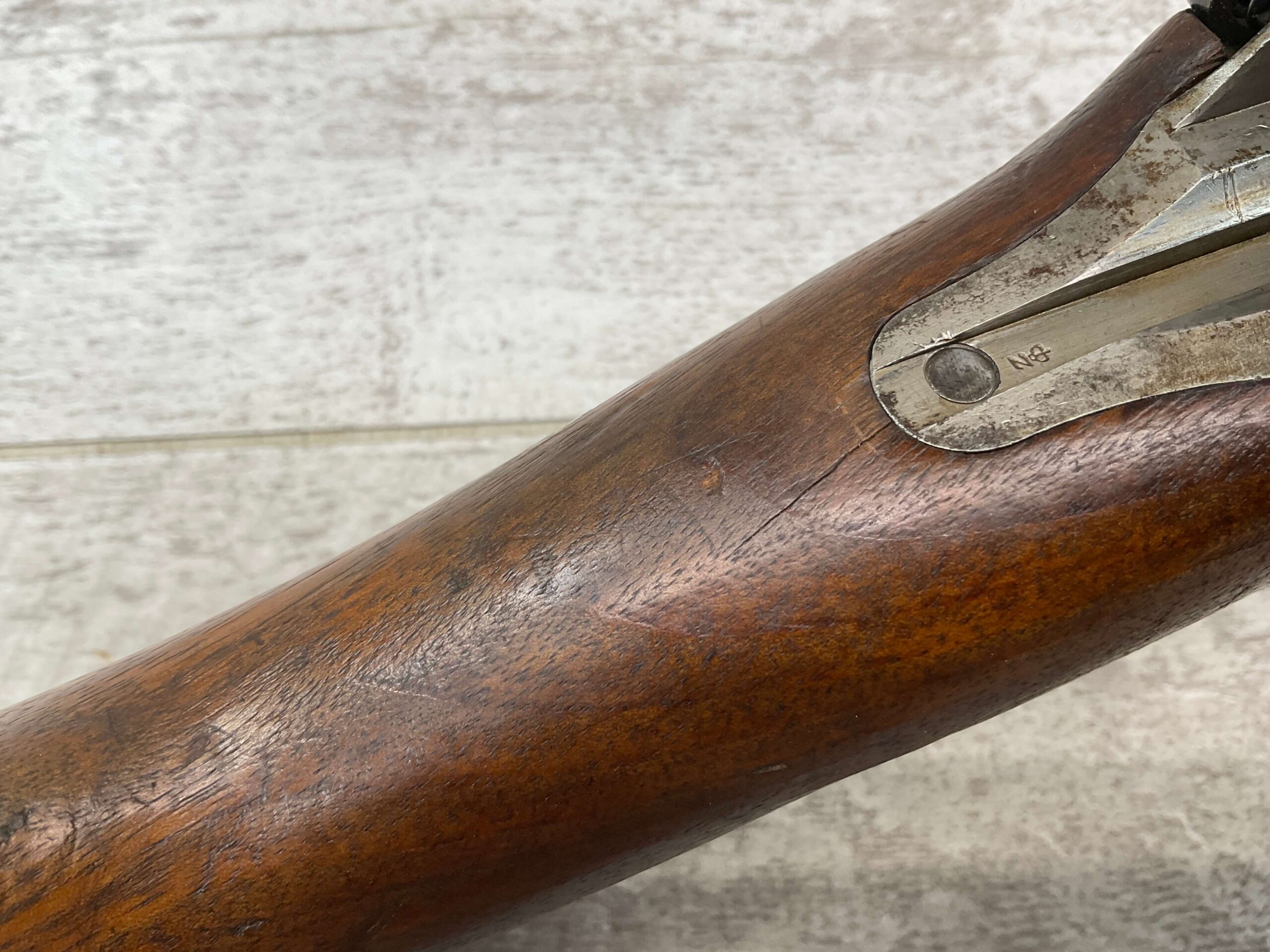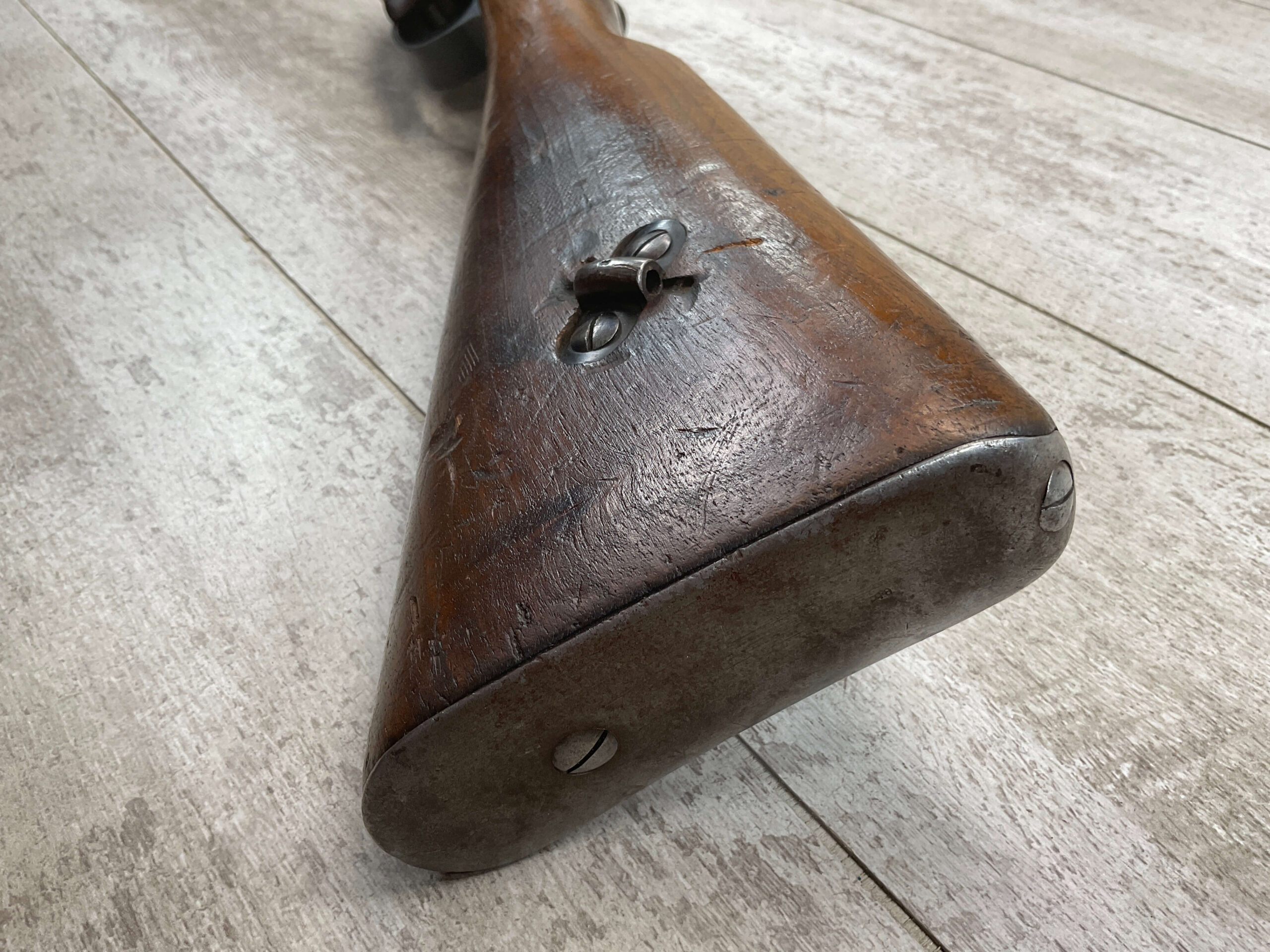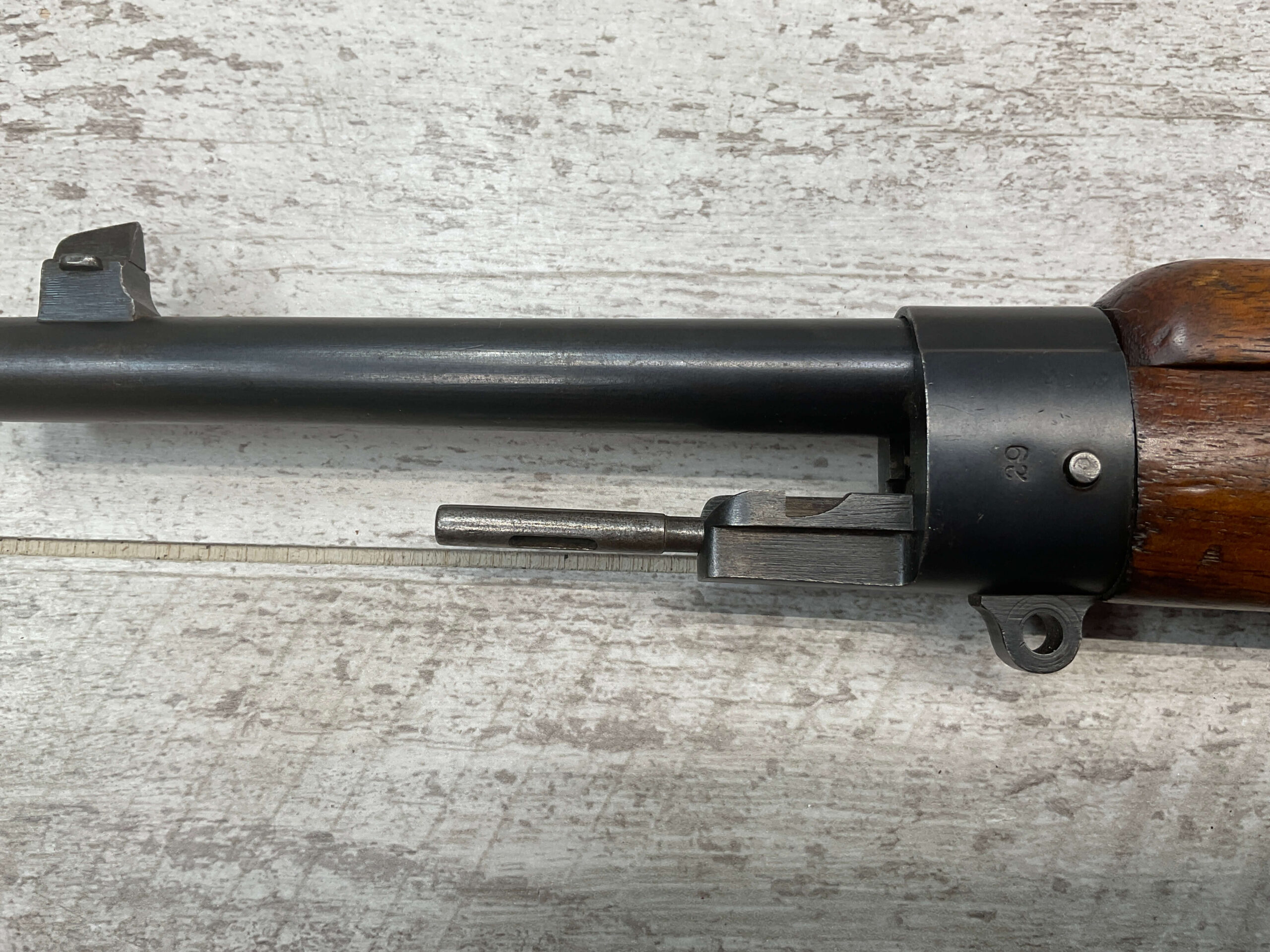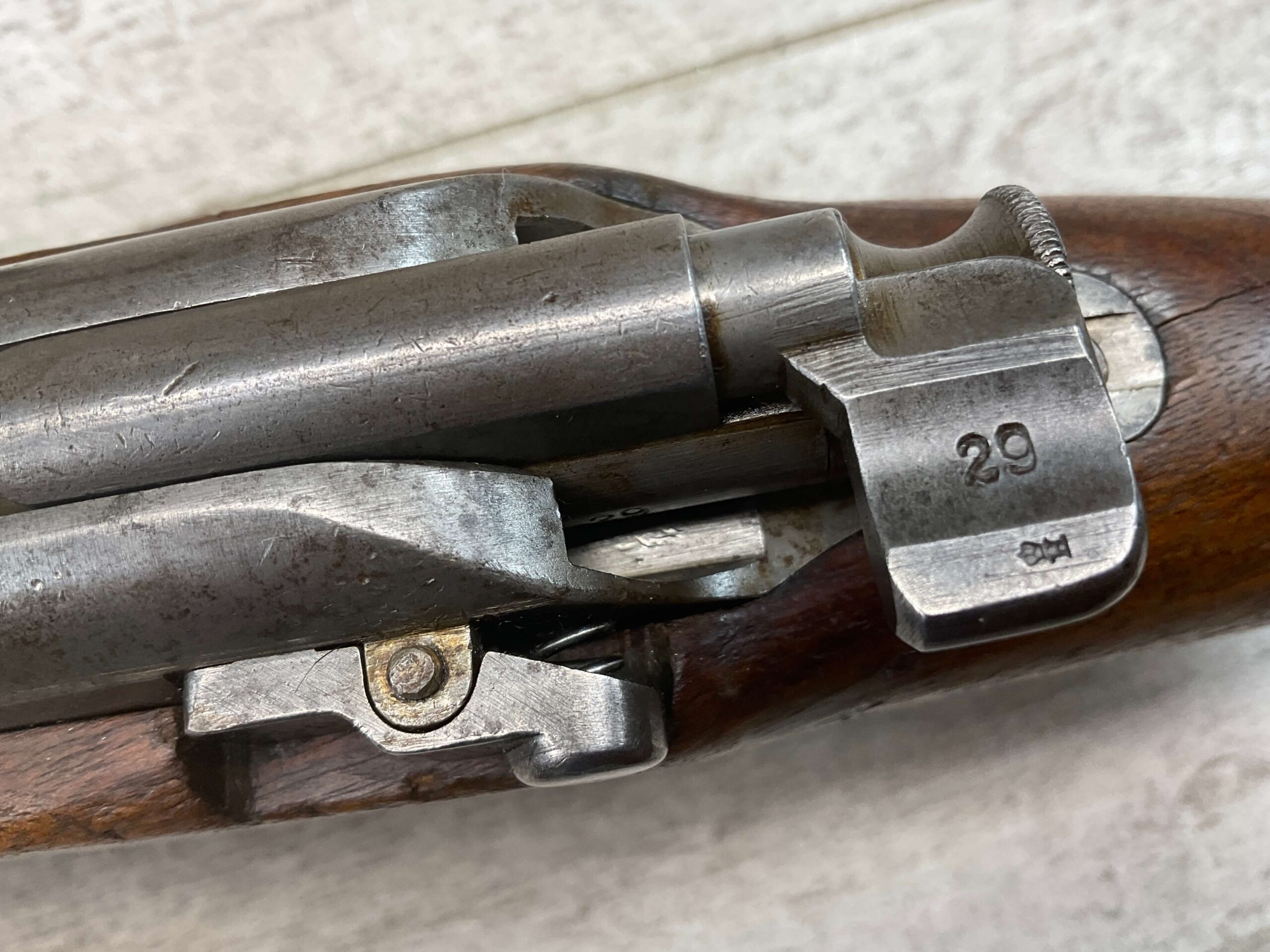 DUTCH #4 BICYCLE MODEL 1895 HEMBRUG CAVALRY CARBINE, RARE, #6029N, 1918 MFR, ALL MATCHING, EXC STOCK W/TYPICAL DINGS/NICKS, RECEIVER IS “IN THE WHITE”, VG-EXC BRIGHT BORE W/LIGHT FROSTING IN THE GROOVES AND EXC RIFLING, ORIGINAL CLEANING ROD, NO IMPORT MARKS, PROPER PROOF MARKS THROUGHOUT, 85+% OVERALL AND RARE IN THIS CONDITION!