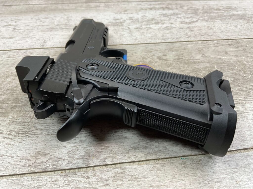 Features: Extended BeavertailCheckered Front StrapAccessory Rail