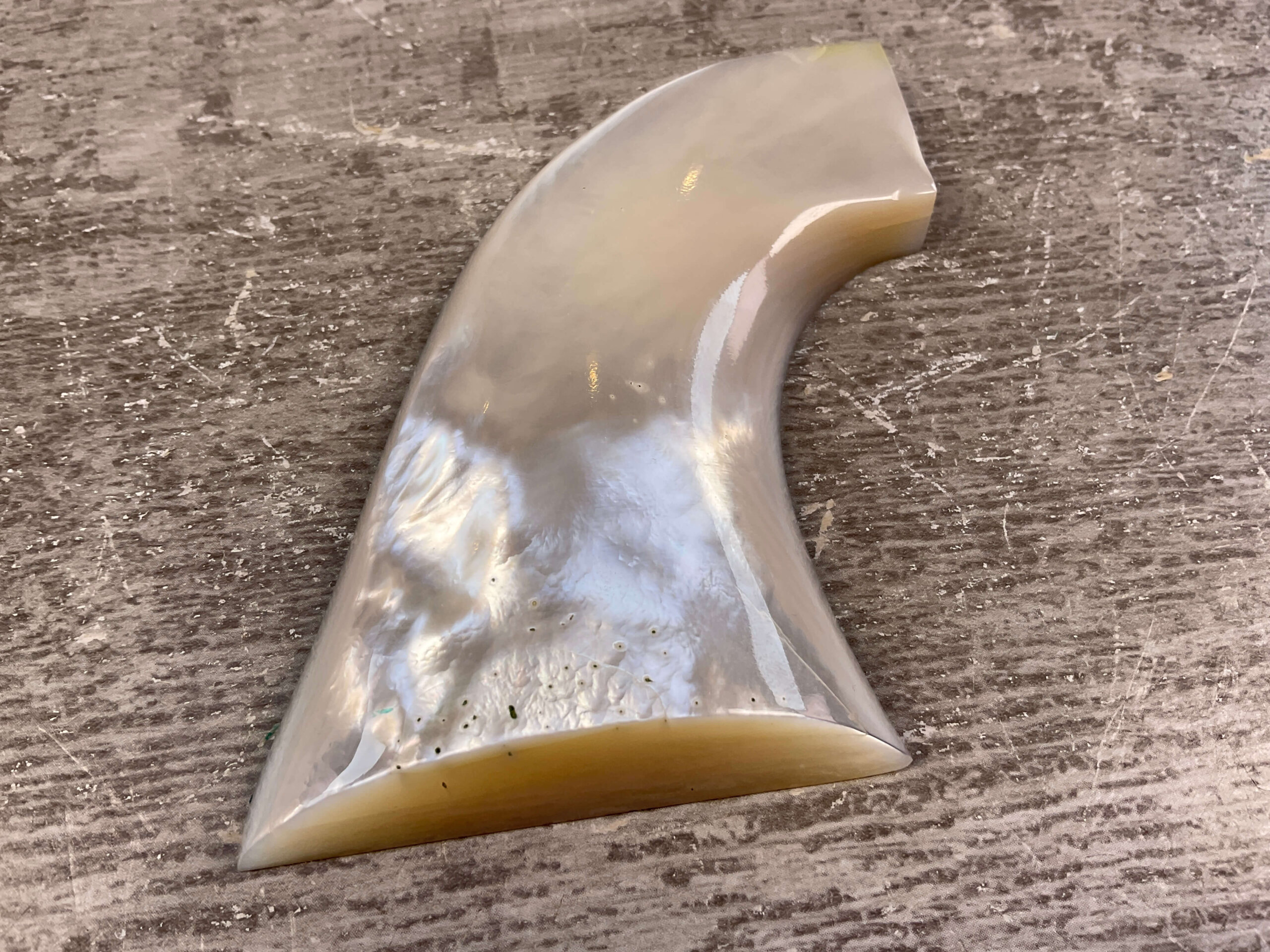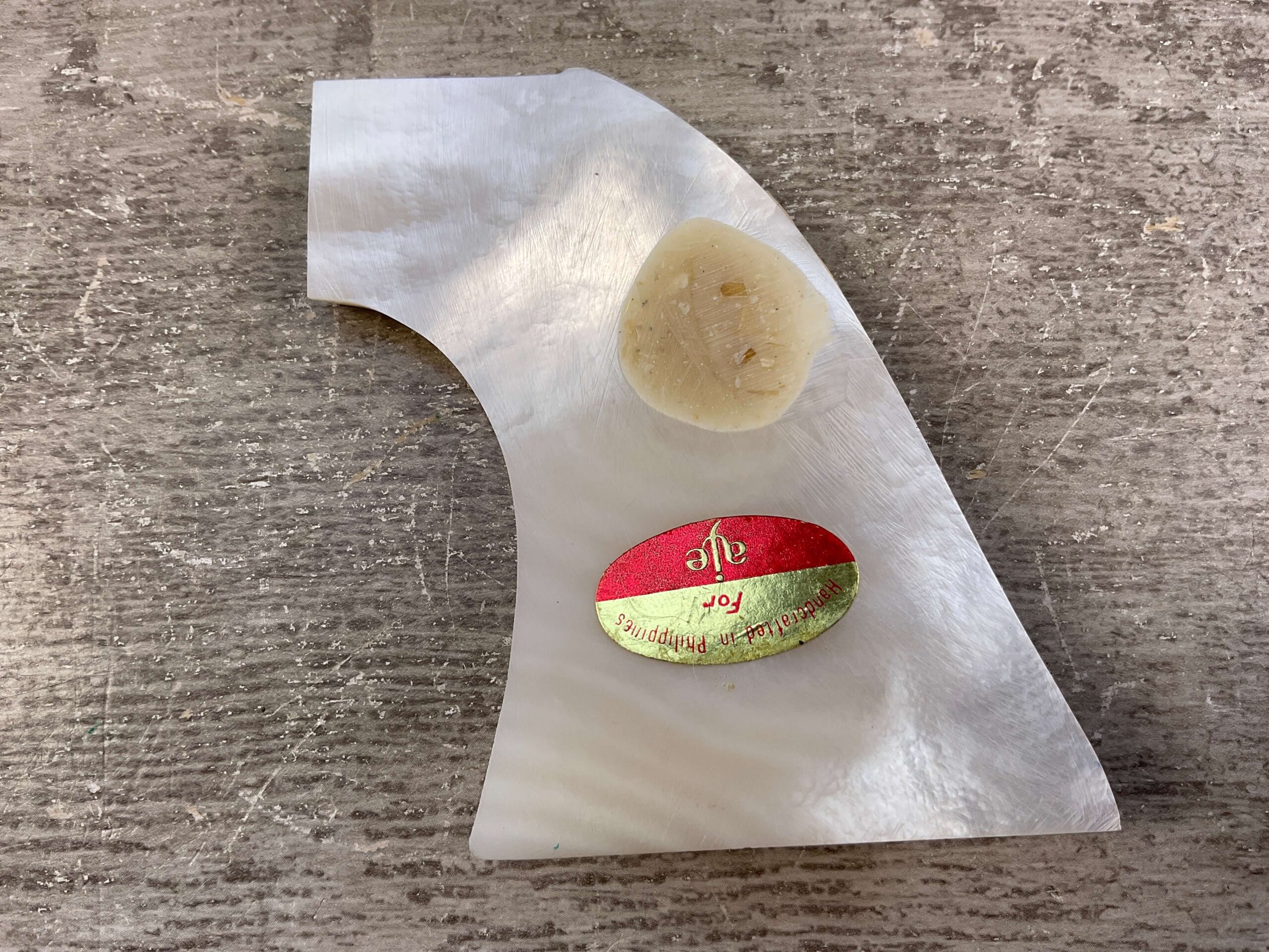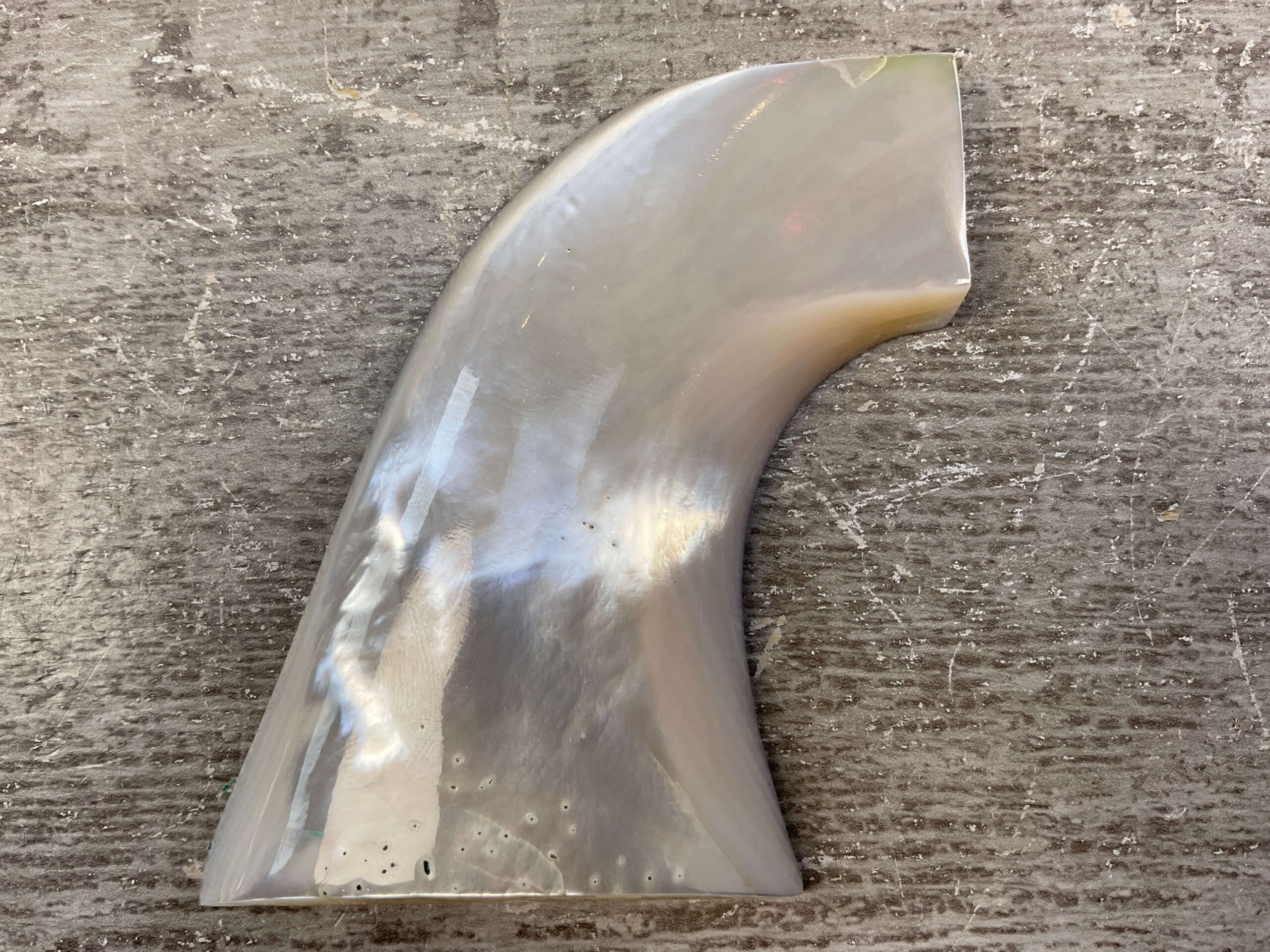 EAGLE GRIPS COLT S A ARMY, REAL PEARL RIGHT-SIDE GRIP, UNFITTED, BELIEVED TO BE GENUINE MOTHER OF PEARL GRIP (BLACK LIGHT TESTED), STICKER ON BACK SAYS “HANDCRAFTED IN PHILIPPINES FOR AJE” SINGLE RIGHT SIDE GRIP, REAL COOL FIND!