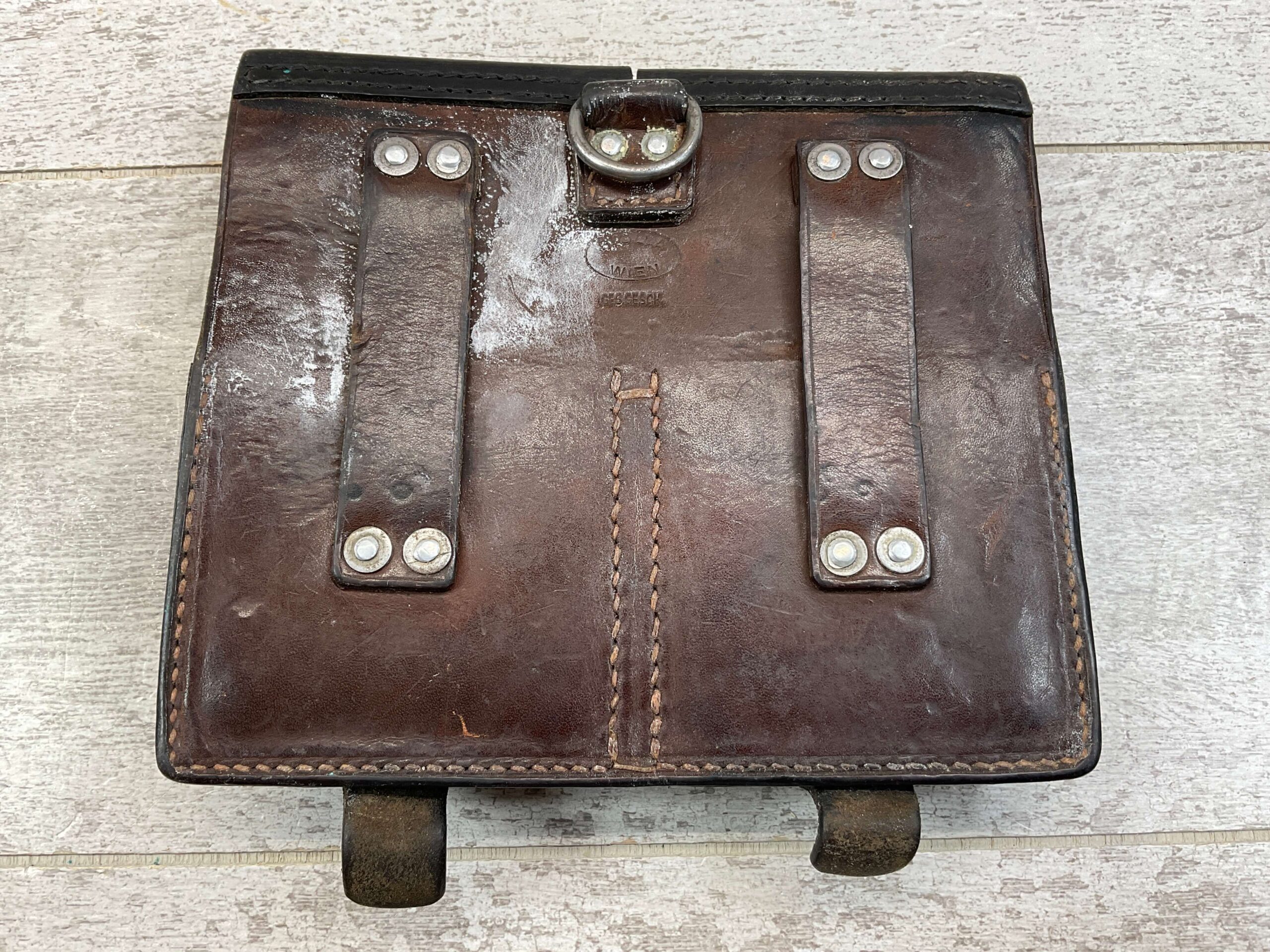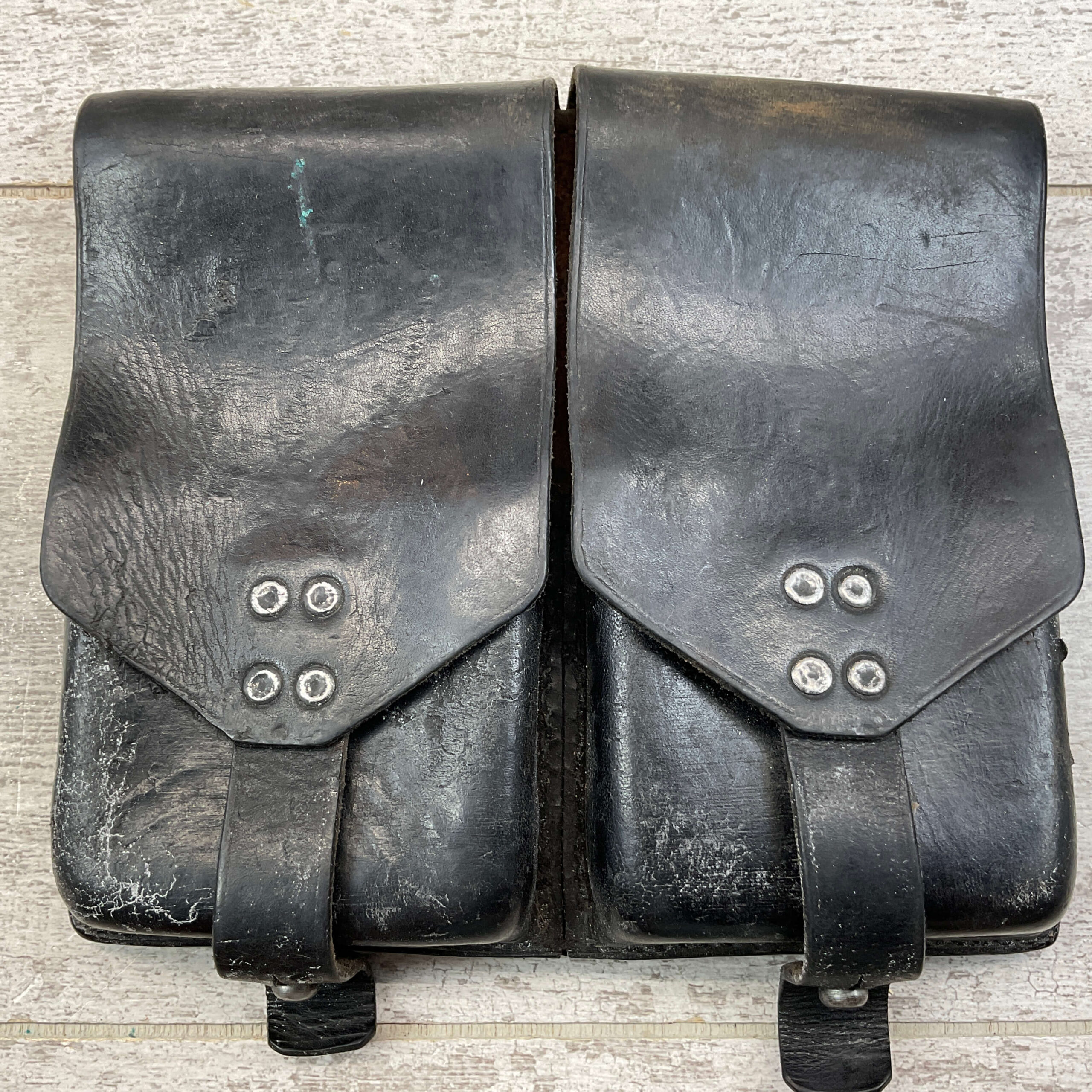 FAL DOUBLE MAGAZINE LEATHER POUCH, BLACK , VG CONDITION, D RING TO ATTACH TO GEAR, DOES NEED A CLEANING