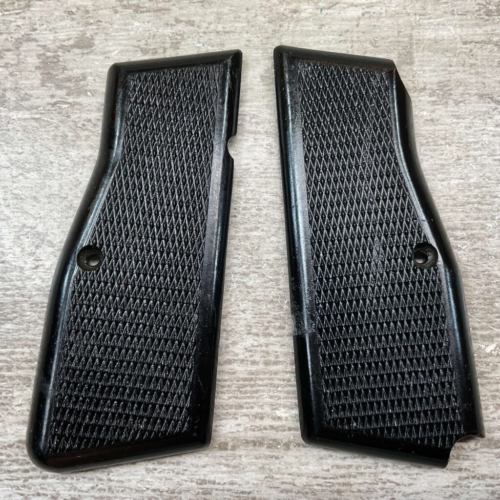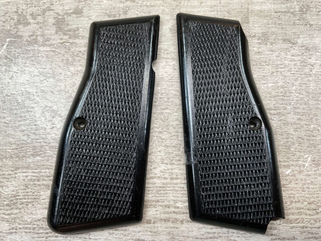 FN / BROWNING P35 HI POWER BLACK PLASTIC GRIPS, LATE WAR, EXC CONDITION, VERY CLEAN