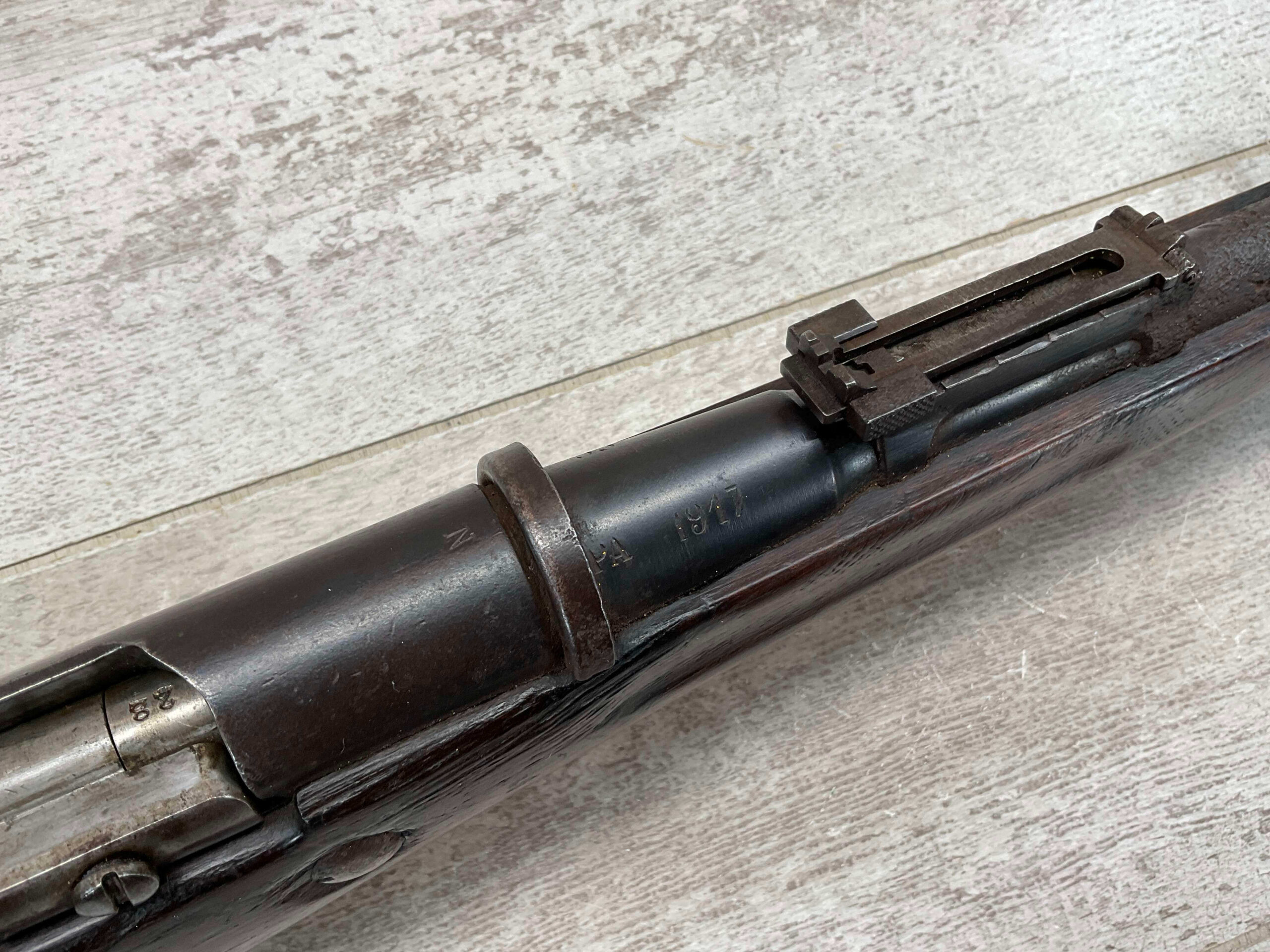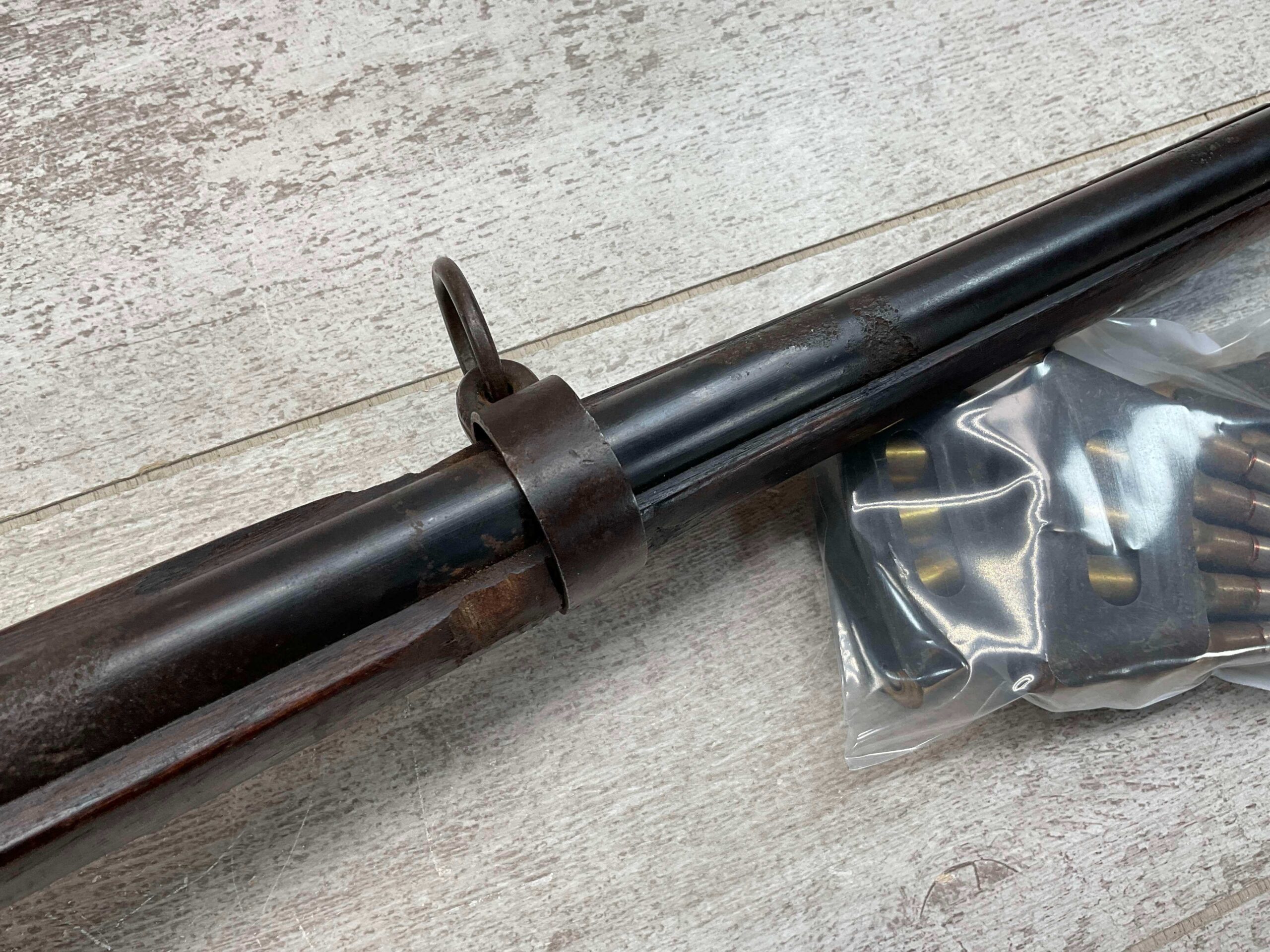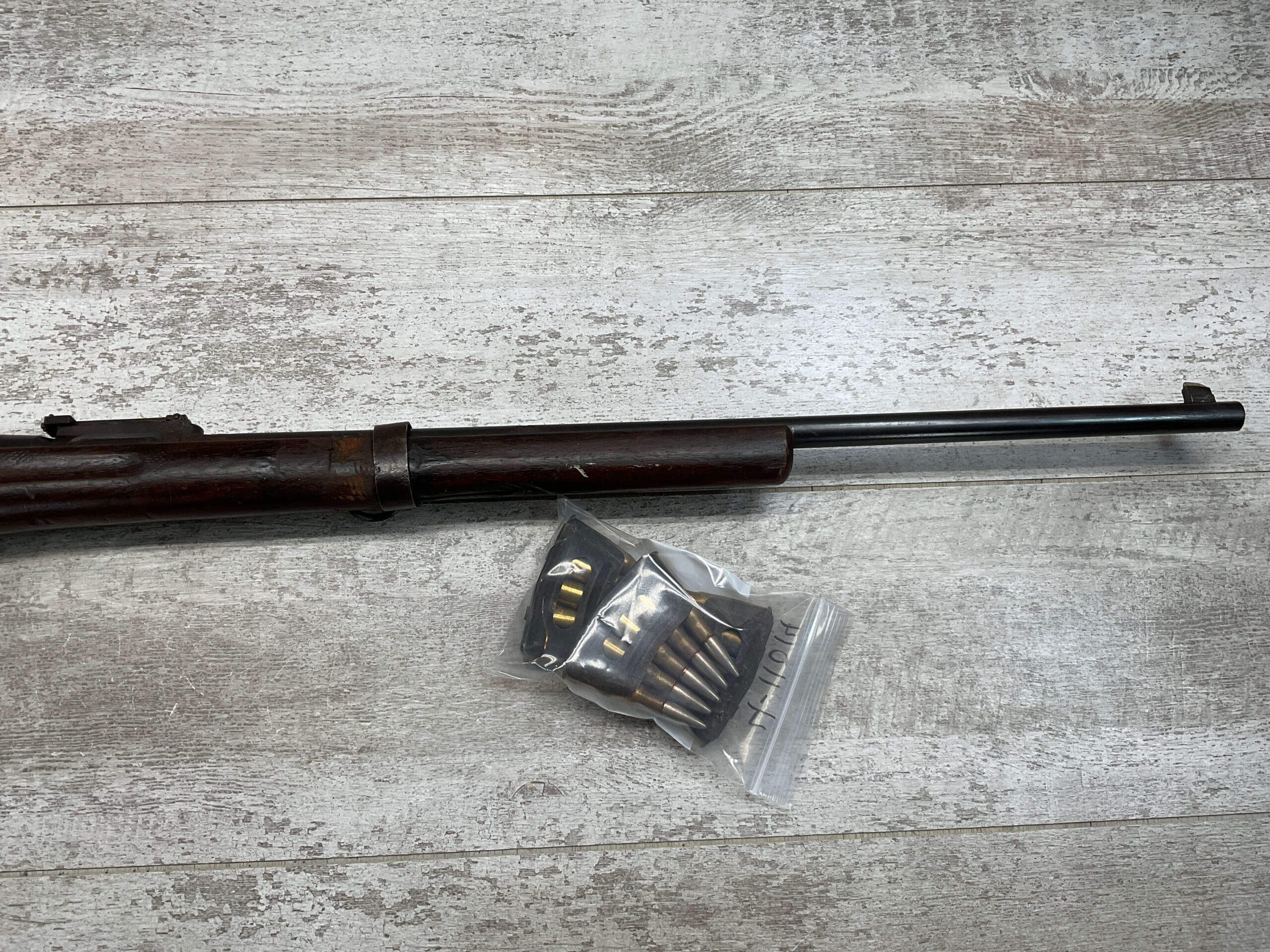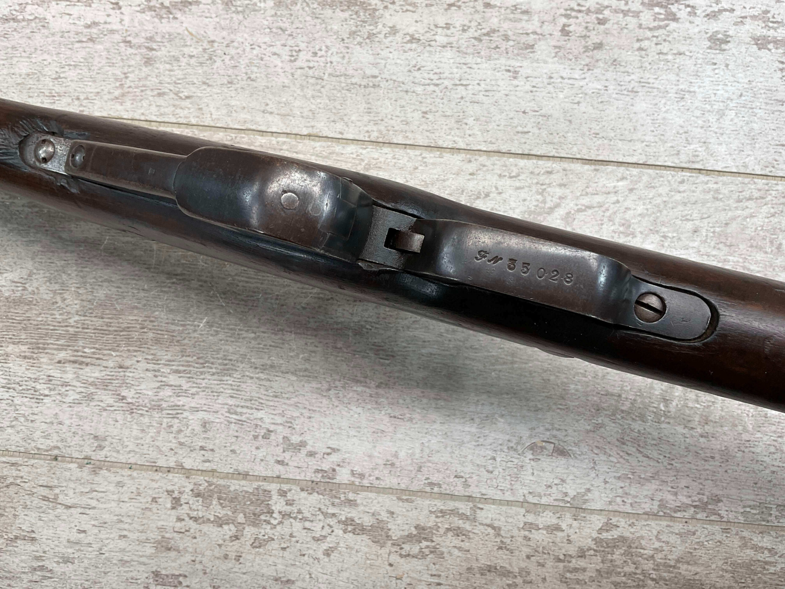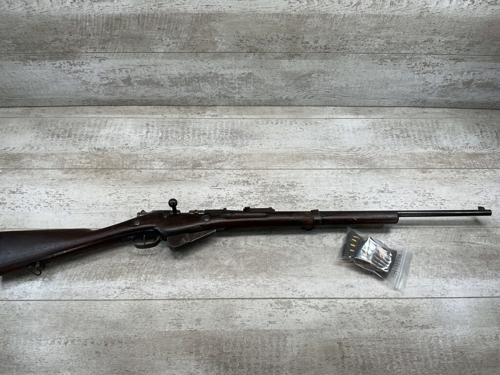 FRENCH/TURKISH M1907/15 8MM LEBEL BOLT ACTION RIFLE #35028 “ST. ETIENNE MLE-1907-15†MARKED ON THE LEFT SIDE OF THE RECEIVER, ALL SERIAL NUMBER MATCH EXCEPT FOR THE REAR SIGHT, NO VISIBLE IMPORT MARK, DARK BORE & FAIR RIFLING, SPORTERIZED STOCK W/NICKS & DINGS, EXC MECHANICALLY, 3 CLIPS W/AMMO INCLUDED, GREY PETINA FINISH W/DEEP PITTING ON BARREL, GOOD OVERALL