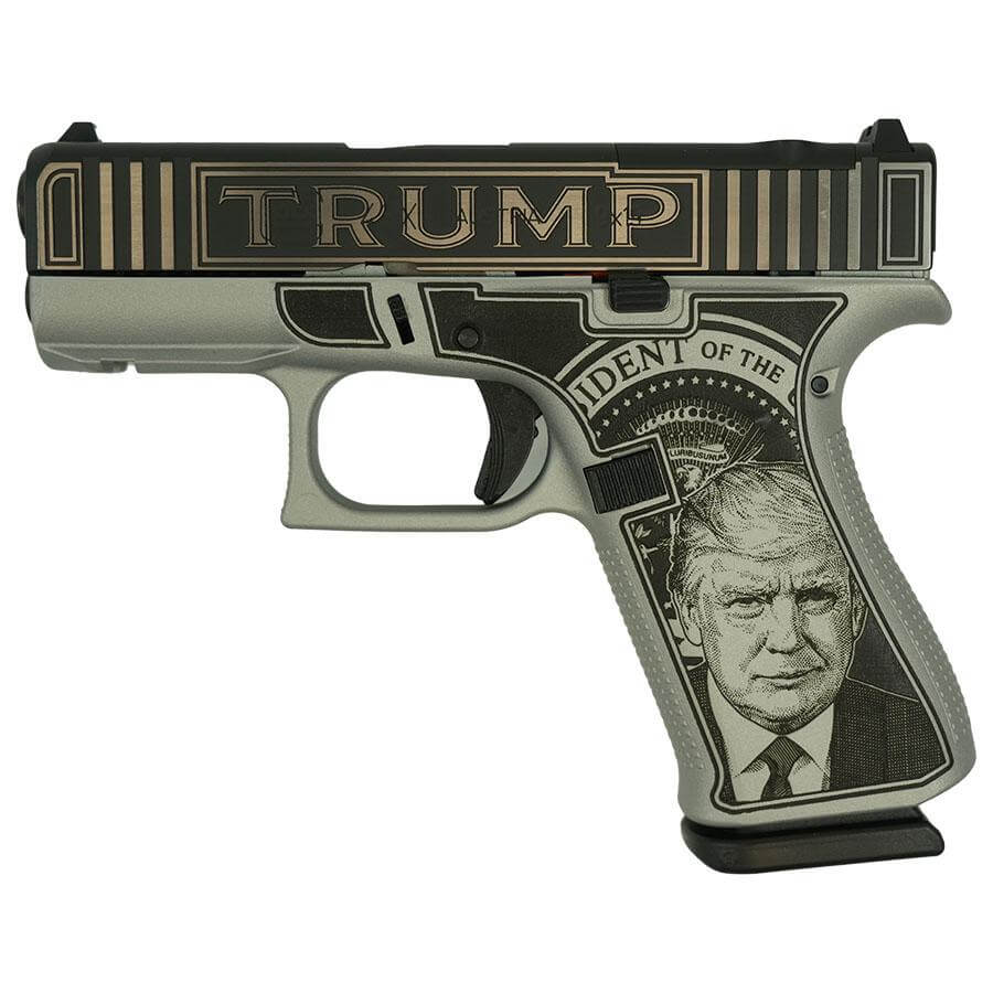 GLOCK 43X TRUMP “TAKE AMERICA BACK” SATIN ALUMINUM HANDGUN 9MM LUGER 10RD MAGAZINES(2) 3.4″ BARREL ACCESSORY RAIL USA MADE
