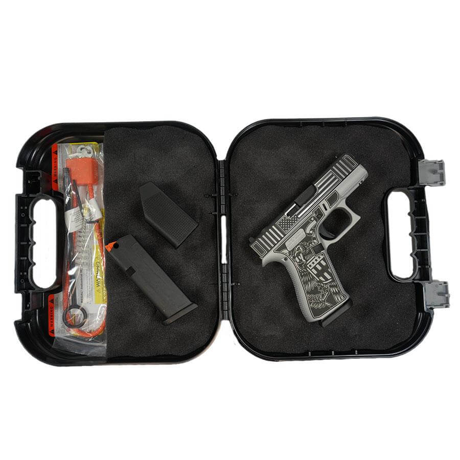 GLOCK 43X MOS “TRUMP TAKE AMERICA BACK” SATIN ALUM 9MM LUGER HANDGUN #4-GL43XMOSTTAB-PF