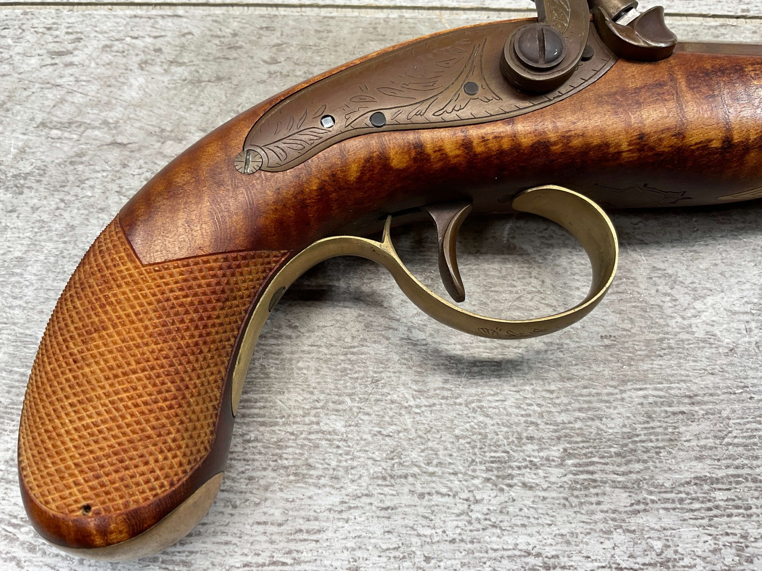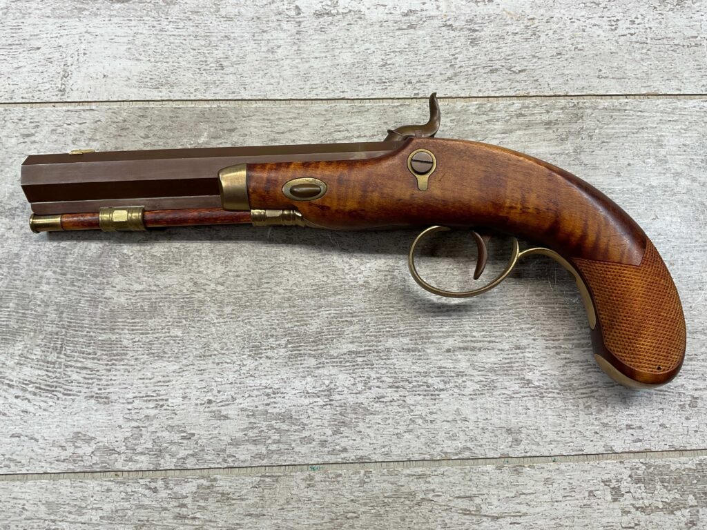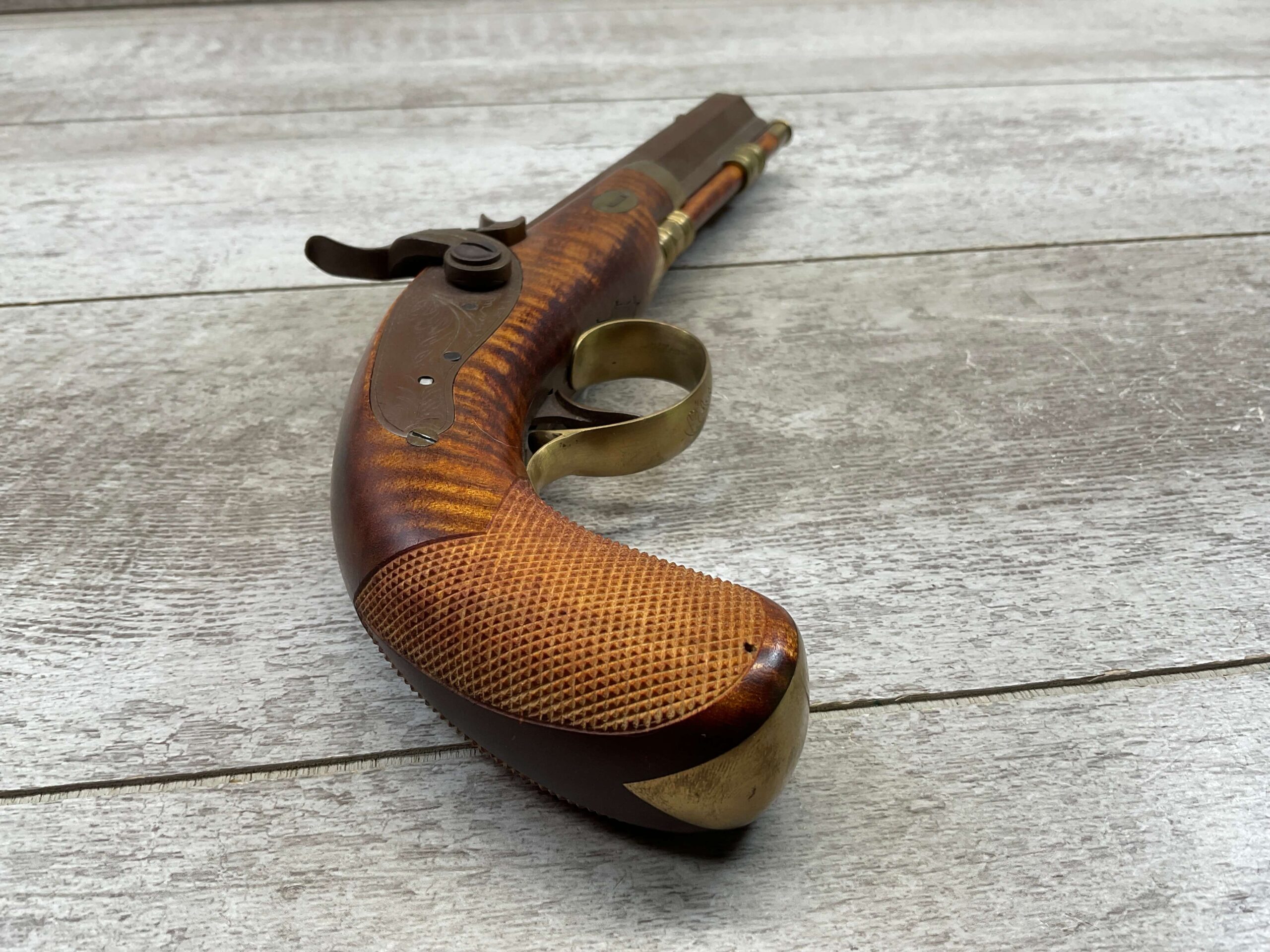 HOLMES BROTHER’S HANDMADE CUSTOM BLACK POWDER BELT PISTOL, ANTIQUE, NSN, HANSONS BOOK PG 138, 0.465″ BORE DIAMETER, 100% MADE BY BOB & DICK HOLMES, INCLUDES ALL PARTS AND BARREL MADE BY BOB, BEAUTIFUL CHECKERED WOOD, SEE PICTURES FOR CONDITION