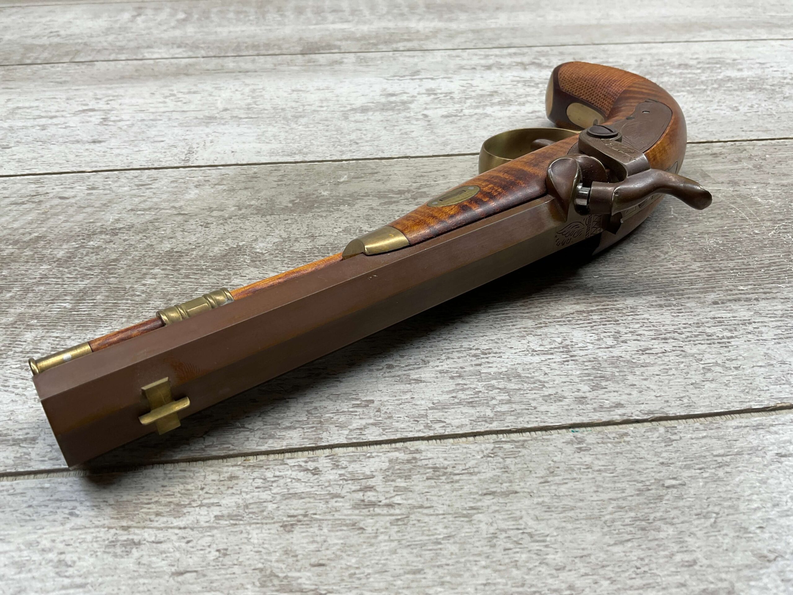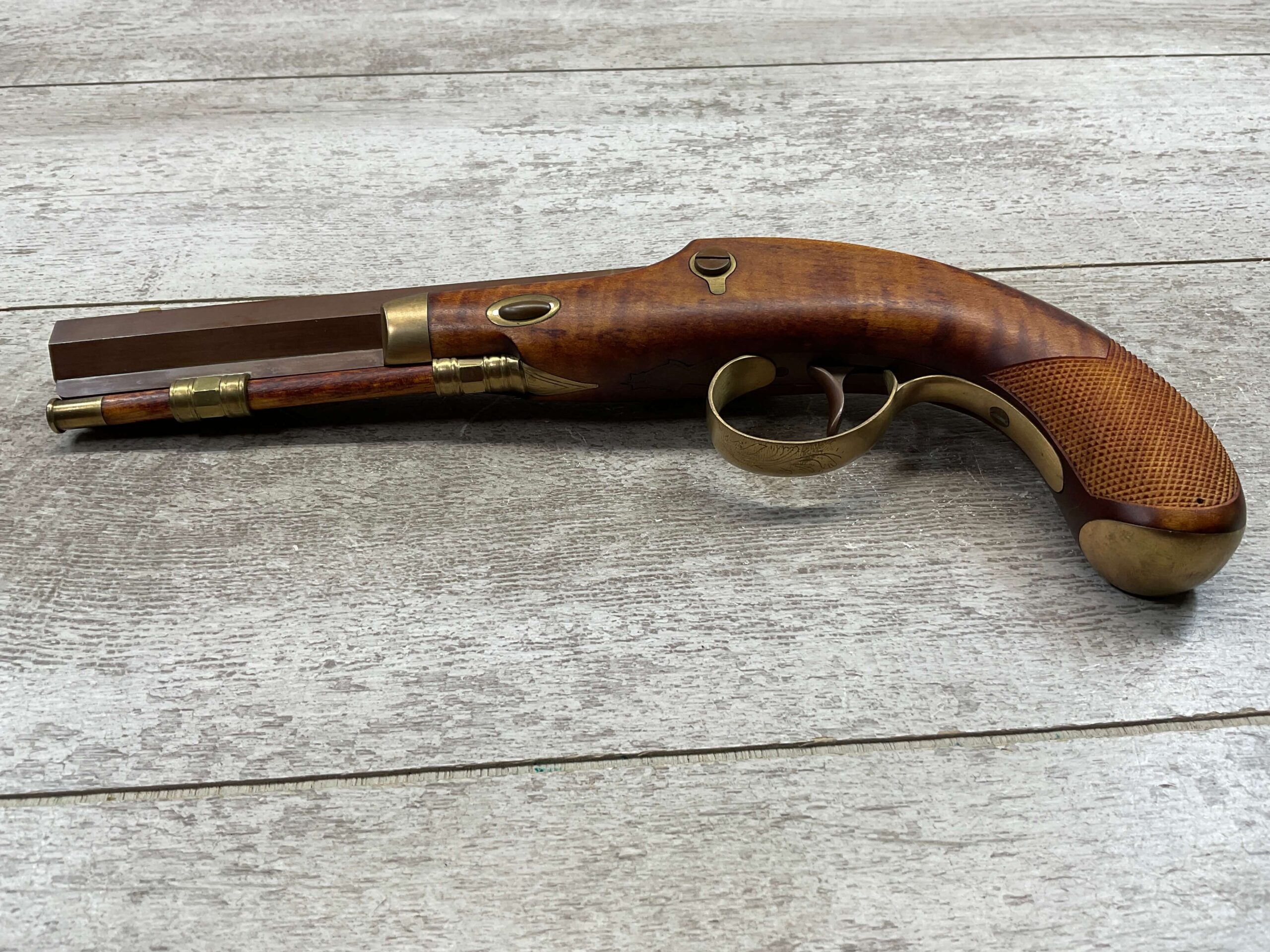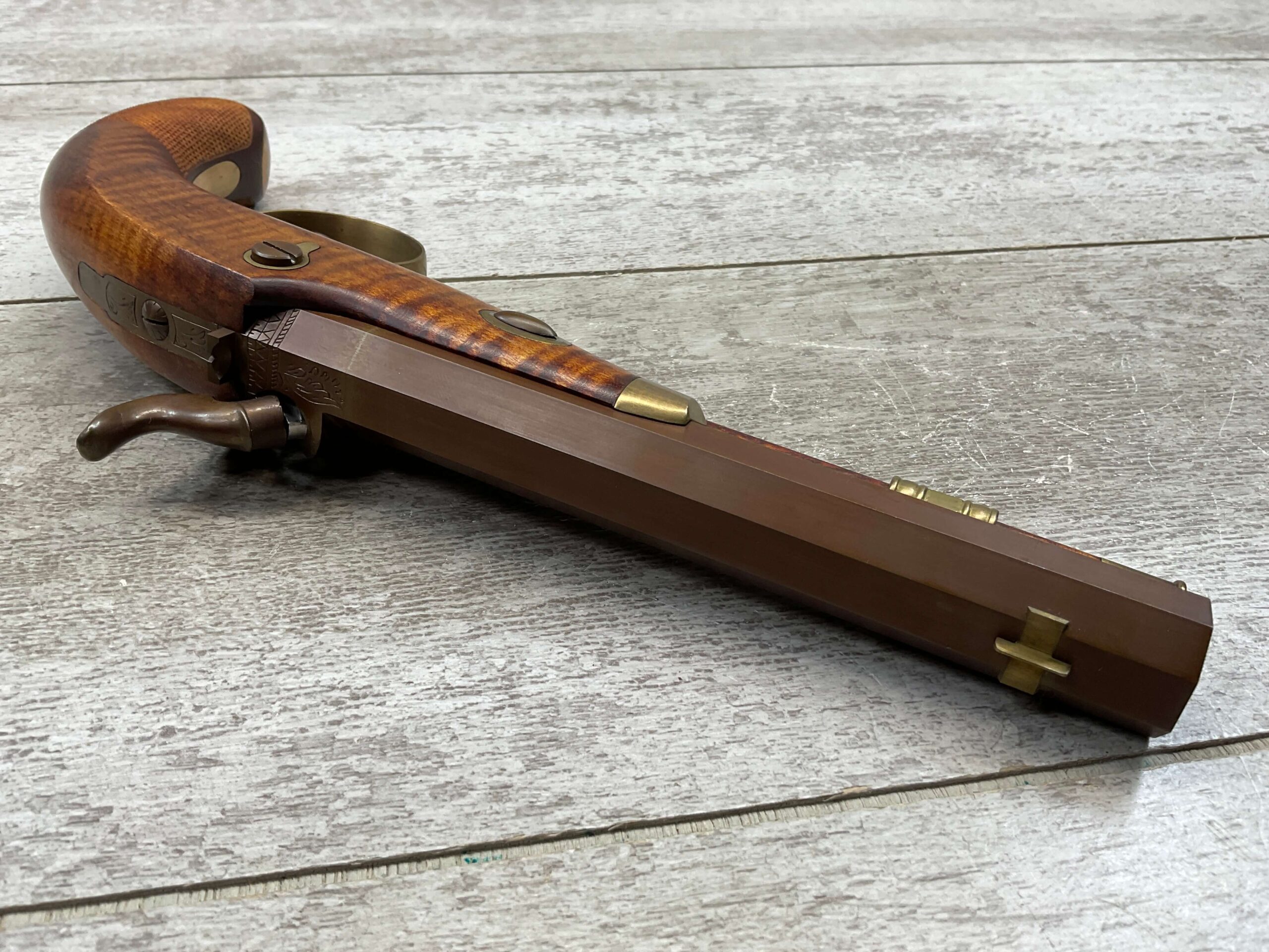 HOLMES BROTHER’S HANDMADE CUSTOM BLACK POWDER BELT PISTOL, ANTIQUE, NSN, HANSONS BOOK PG 138, 0.465″ BORE DIAMETER, 100% MADE BY BOB & DICK HOLMES, INCLUDES ALL PARTS AND BARREL MADE BY BOB, BEAUTIFUL CHECKERED WOOD, SEE PICTURES FOR CONDITION