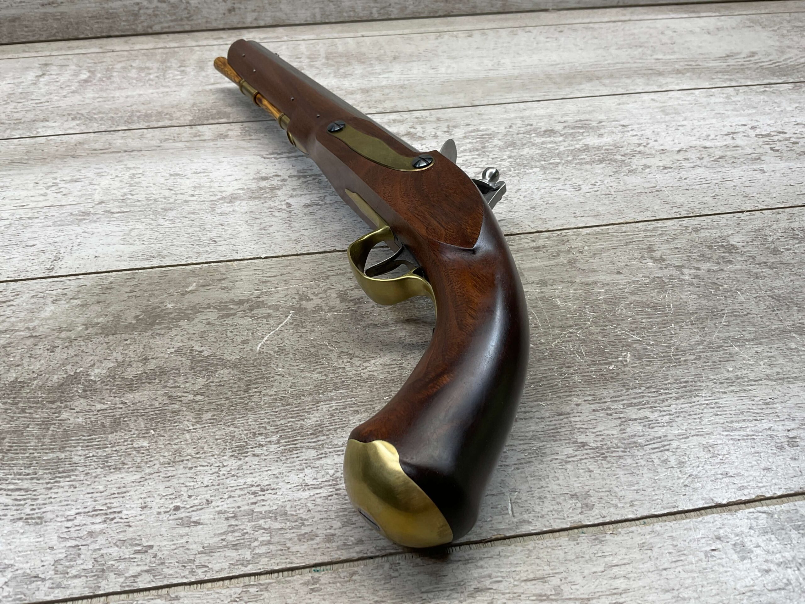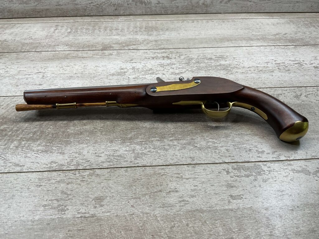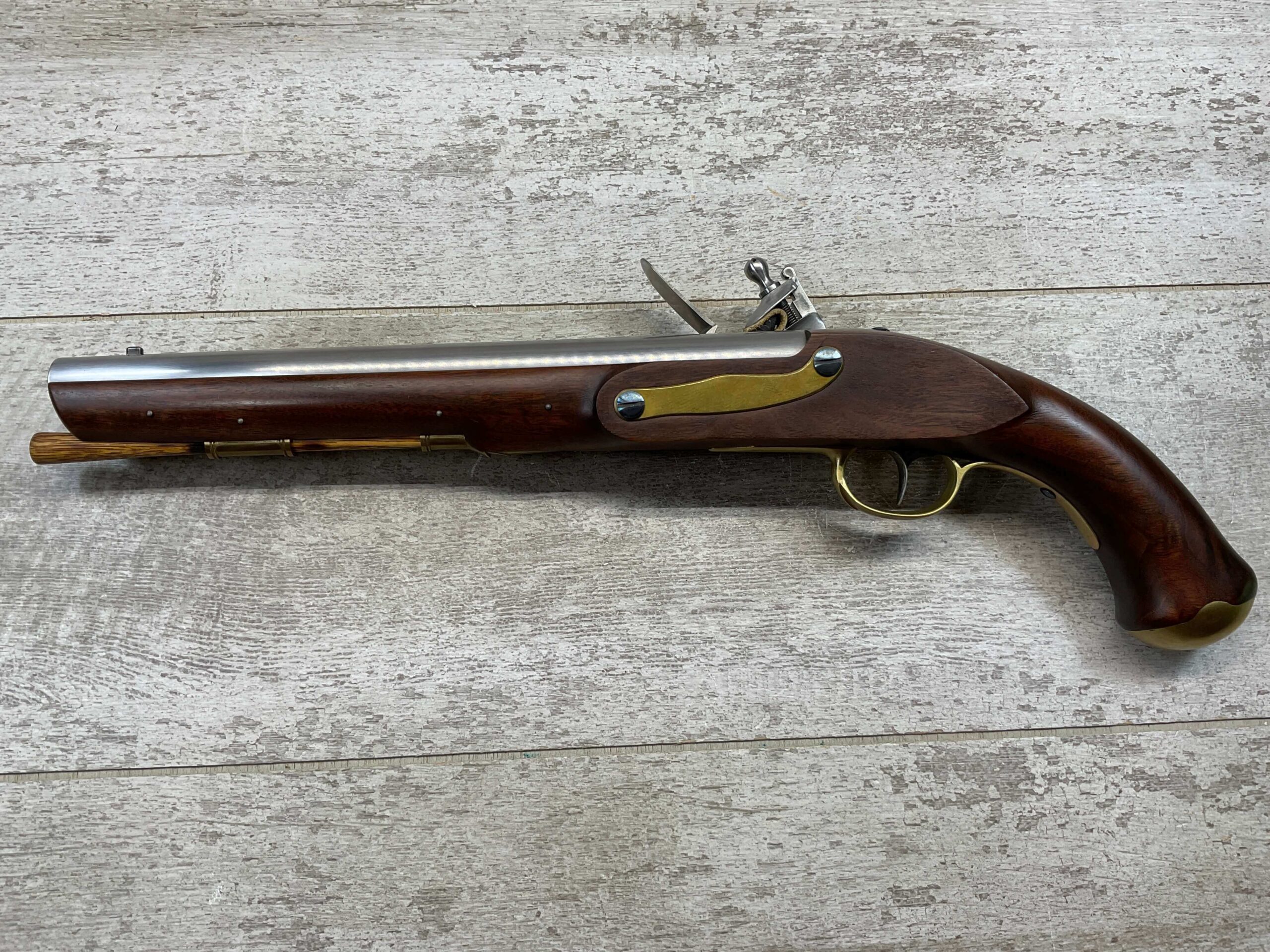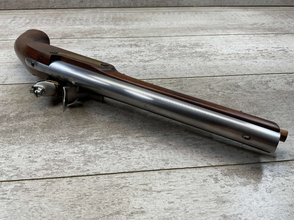 HOLMES BROTHER’S HANDMADE CUSTOM MARTIN FRYE COPY MILITARY TYPE PISTOL, ANTIQUE, NSN, 100% MADE BY DICK HOLMES, INCLUDING ALL PARTS, BEAUTIFUL WOOD, BRASS, STAINLESS FINISH, 0.475″ BORE DIAMETER, WOODEN PUSH ROD, SEE PICTURES FOR CONDITION, ONE OF A KIND!!