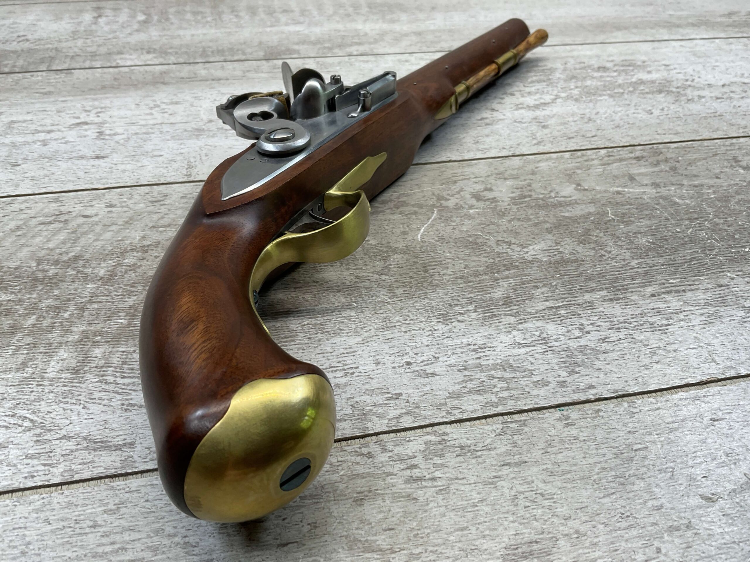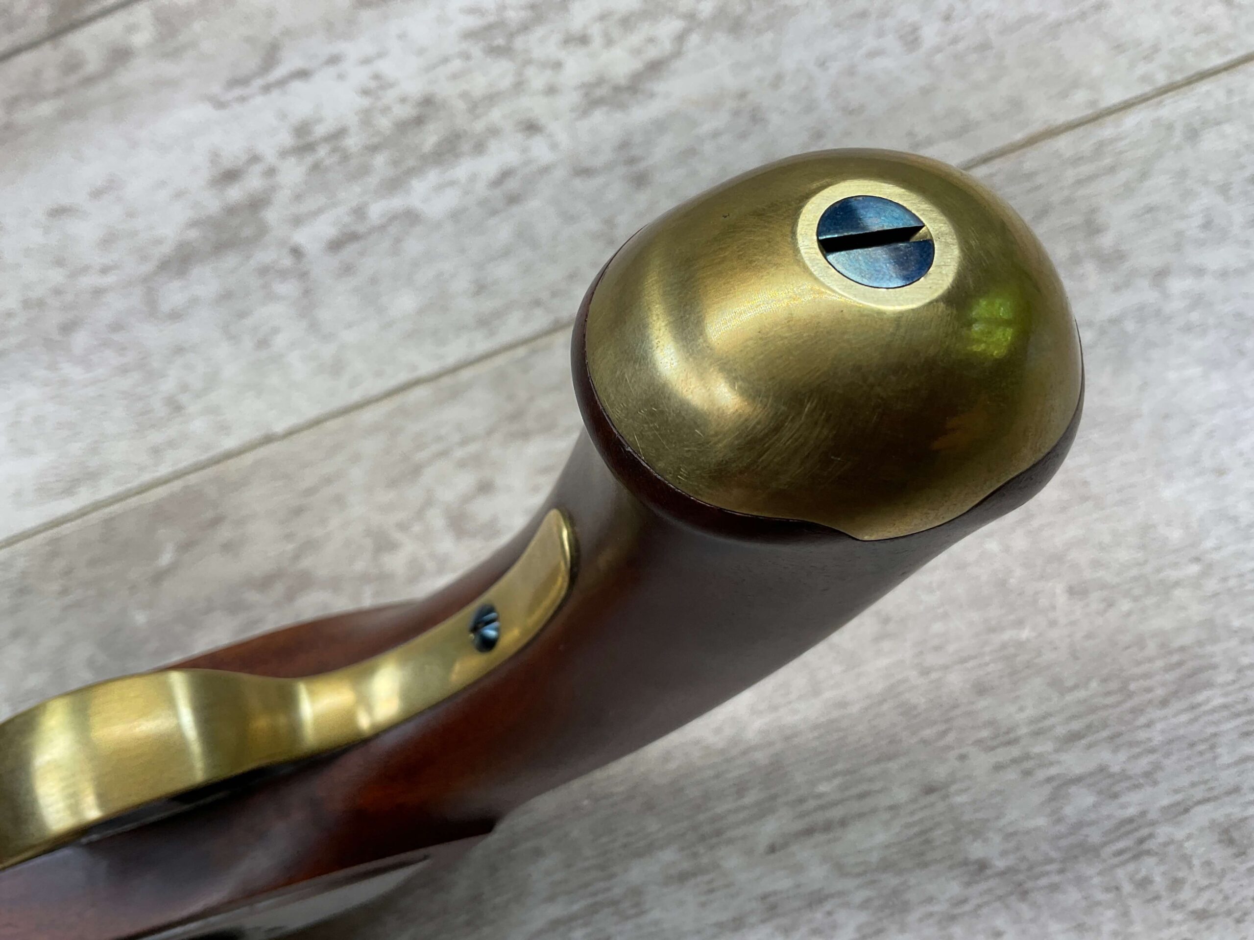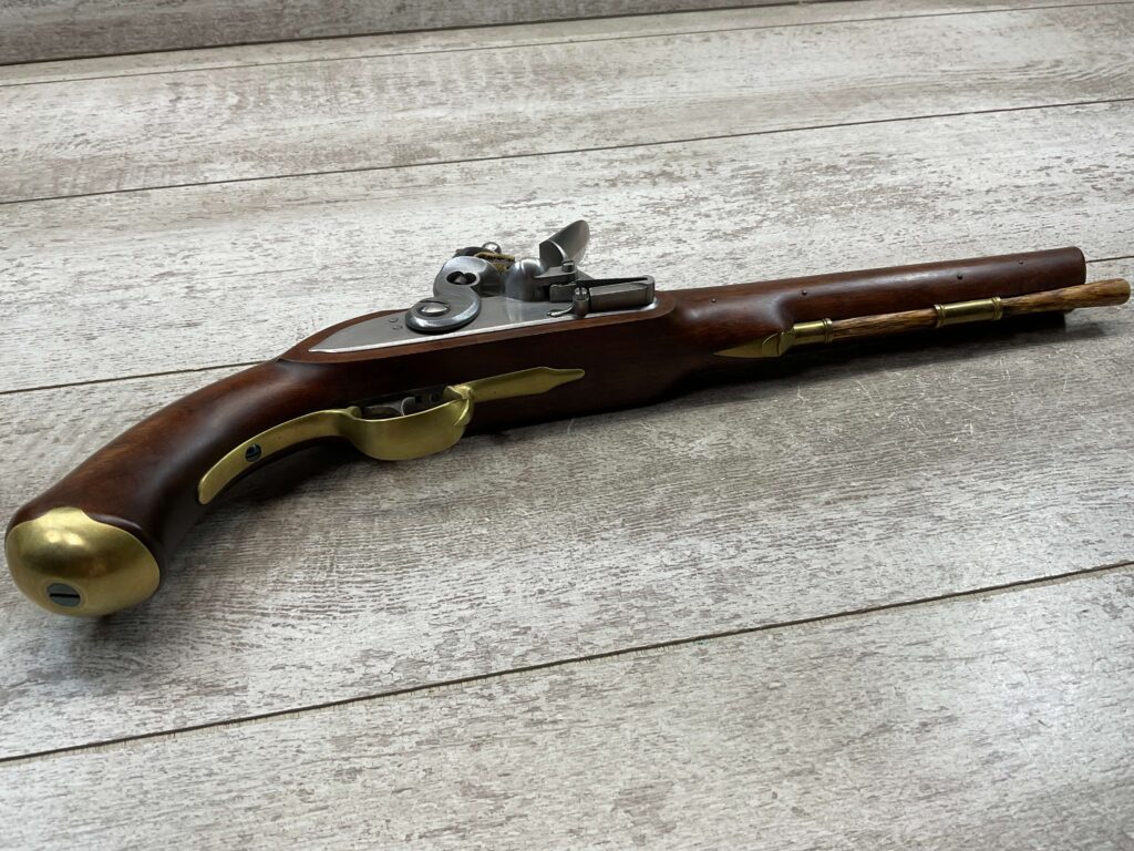 HOLMES BROTHER’S HANDMADE CUSTOM MARTIN FRYE COPY MILITARY TYPE PISTOL, ANTIQUE, NSN, 100% MADE BY DICK HOLMES, INCLUDING ALL PARTS, BEAUTIFUL WOOD, BRASS, STAINLESS FINISH, 0.475″ BORE DIAMETER, WOODEN PUSH ROD, SEE PICTURES FOR CONDITION, ONE OF A KIND!!