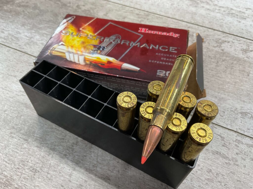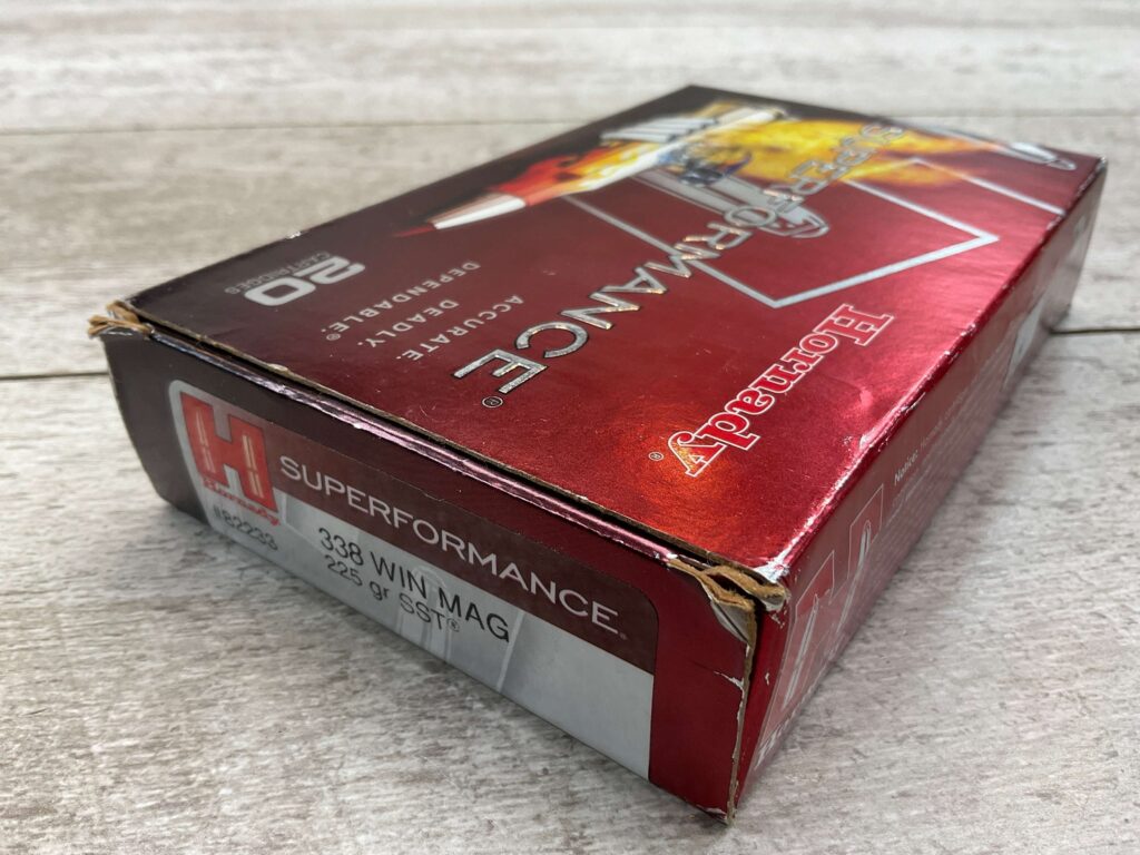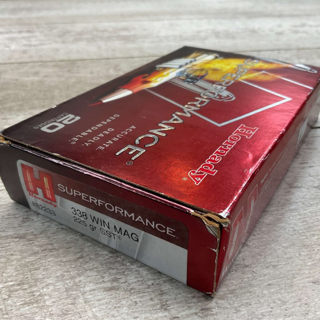 HORNADY SUPPER FORMANCE 338 WIN MAG 225 GR SST, 8 CARTRIDGES IN BOX