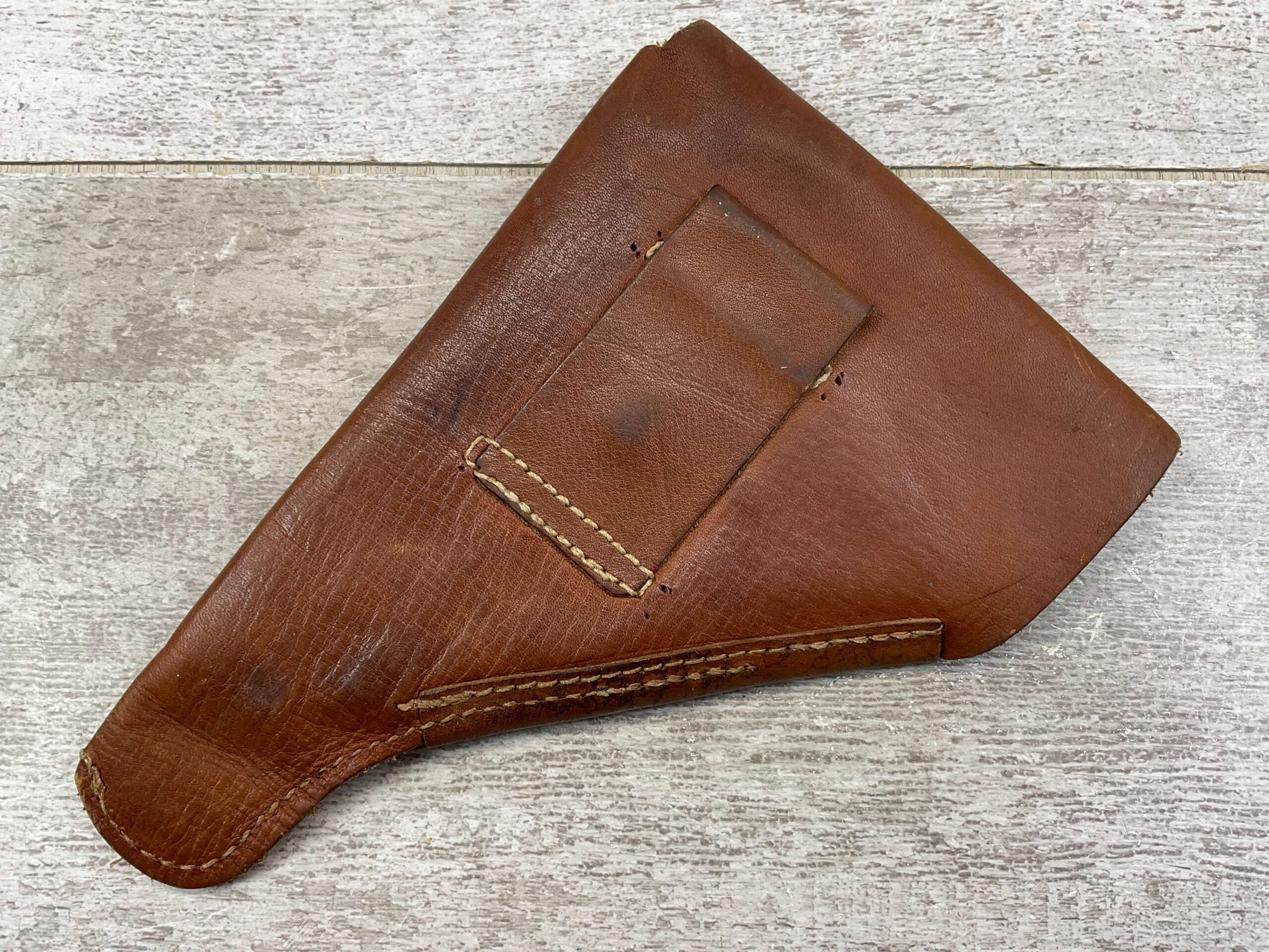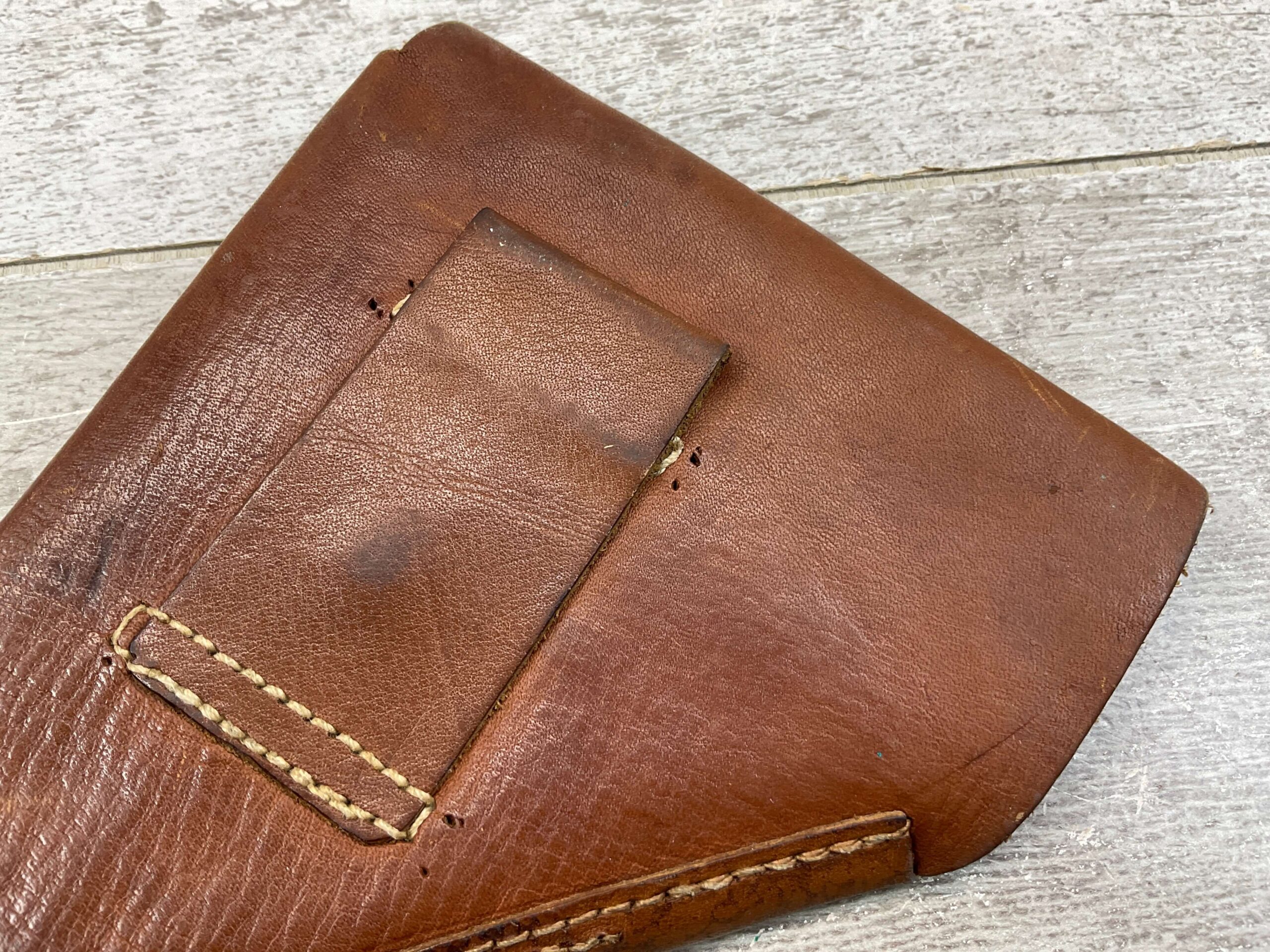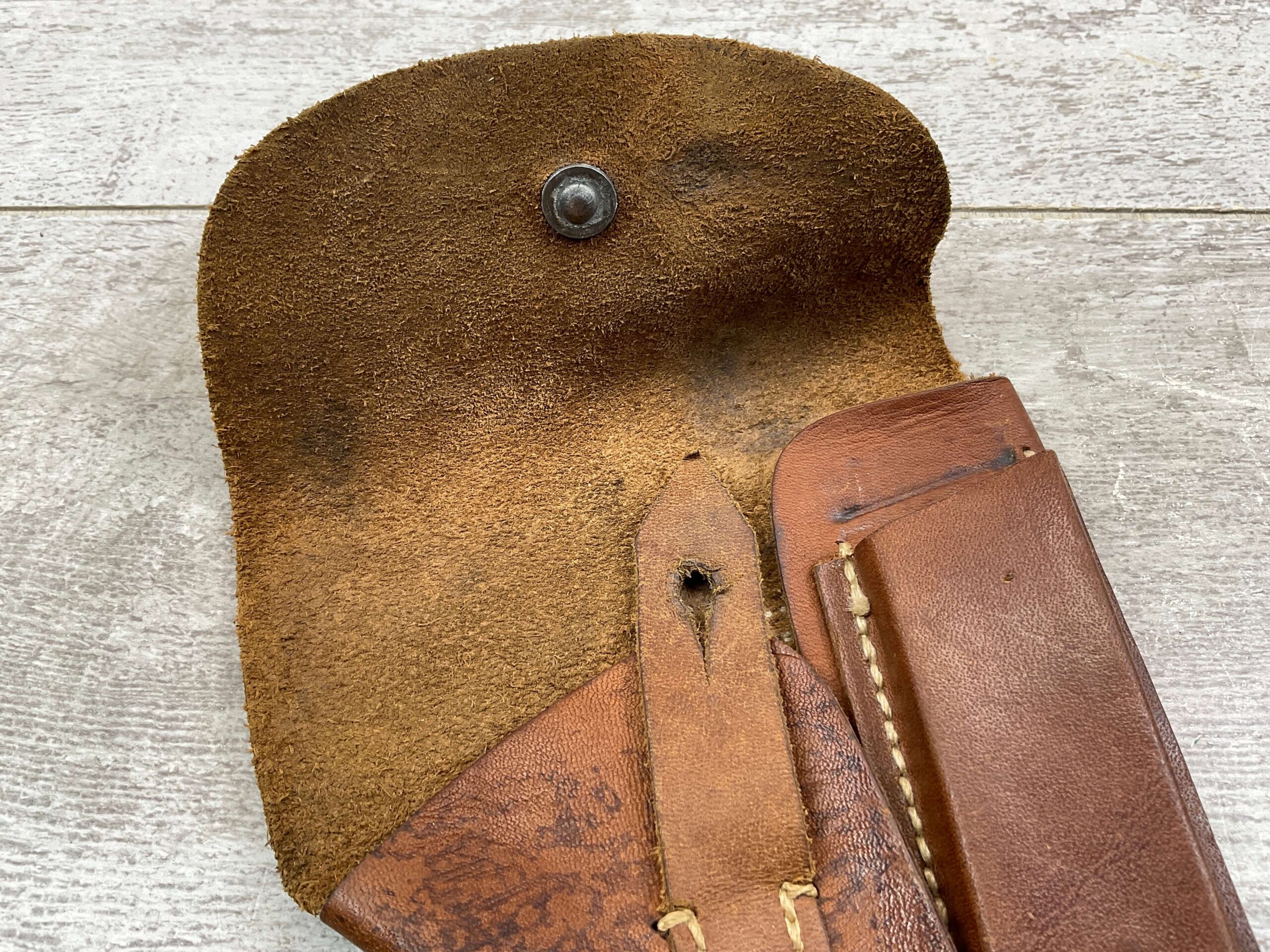 SKU#557 HSY TYPE UNMARKED MINTY BROWN GERMAN POCKET PISTOL HOLSTER, CARRIED SAUER 38H, EXC STITCHING, SPARE MAG POUCH