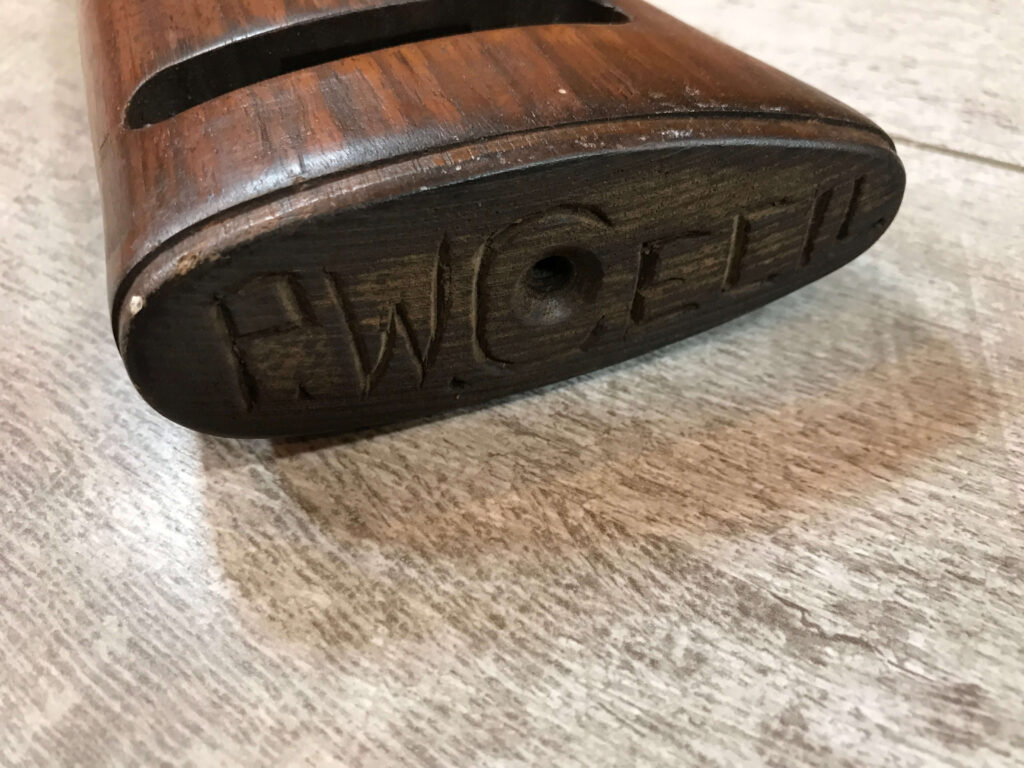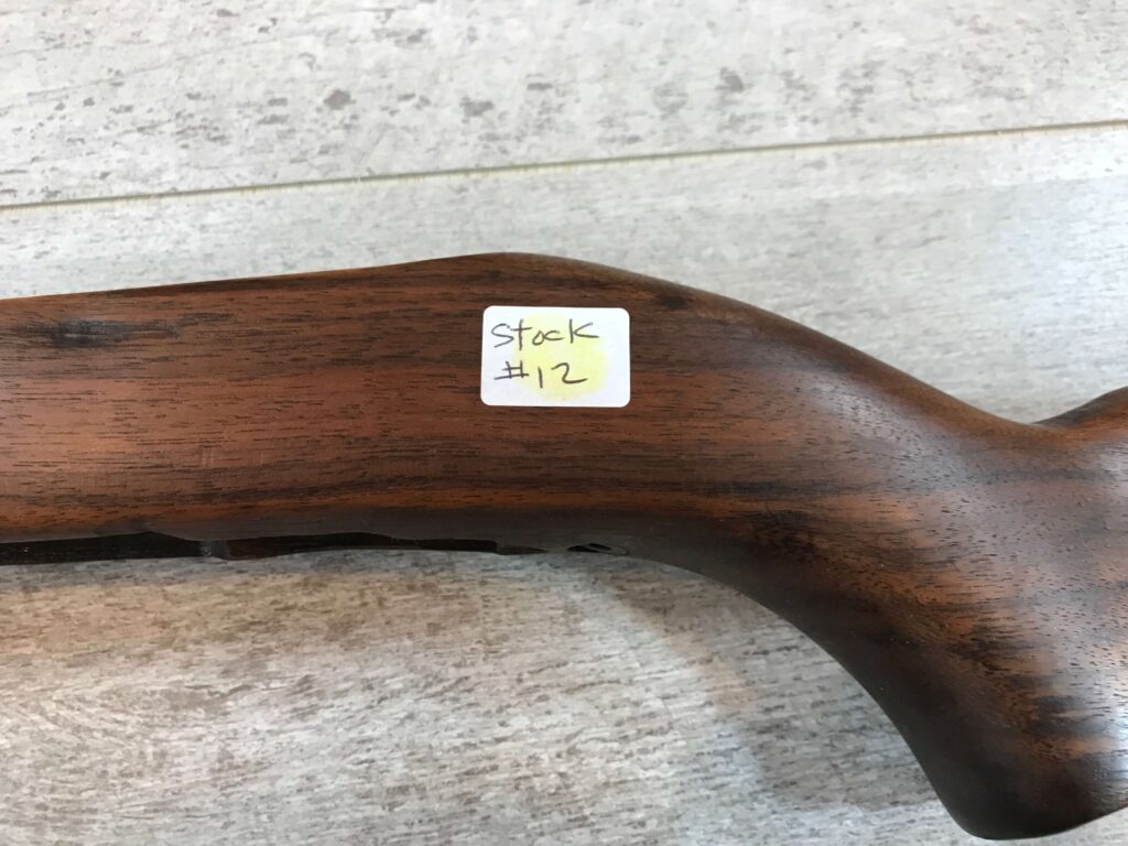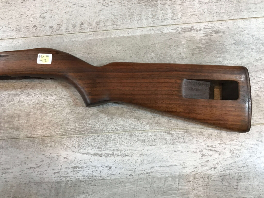 SKU#624 M1 CARBINE STOCK, STOCK#12, OVAL-CUT HI WOOD, INLAND, FAINT CIRCLE “P” CARTOUCHE ON PISTOL GRIP, “IO” INSIDE SLING WELL, NO RECOIL PLATE, NO BUTT PLATE, 98%