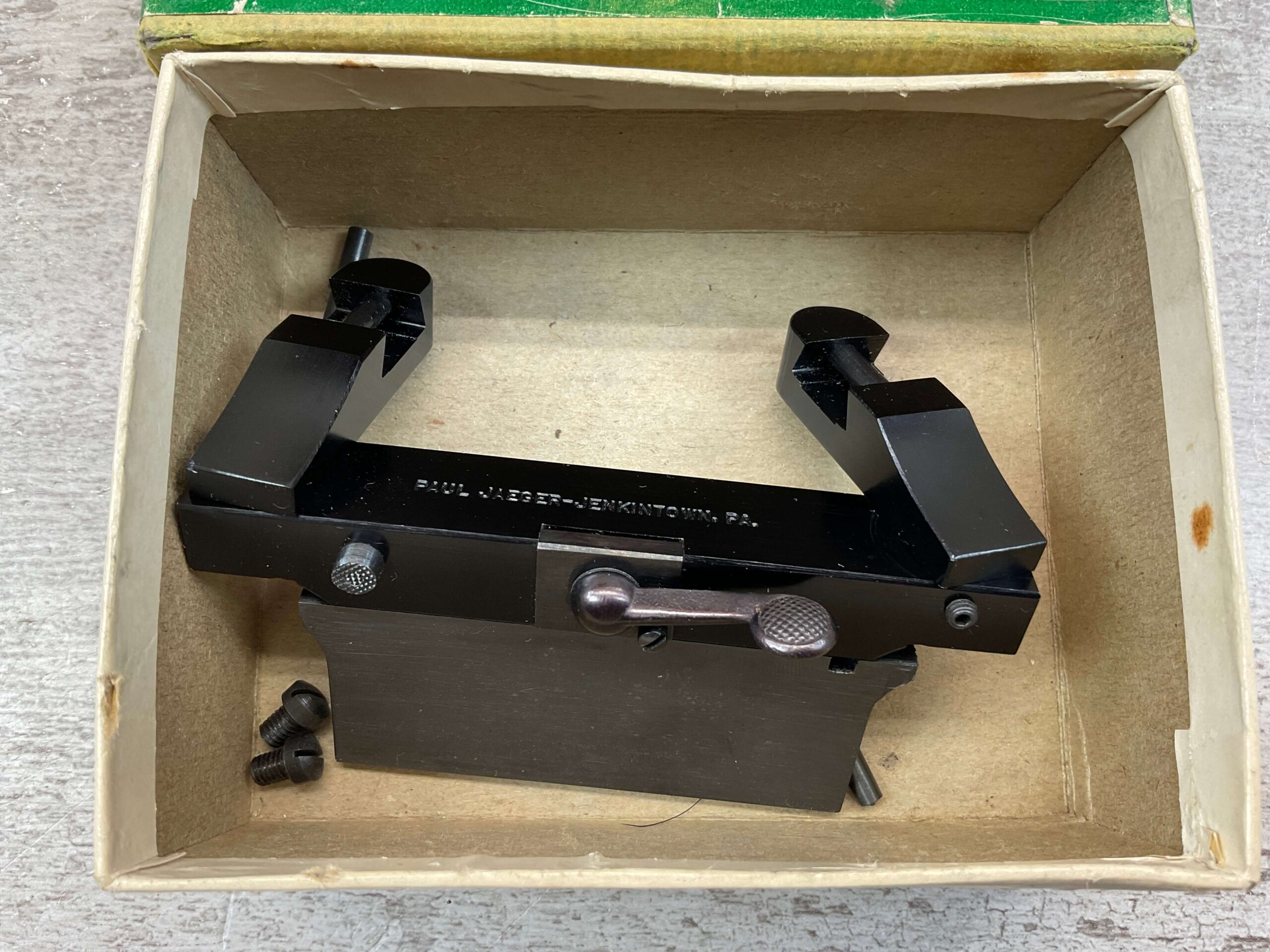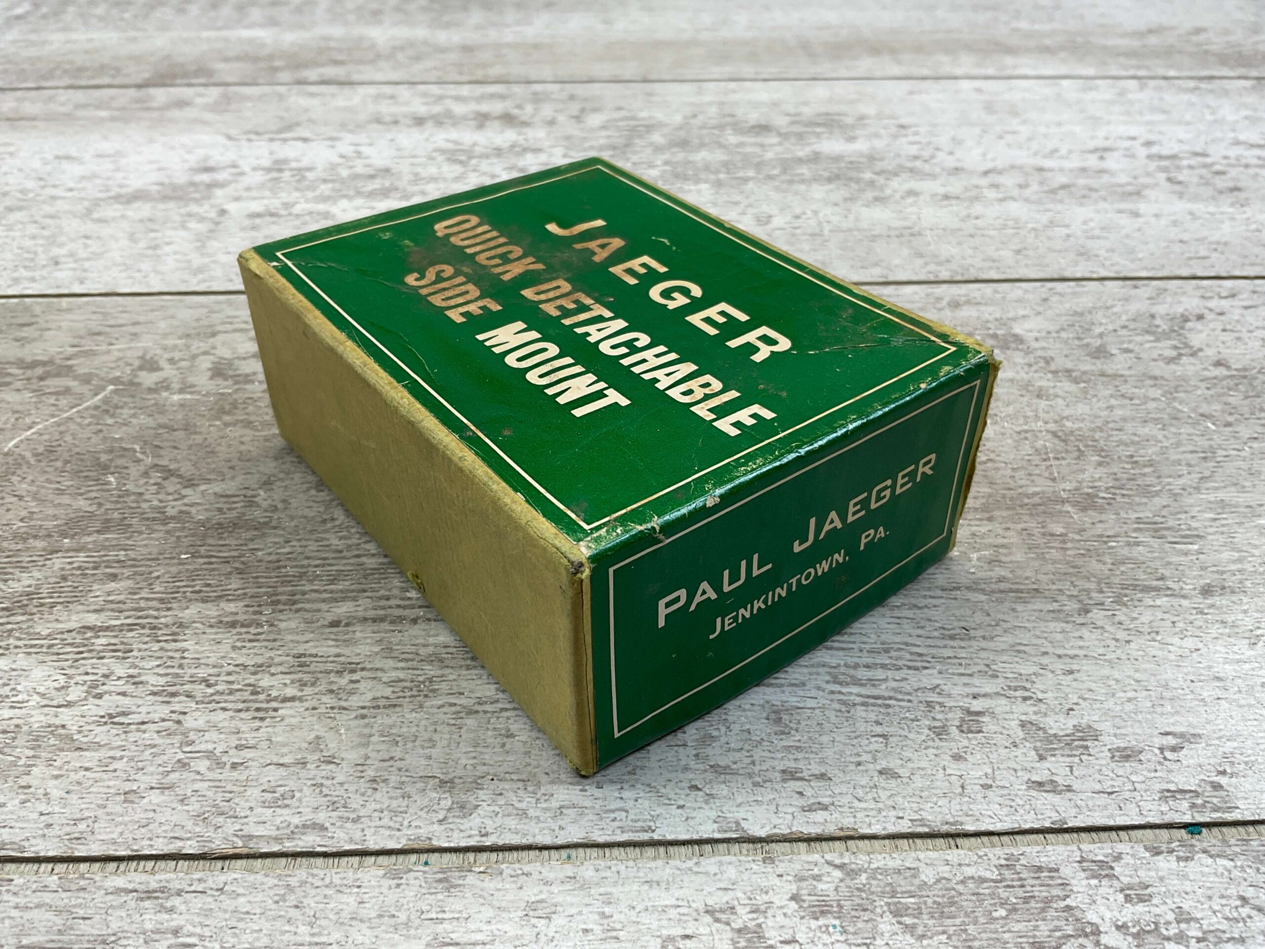 JAEGER QUICK DETACHABLE SIDE MOUNT, MOD. 5, FOR MANN/SCHOEN RIFLES, VINTAGE, RARE, RAIL SCOPE, DOES NOT INCLUDE RINGS, FOR MANN/SCHOEN RIFLES, IN ORIGINAL BOX