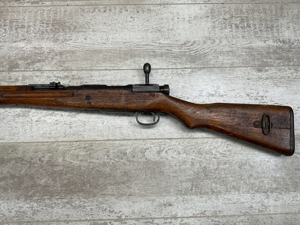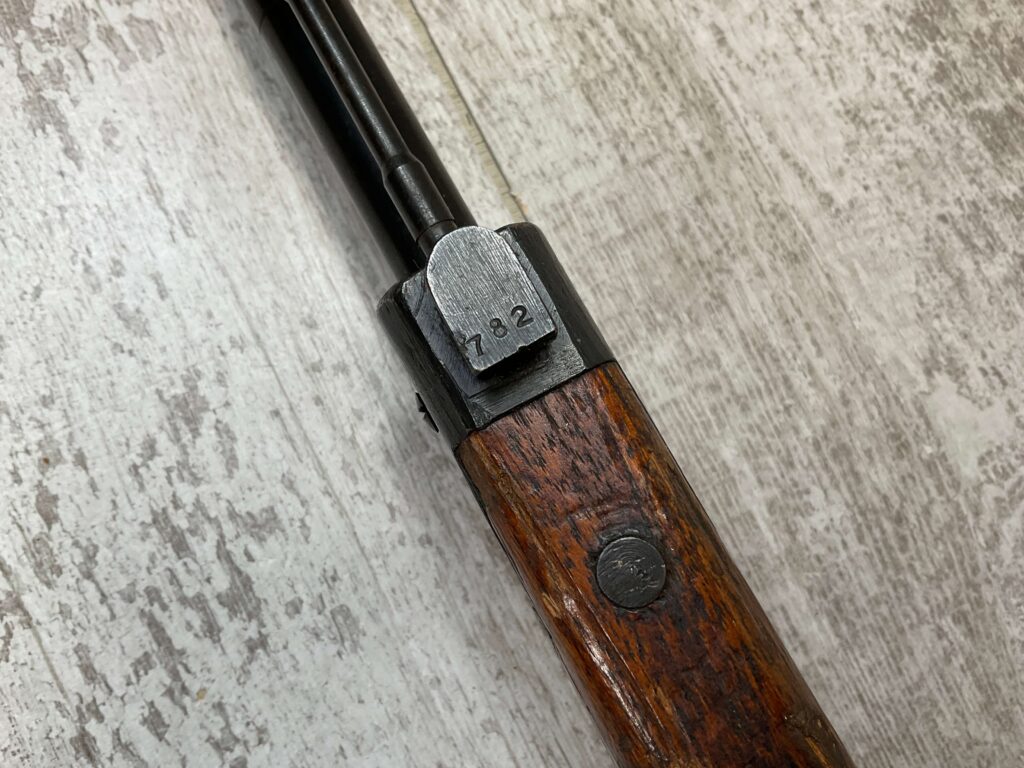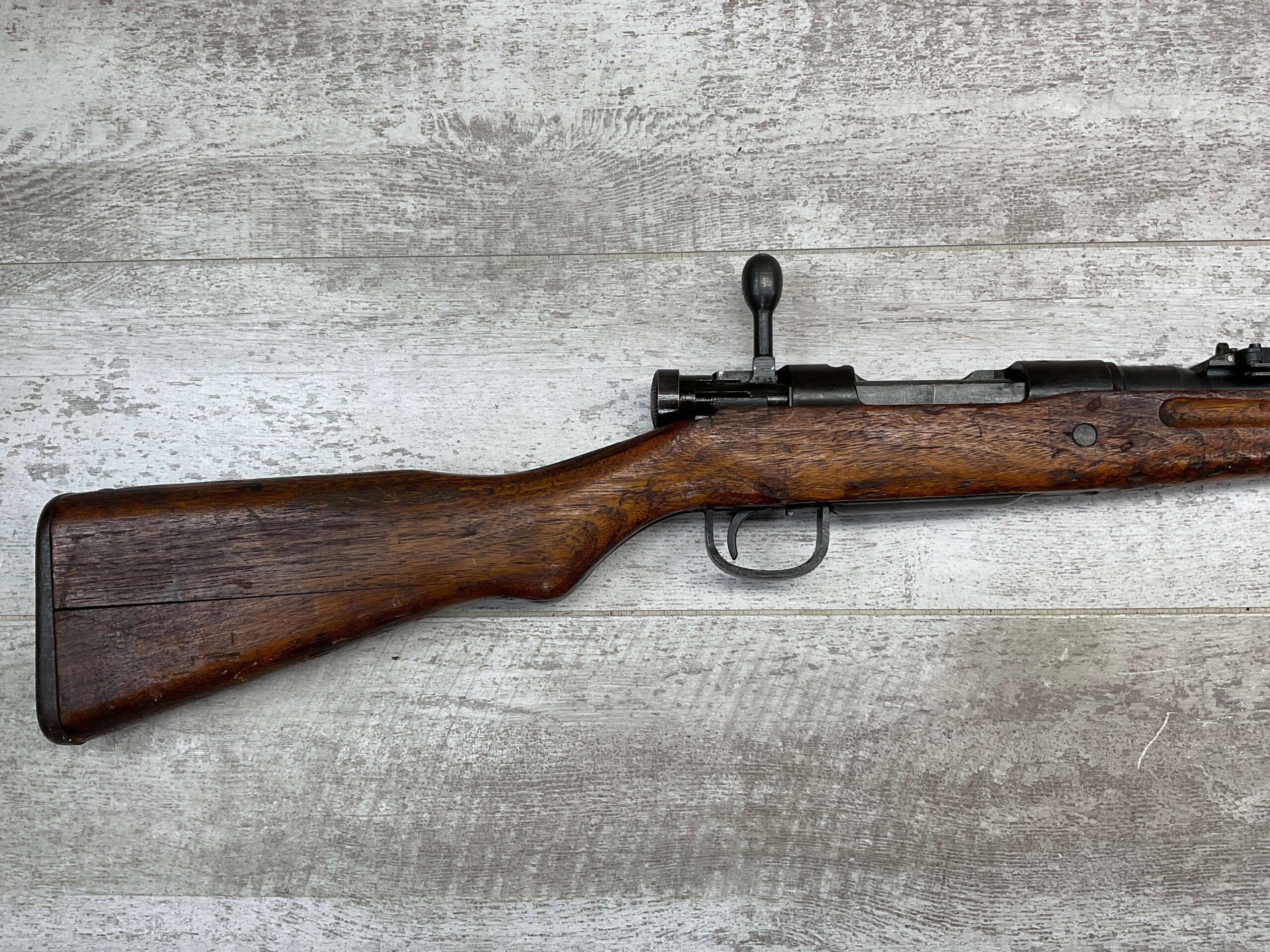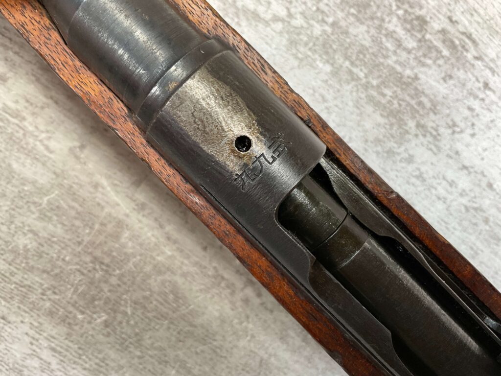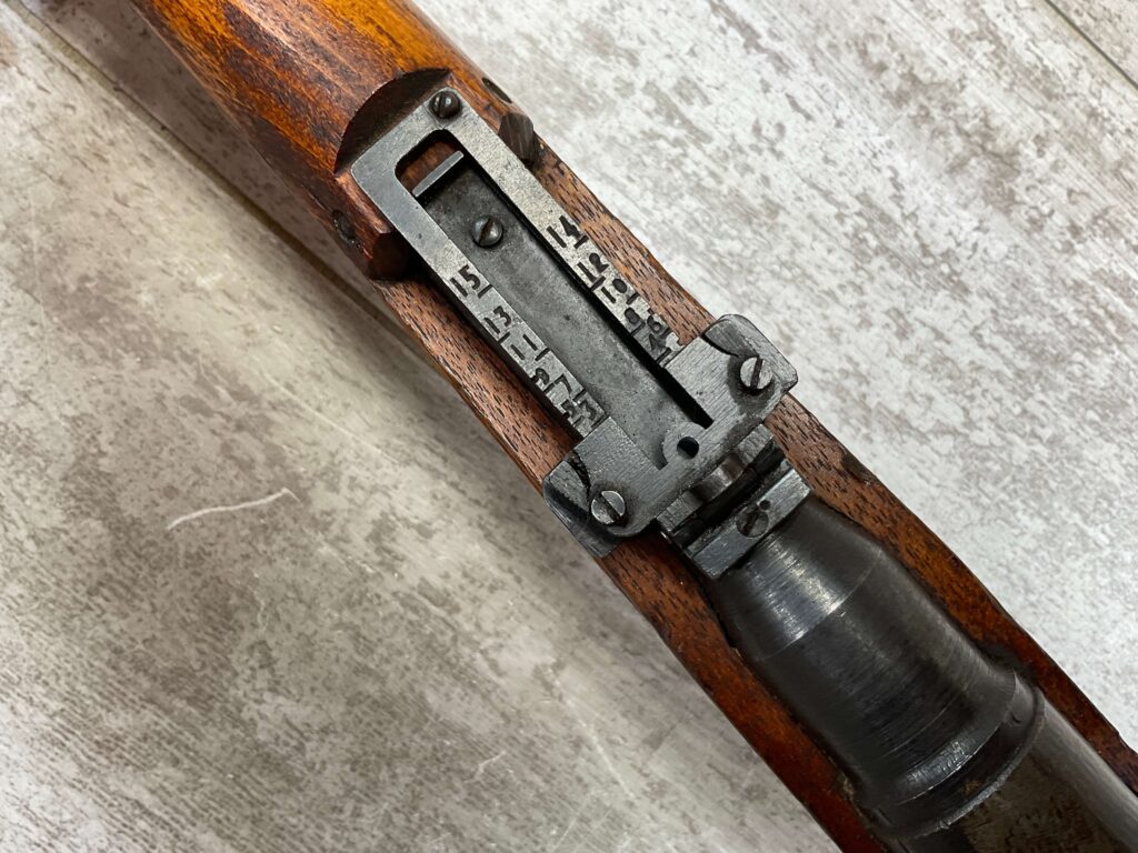 JAPANESE TYPE 99 NAGOYA 7.7X58 BOLT ACTION RIFLE #2782, MATCHING BOLT, SERIES 6, 7.7MM, 90% BLUE, GOOD STOCK W/ TYPICAL DINGS & NICKS FROM AGE/USE, CLEANING ROD, ORIGINAL FINISH, GROUND MUM, AIRCRAFT SIGHTS MISSING “WINGS”, METAL BUTT PLATE, 85% OVERALL