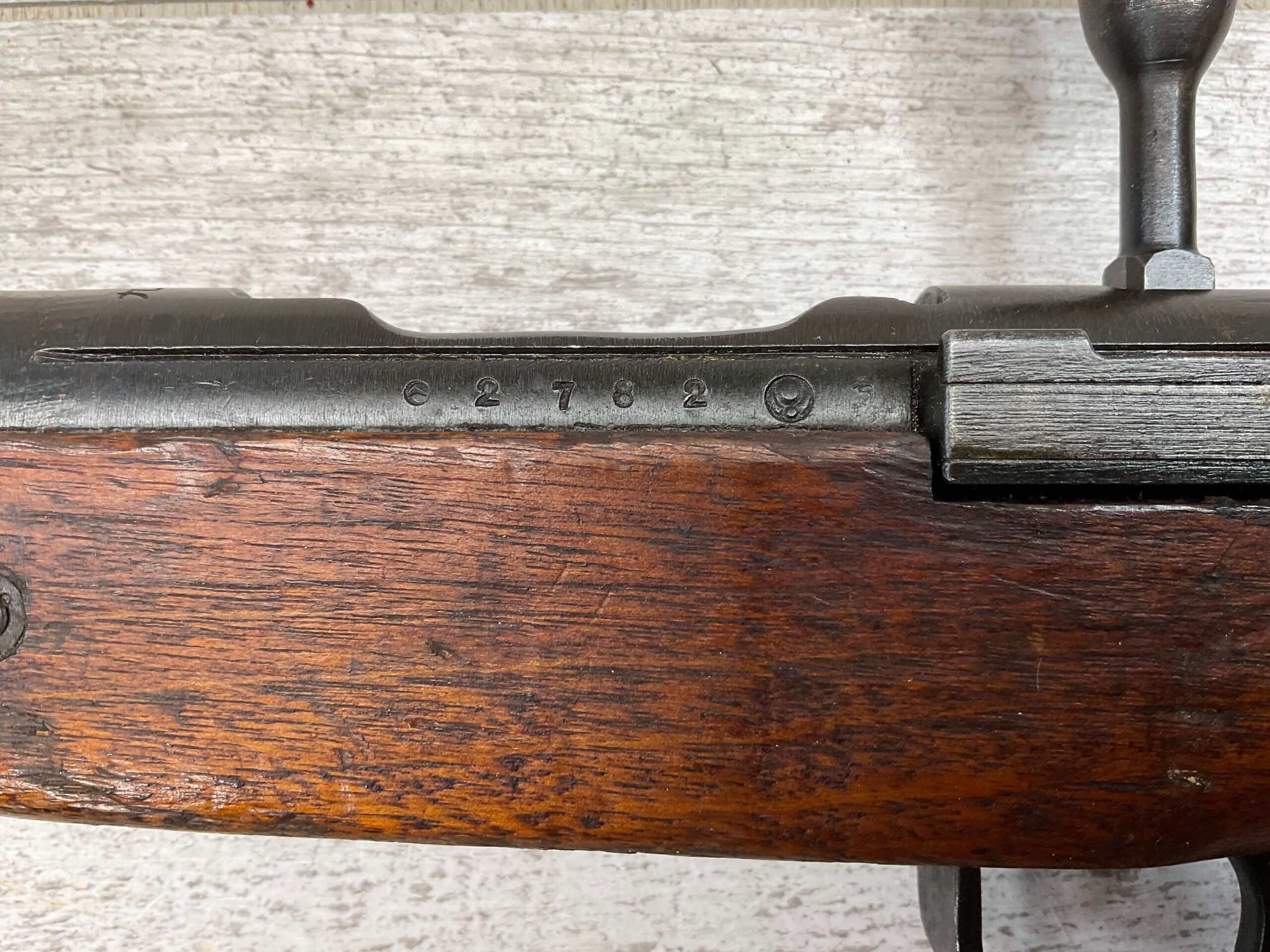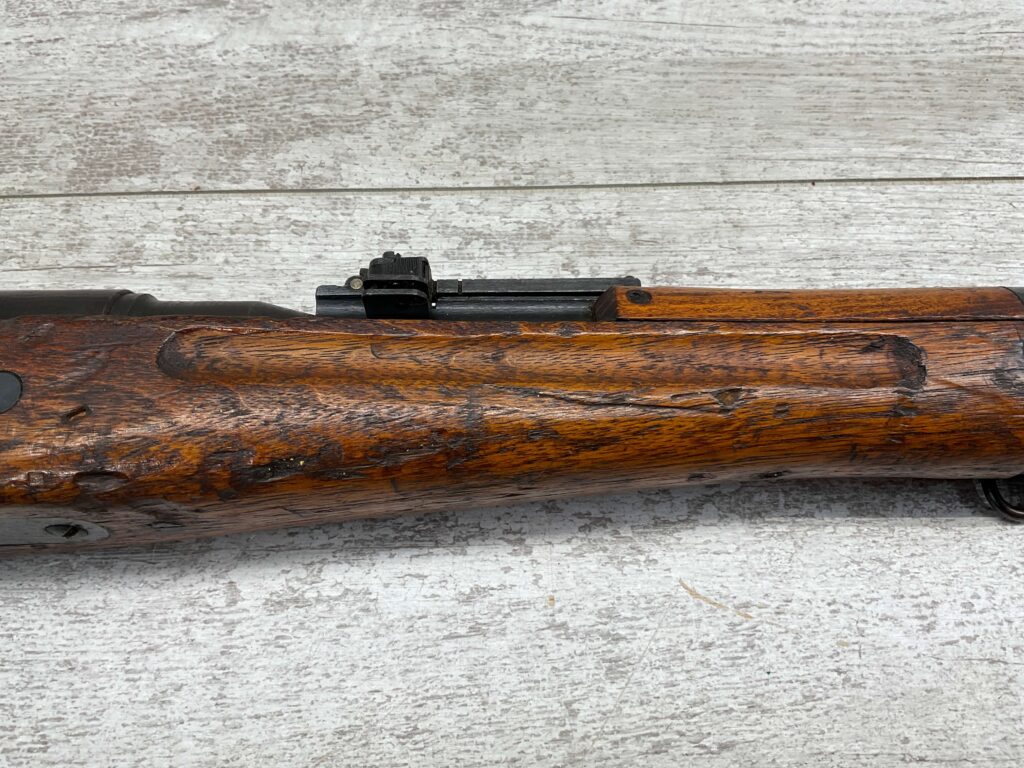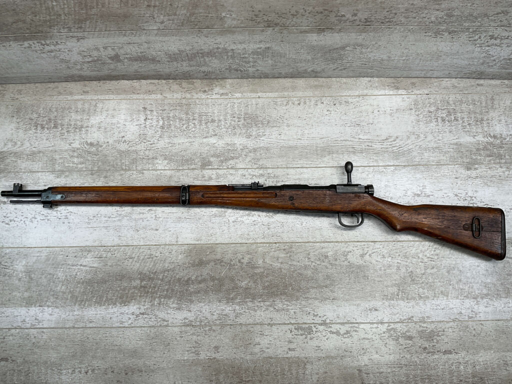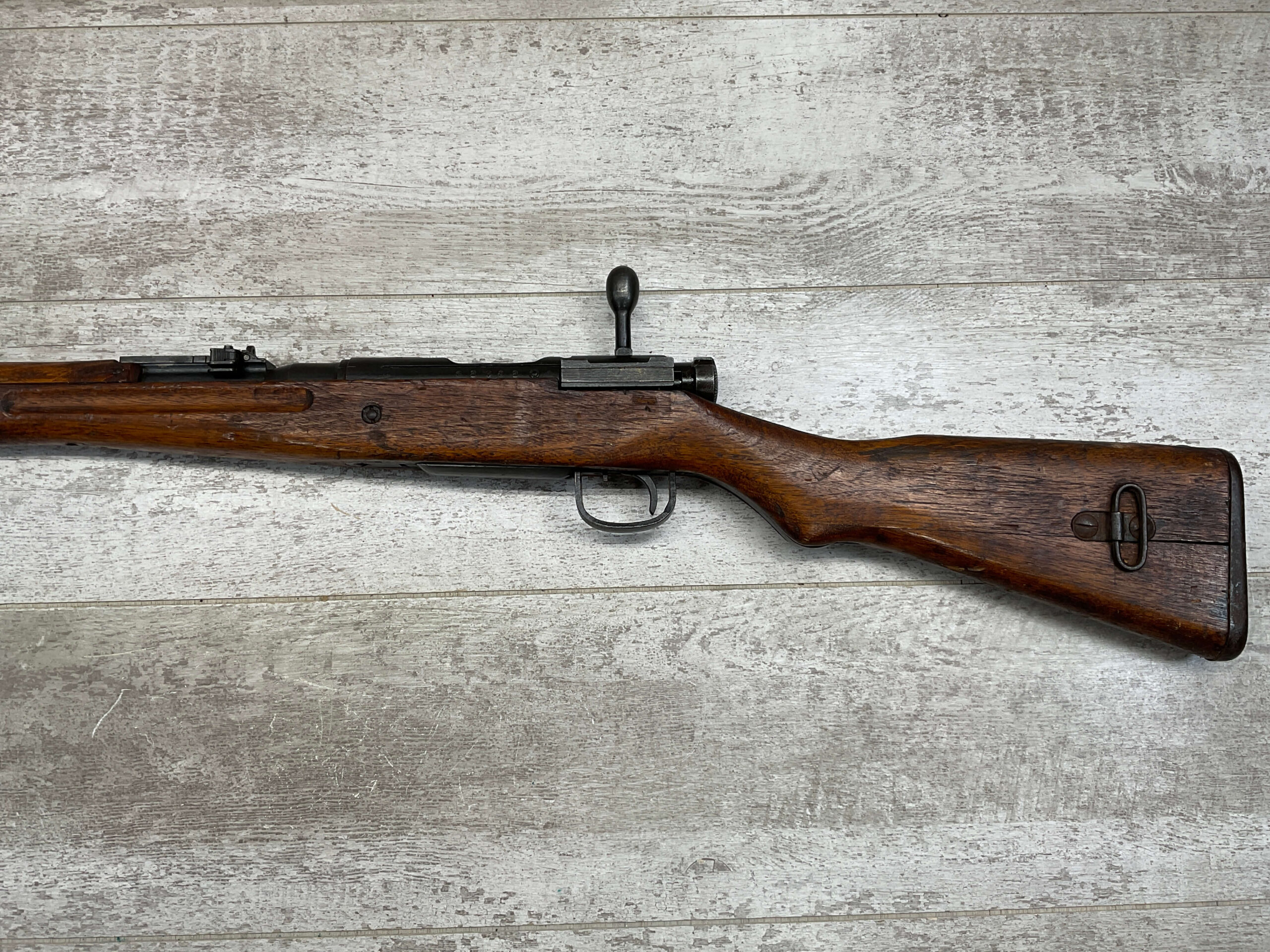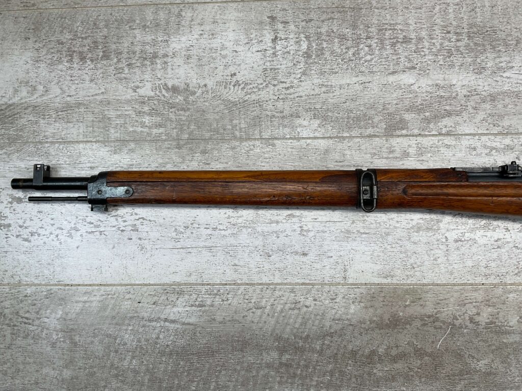 JAPANESE TYPE 99 NAGOYA 7.7X58 BOLT ACTION RIFLE #2782, MATCHING BOLT, SERIES 6, 7.7MM, 90% BLUE, GOOD STOCK W/ TYPICAL DINGS & NICKS FROM AGE/USE, CLEANING ROD, ORIGINAL FINISH, GROUND MUM, AIRCRAFT SIGHTS MISSING “WINGS”, METAL BUTT PLATE, 85% OVERALL