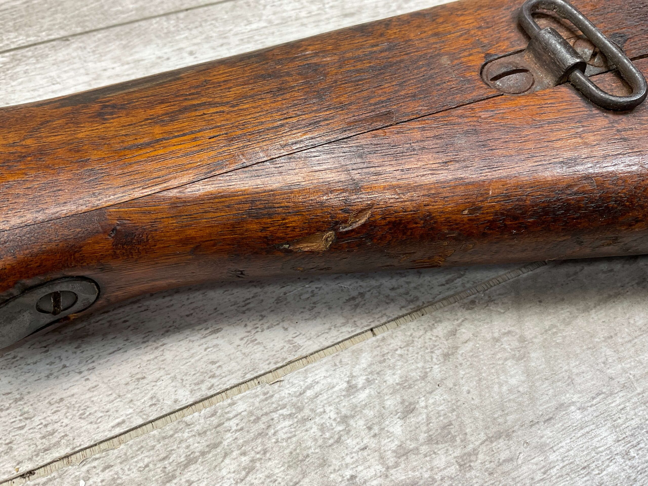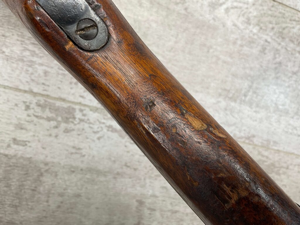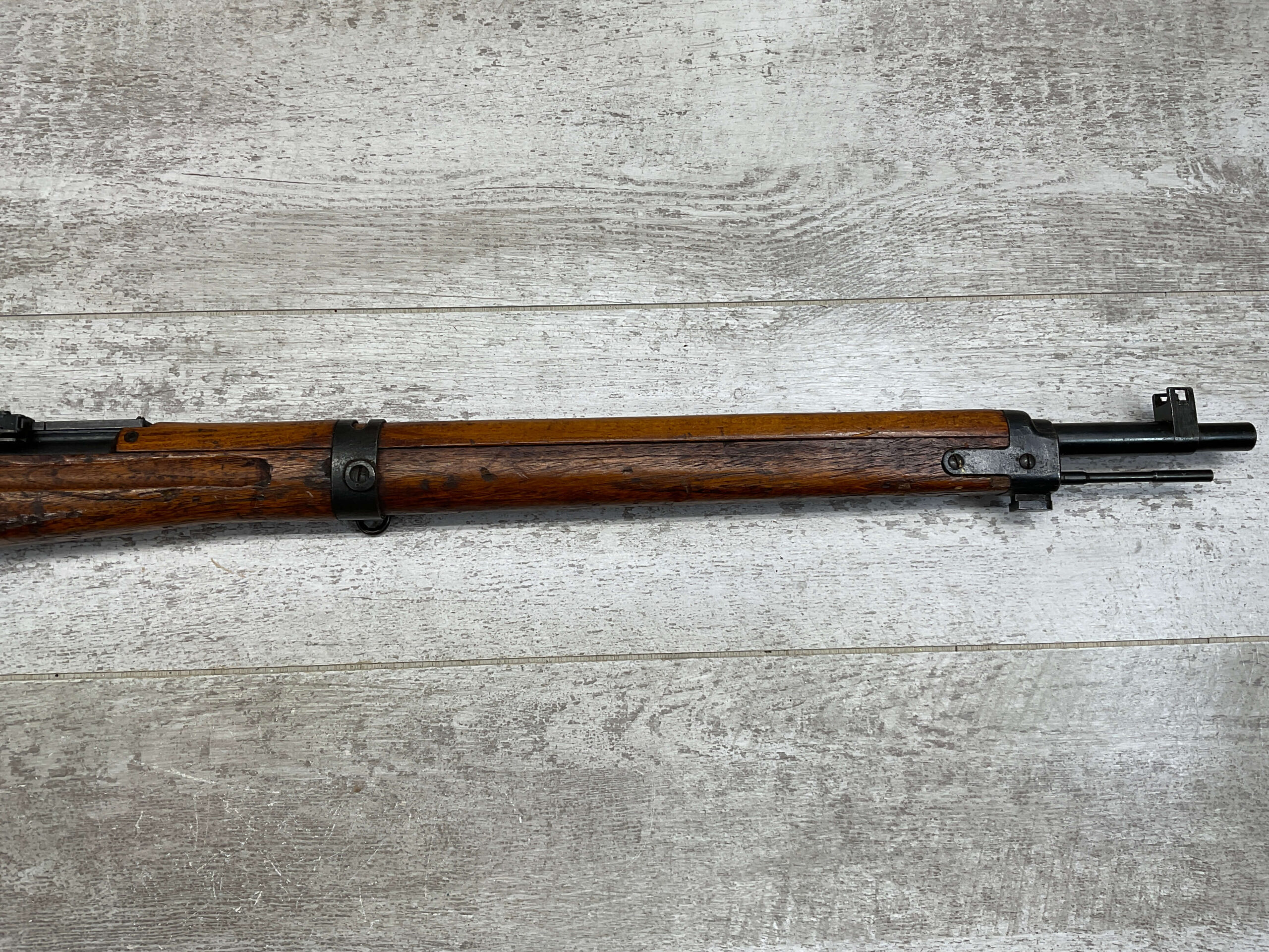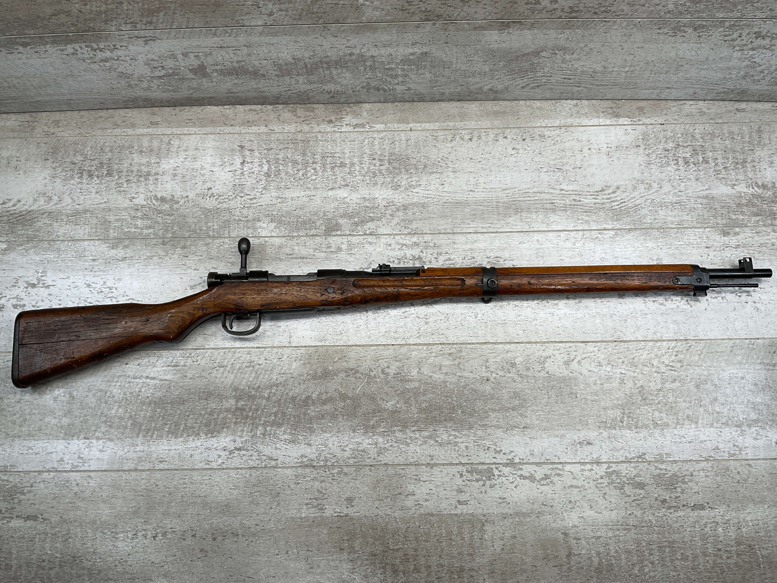 JAPANESE TYPE 99 NAGOYA 7.7X58 BOLT ACTION RIFLE #2782, MATCHING BOLT, SERIES 6, 7.7MM, 90% BLUE, GOOD STOCK W/ TYPICAL DINGS & NICKS FROM AGE/USE, CLEANING ROD, ORIGINAL FINISH, GROUND MUM, AIRCRAFT SIGHTS MISSING “WINGS”, METAL BUTT PLATE, 85% OVERALL