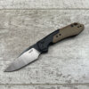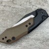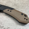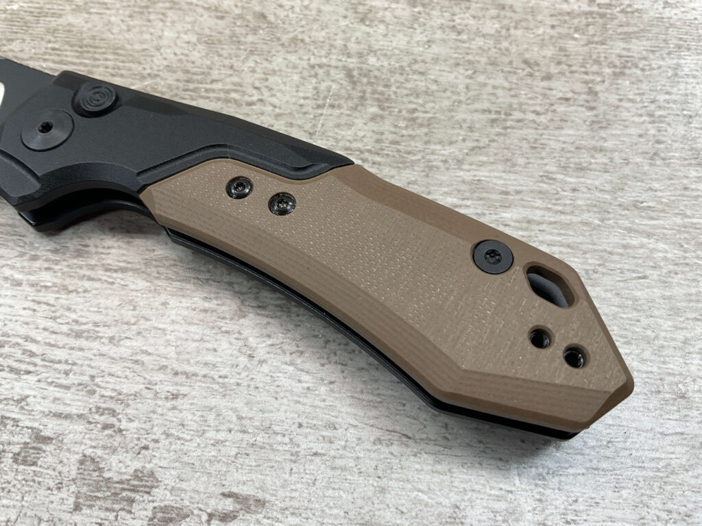 - Black-anodized aluminum and earth brown G10 combo handle; includes finger choil for extra grip and bronze-anodized titanium tube spacer
