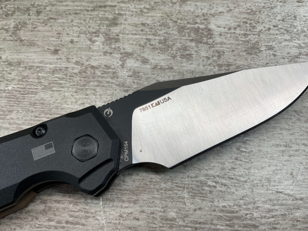 - The CPM 154 powdered metallurgy blade steel takes and holds an excellent edge, provides corrosion resistance, wear resistance, toughness; high contrast blade finish with black Cerakote flats and satin grinds