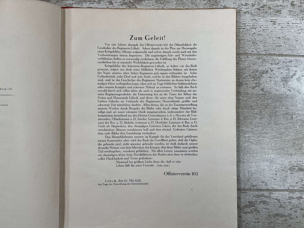 KRIEGSBILDER DES INFANTERIE-REGIMENTS LÜBECK. 3. HANSEATISCHES NR. 162, HARDCOVER BOOK 1925, AMAZING CONDITION FOR THE AGE, GREAT PIECE OF HISTORY